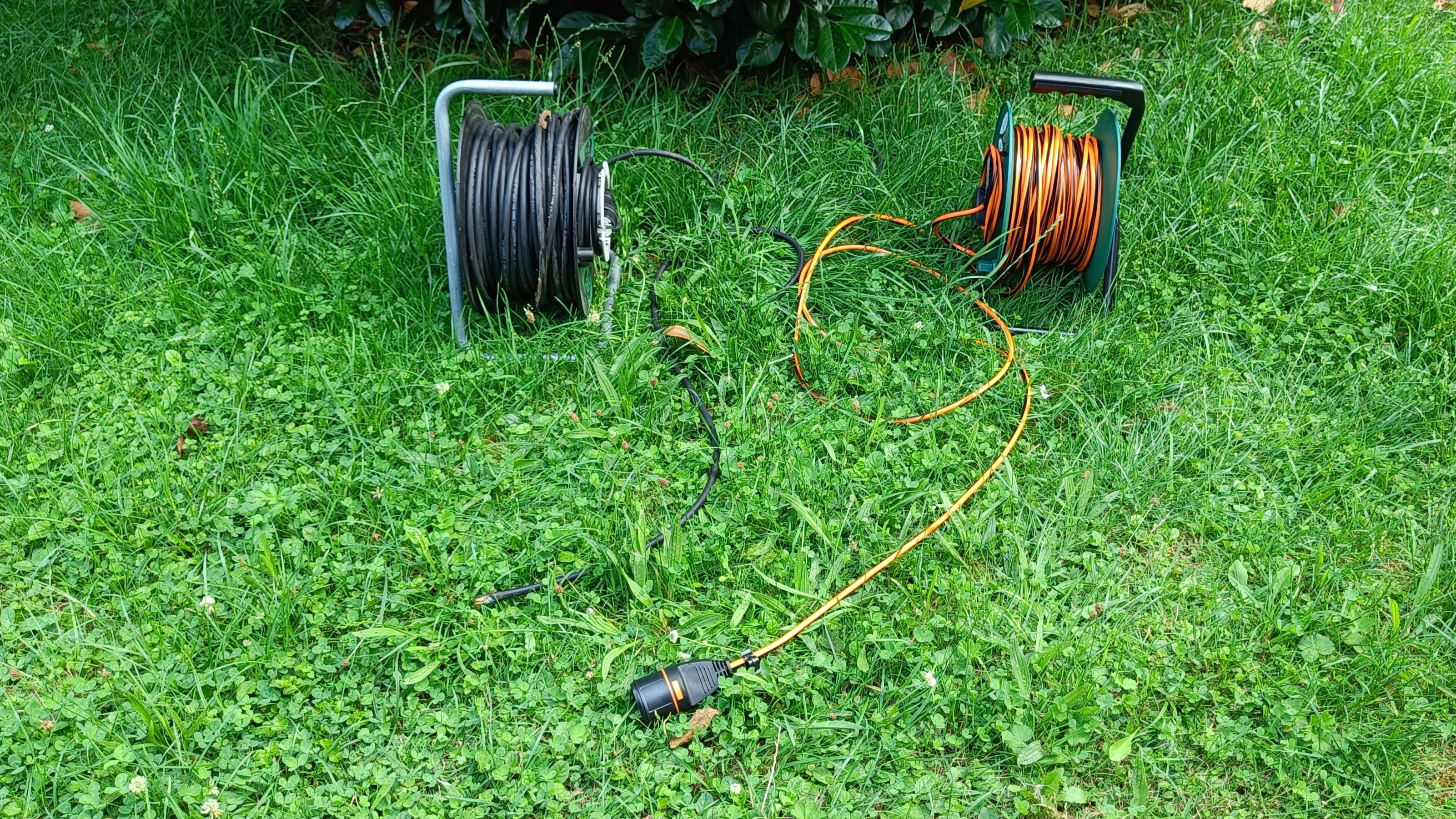 Aus leidvoller Erfahrung empfehlen wir für den Außenbereich Kabel in möglichst auffälliger Farbe. Ein schwarzes Kabel, welches am Boden liegt, wird deutlich schneller übersehen als eines in weiß, rot oder orange. Im Eifer des Gefechtes stellt es nicht nur eine Stolpergefahr dar, es ist auch schnell mit Rasentrimmer oder Mäher durchtrennt.