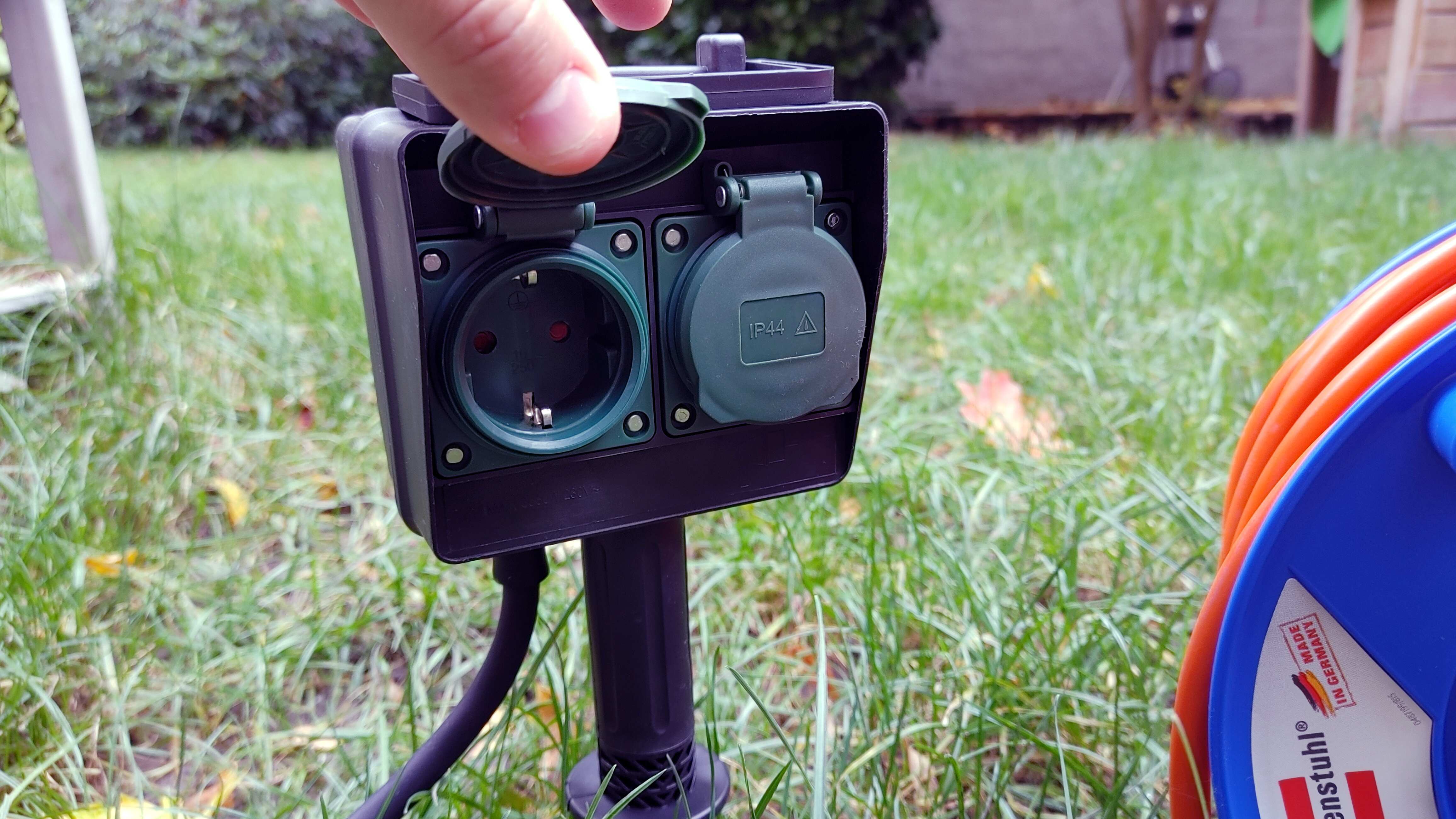 Wer sich so einen Stromverteiler zulegt, der sollte erneut auf die Kabellänge achten. Lieber etwas mehr, damit man das Kabel sauber verlegen kann, damit niemand darüber stolpert. Idealerweise sollte man den Stecker außerdem geschützt aufstellen, selbst wenn eine IP44-Zertifizierung vorhanden ist. Je weniger die Elemente direkt auf das Gerät einstürmen können, desto besser ist es.