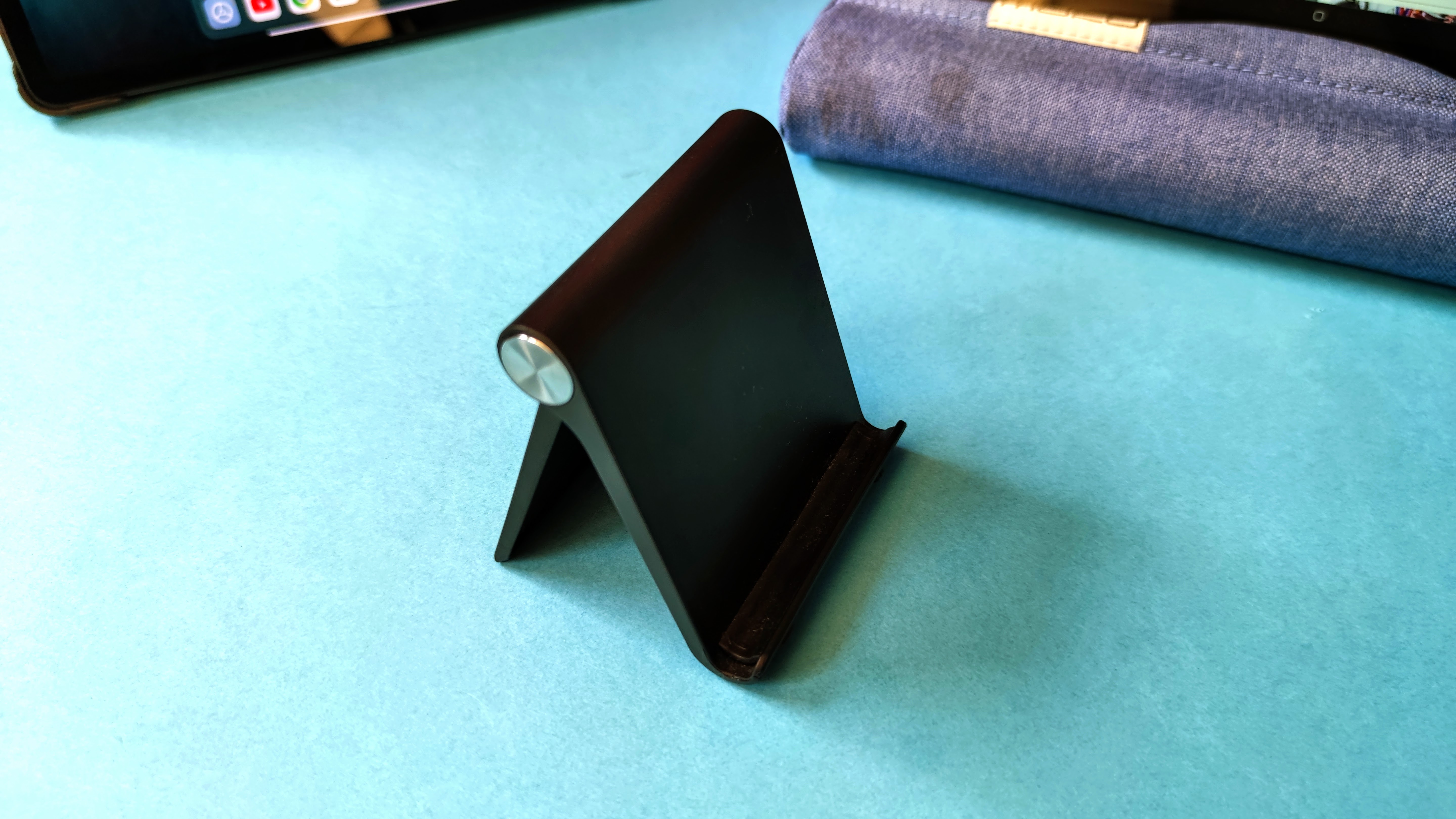 Ebenfalls sehr mobil sind die ringförmigen Ständer von Halopad für 20 Euro, die zu jedem Tablet mit einer maximalen Dicke von 11,5 Millimeter passen. Die Kerben in dem Ring erlauben einen Betrachtungswinkel von 18 oder 45 Grad. Mit einem Durchmesser von 17 Zentimetern passt der Ständer in nahezu jede Tasche. Die Unterseite verfügt über einen Antirutsch-Belag. Das Material aus Hartgummi ist robust – wodurch es sich gut für eine feuchte Umgebung wie Badezimmer oder Küche eignet. Es gibt das Halopad dabei in vielen bunten Farben.