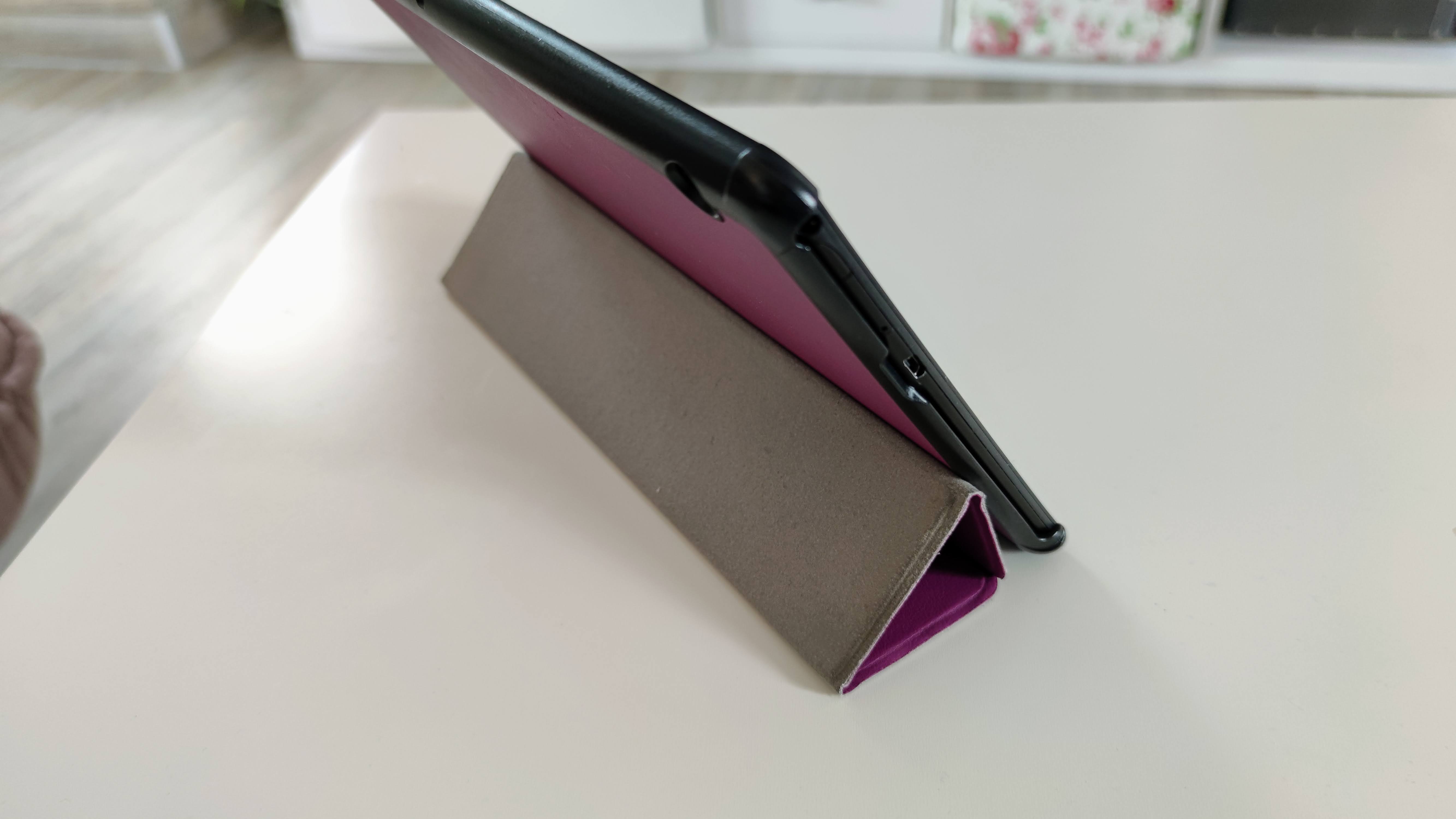 Der Vorteil beim Standfuß: Er passt zu fast jedem Tablet, etwa auf dem Couchtisch, um damit Videos anzusehen. Ferner eignet sich diese Form als Buchstütze in der Küche, wenn man beim Kochen ein Rezept liest und freie Hände braucht.