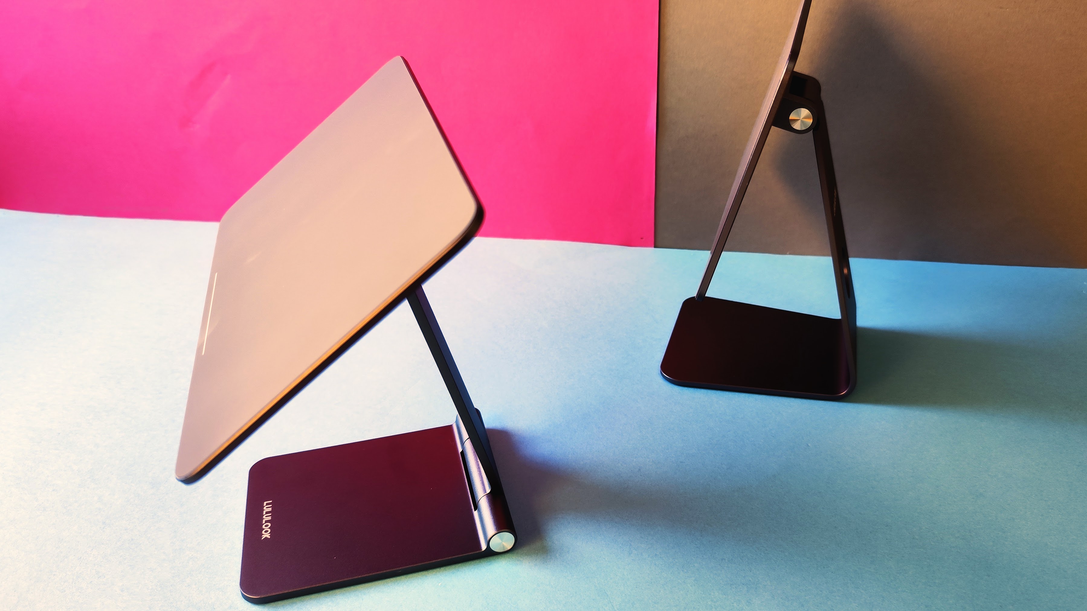 Es gibt zudem Varianten, die ein Apple iPad magnetisch halten. Angesehen haben wir uns die Halterung von Lululook ab 75 Euro. Diese gibt es in einer Ausführung für das iPad Pro 11 sowie iPad Pro 12.9 (Testbericht). Die Aufliegefläche ist zudem drehbar. Man hält das Tablet einfach gegen die Halterung, es haftet dann magnetisch daran. Damit kann man das iPad Pro mit einer Tastatur als Mini-PC nutzen. Die faltbare Variante von Lululook kostet 85 Euro, sie erleichtert den Transport des Ständers.