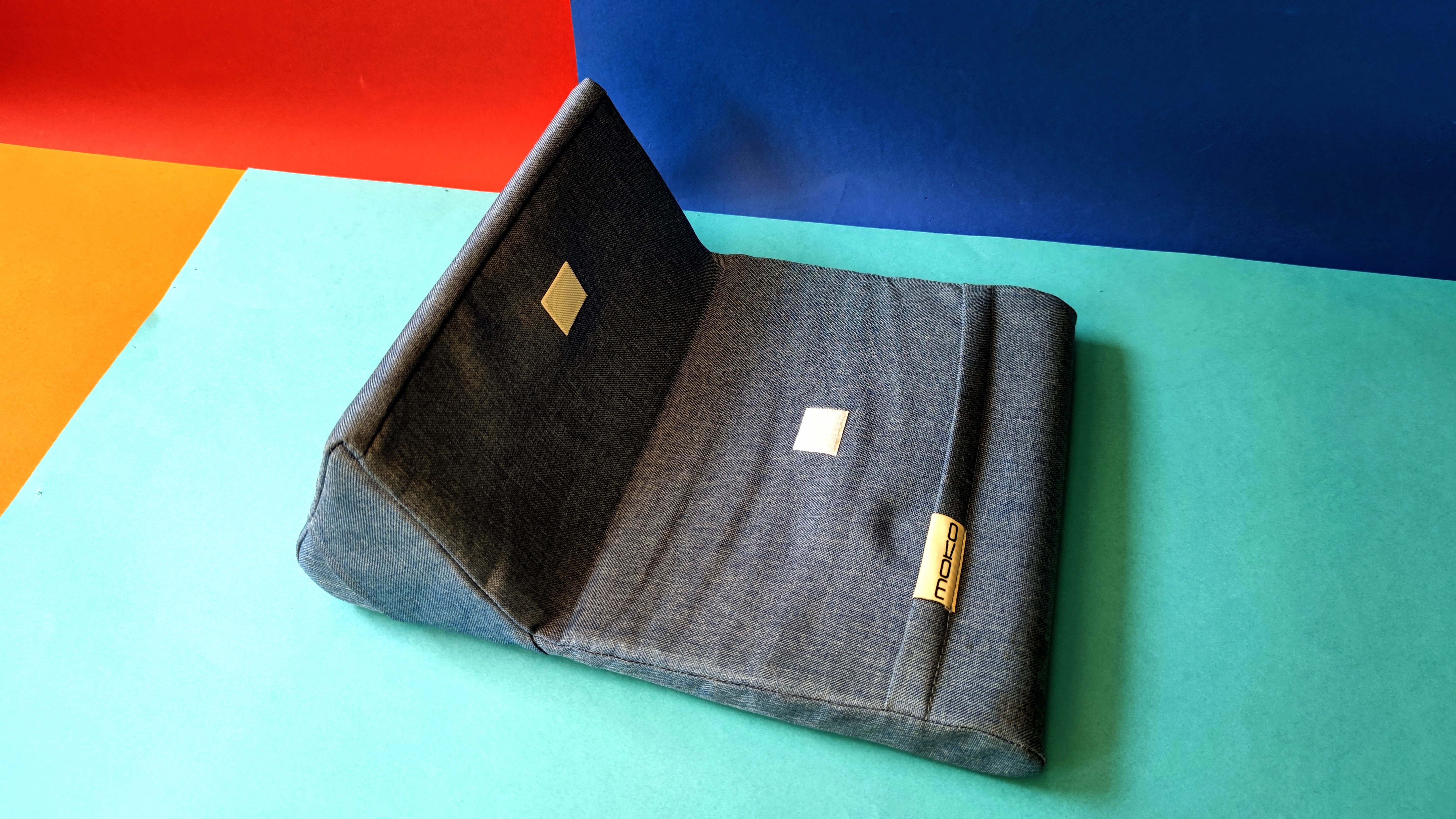 Wer es lieber kuschelig mag, greift zum Tablet-Kissen. Dabei handelt es sich um eine gepolsterte Unterlage mit Auflage, die man im Bett oder auf der Couch auf den Schoß nimmt. Ausprobiert haben wir das Tablet-Kissen von Moko für 16 Euro. Es eignet sich laut Hersteller für Tablets bis 11 Zoll, wir haben es auch bei einem Gerät mit 12,4 Zoll erfolgreich ausprobiert.