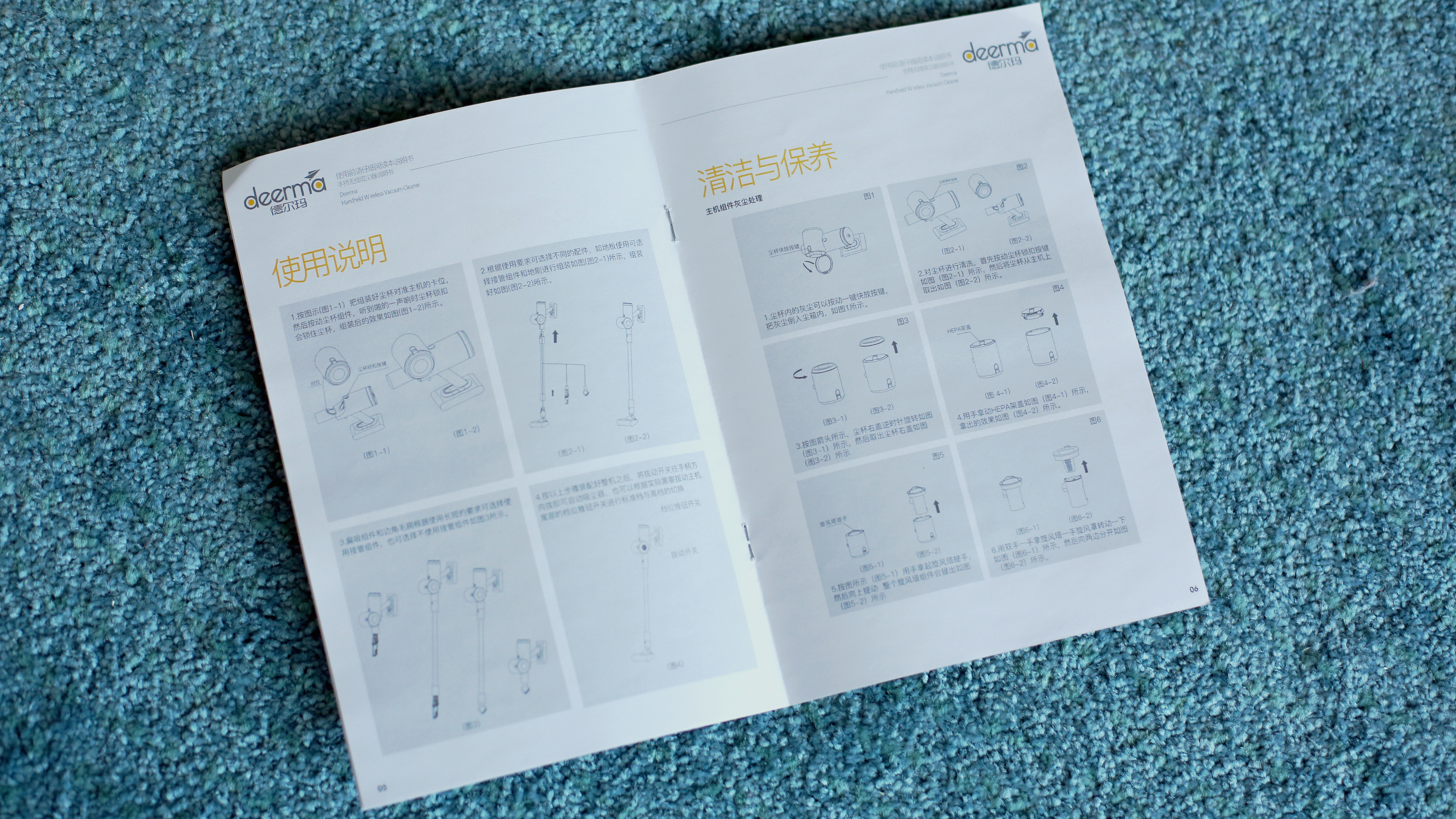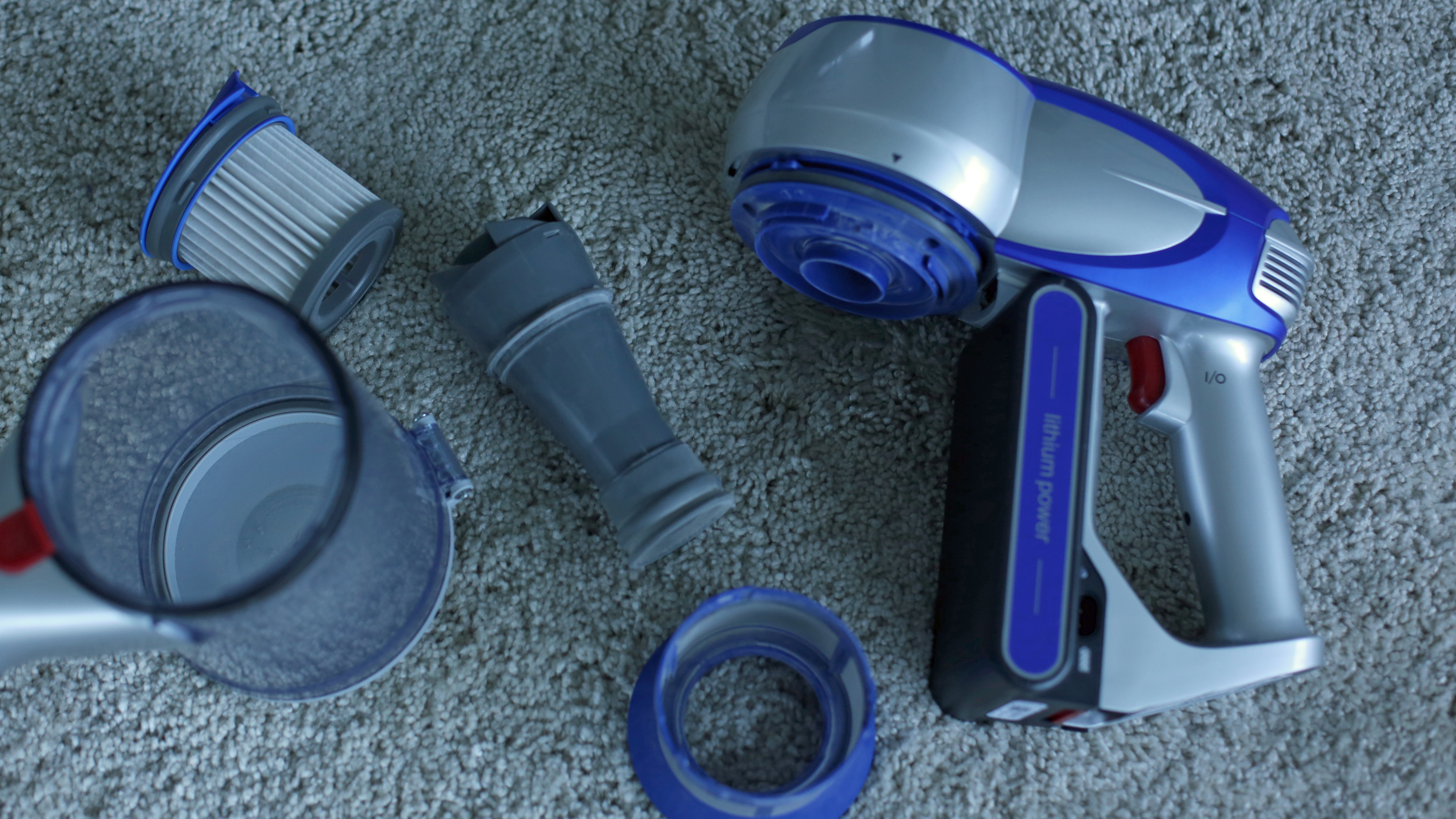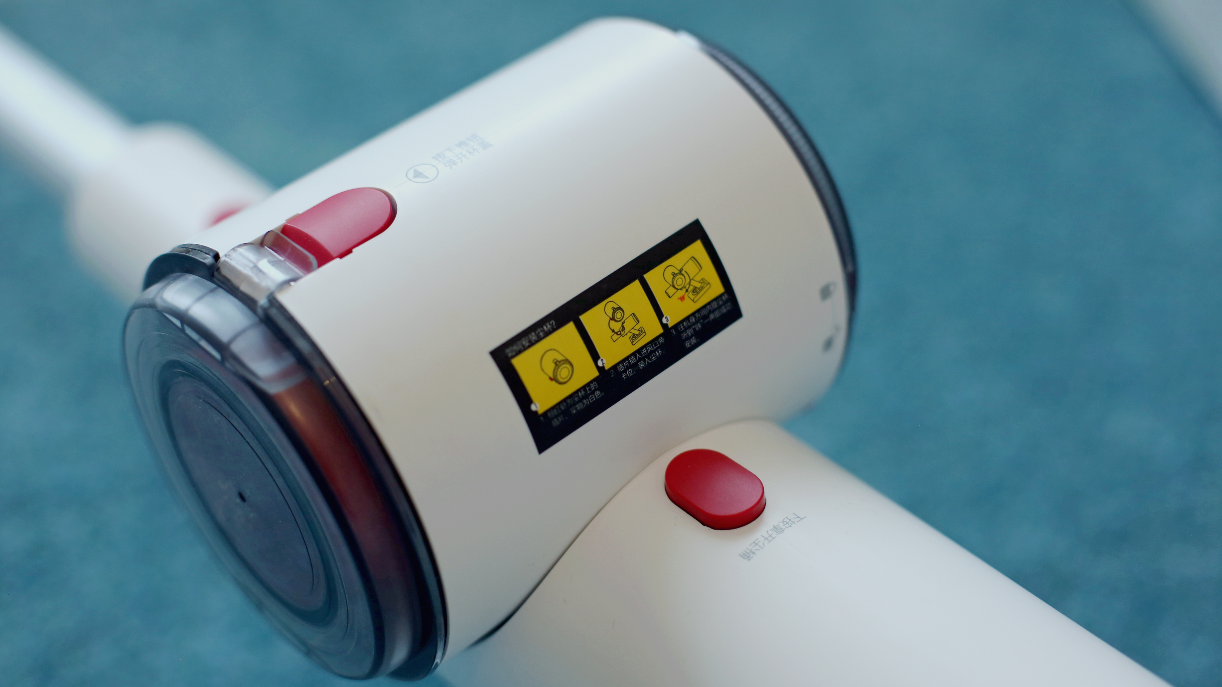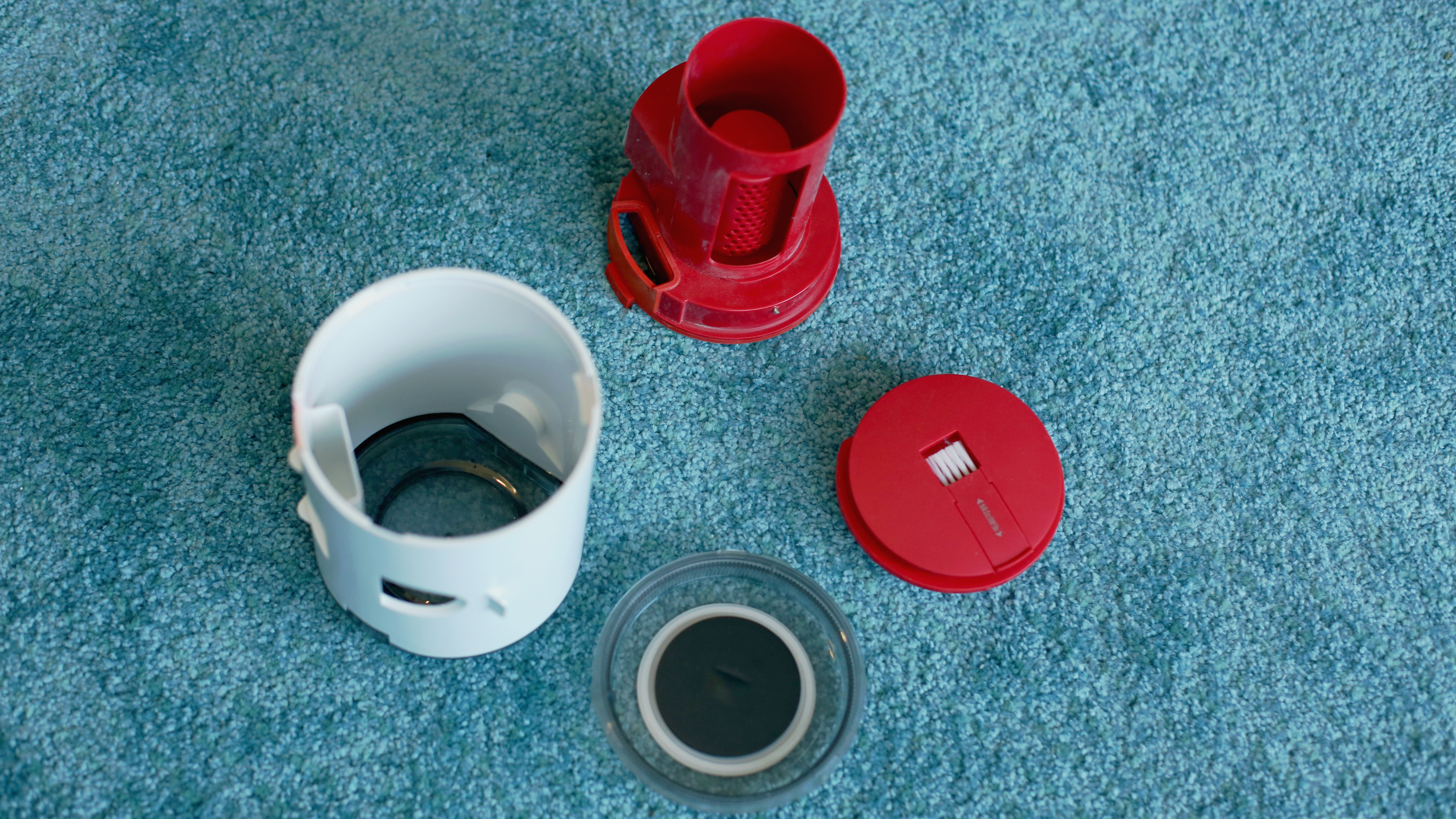 Nicht so gut gefallen hat uns der hohe Kraftaufwand, der zum Zerlegen nötig ist. Dann lässt sich der überraschend einfach aufgebaute HEPA-Staubfilter aus Papier und der mechanische Schmutzfilter aus Kunststoff herausnehmen. Außerdem wirkt der Befestigungsmechanismus des günstigen Deerna VC25 mit seiner Kunststoffnase und dem recht starken Druck, bis er mit lautem Klick wieder einrastet, nicht so, als ob er lange halten würde – das ist aber nur ein subjektiver Eindruck, der sich während des Tests nicht bestätigte. Filter und Schmutzbehälter dürfen laut der bebilderten Anleitung ausgewaschen werden, die Erklärungen dazu konnten wir leider nicht lesen.