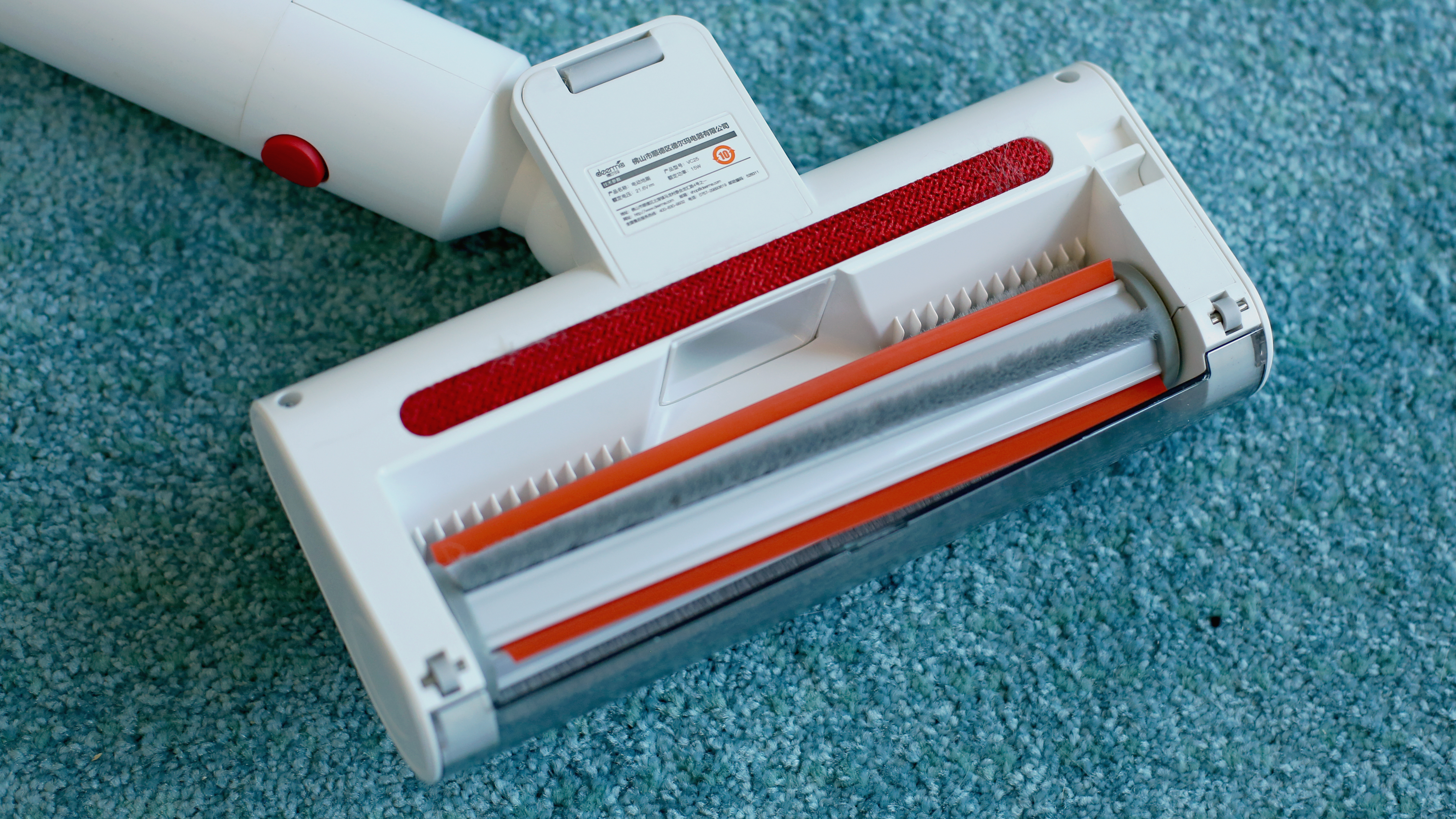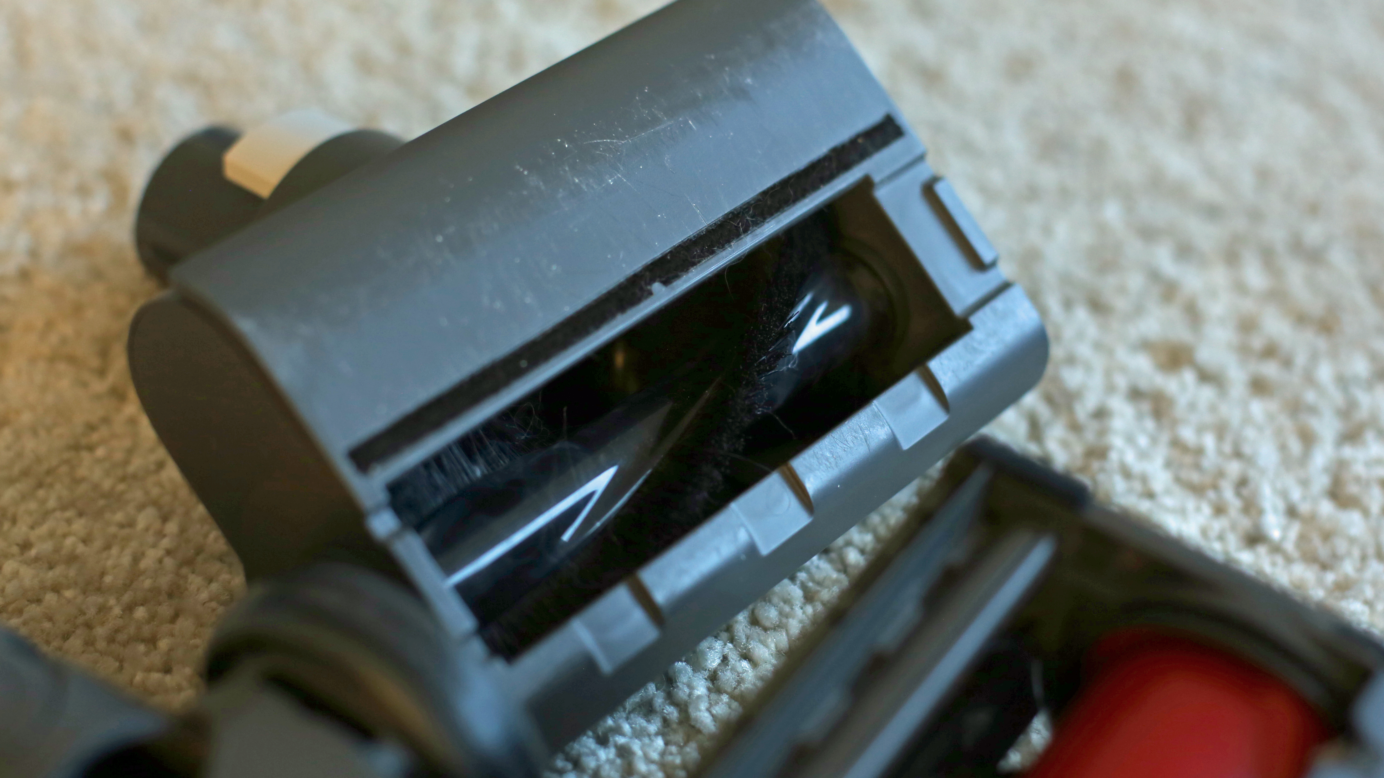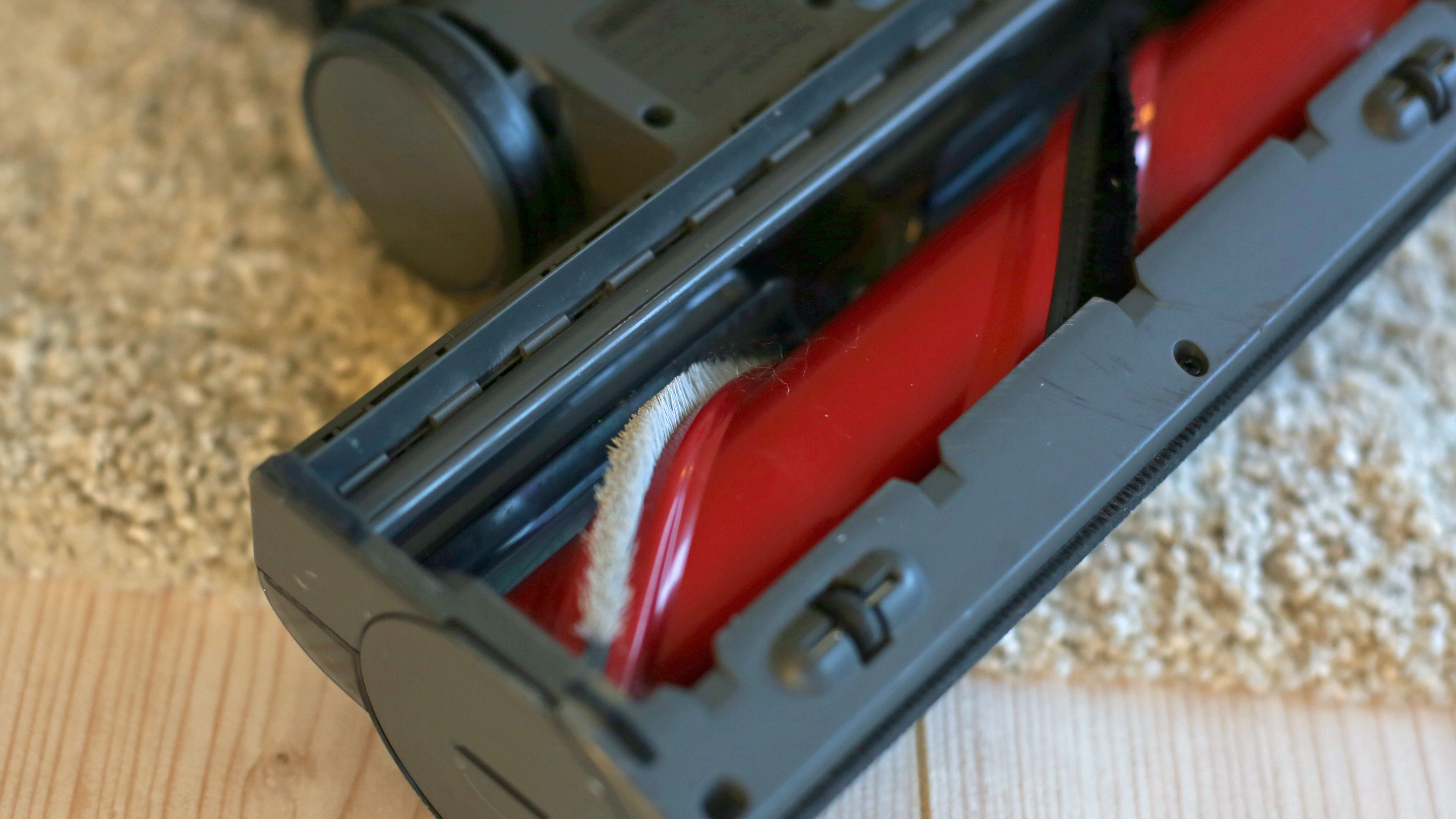 Dafür hoppelte die Bürste des Deerma VC25 beim Zurückziehen auf kurzem Teppich gern, statt zu gleiten. Denn statt großer Rollen wie beim H6 soll genau das hier nur eine offenbar nicht stark genug gekrümmte Kunststoffnase verhindern – mit mäßigem Erfolg.