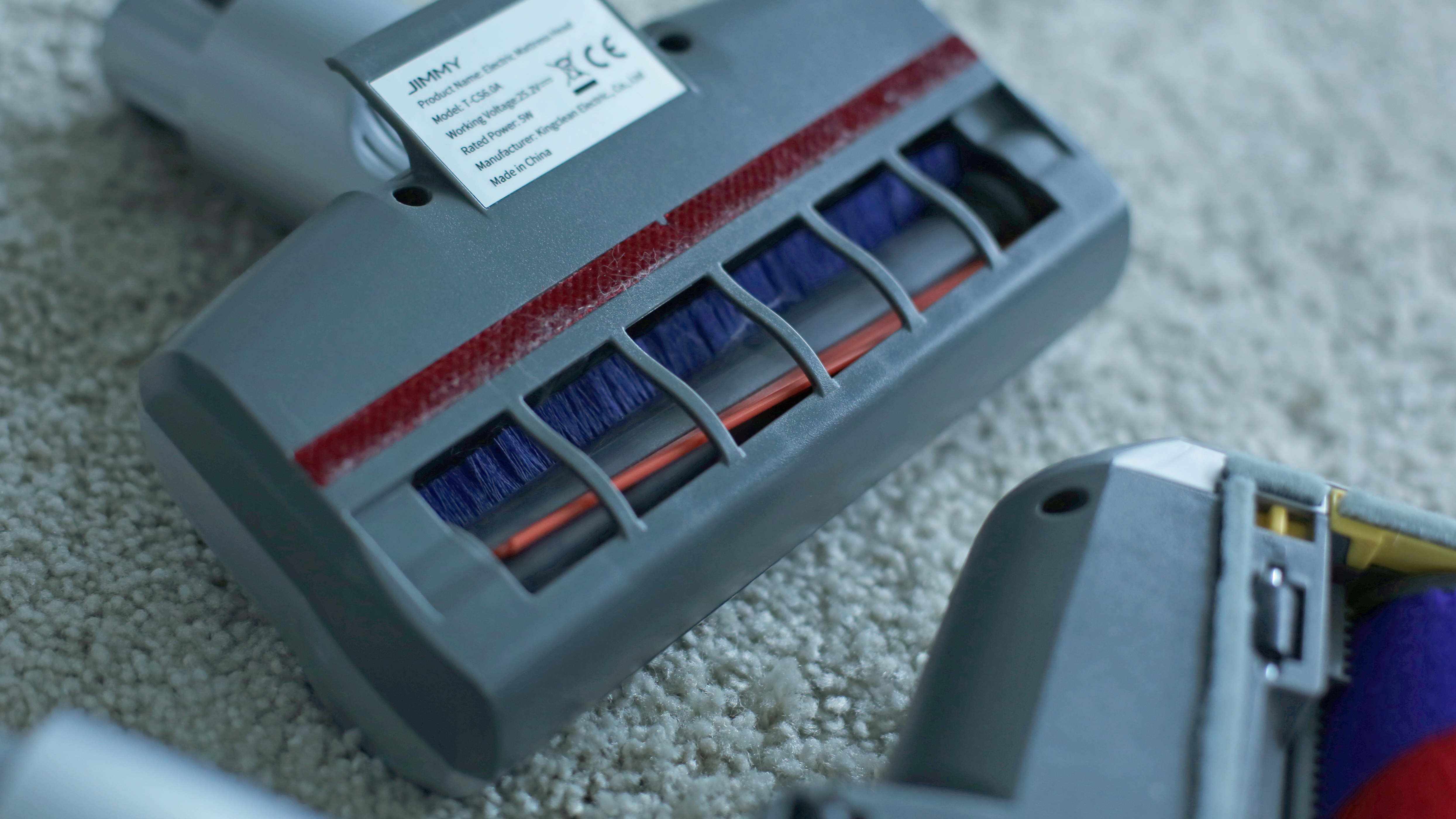 Die reine Saugleistung von Akkusaugern ist nach wie vor deutlich niedriger als bei kabelgebundenen Modellen, daher ist hier der Aufbau der Bürste besonders entscheidend. Deerma und Roborock setzen bei ihrer Hauptbürste auf eine Kunststoffrolle mit Borstenreihen. Beim günstigen VC25 sind die Borstenreihen geradlinig angeordnet und wechseln sich mit Gummilamellen ab. Beim H6 wechseln sich spiralförmig angebrachte weiche und harte Borstenreihen ab. Der Jimmy VC83 kommt hingegen mit einer reinen Filzrolle ohne Borsten zum Kunden. Letztere finden sich in schwach ausgeprägter Form am deutlich kleineren zweiten Motorbürstenkopf.