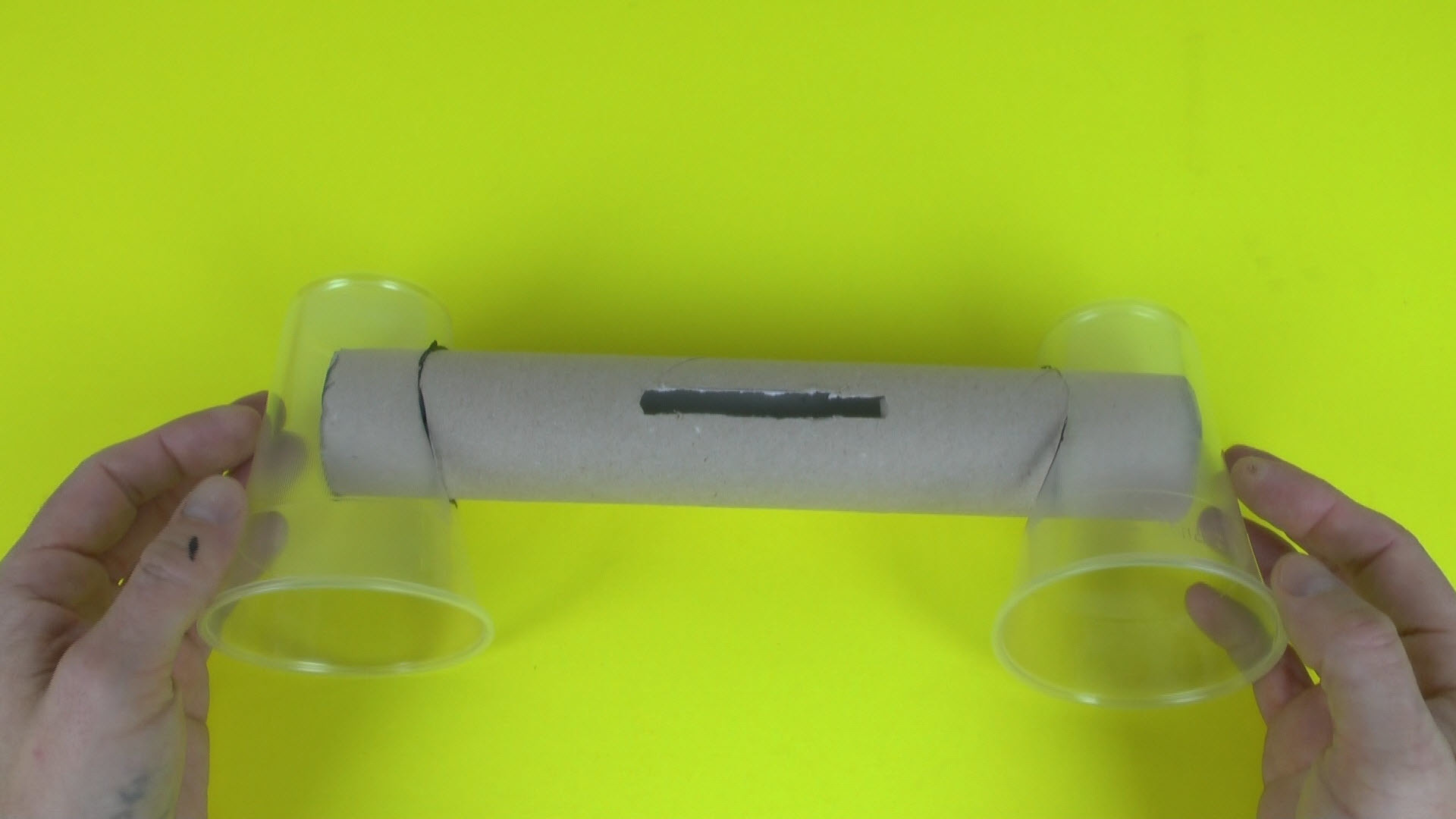 Jetzt steckt Ihr die beiden Becher auf die Pappröhre, lasst etwas Platz zwischen den Enden der Rolle und den Plastik-Becher-Wänden und fertig ist der Lautsprecher für Euer Smartphone. Rein optisch mag er kein großer Hingucker sein, aber er kann sich wirklich hören lassen.