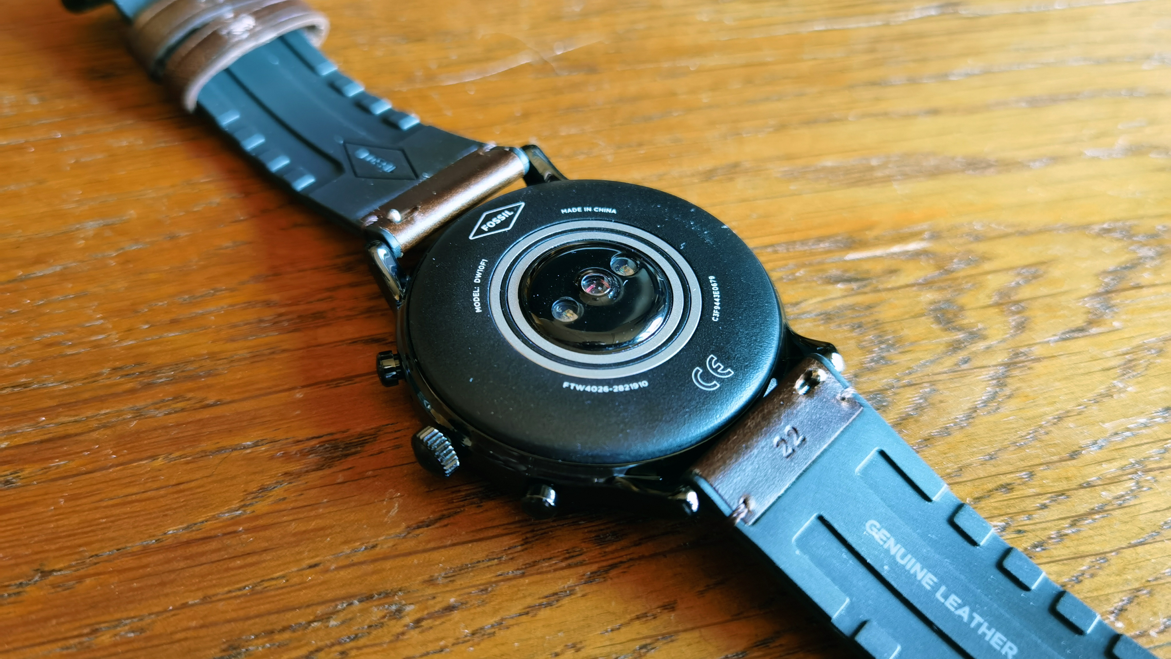Zur Steuerung gibt es neben den erwähnten Druckknöpfen und der Krone mit Scroll-Funktion ein eingebautes Mikrofon für Sprachbefehle an den Google Assistant und ein Lautsprecher, über den Telefonate Hands-free getätigt werden können. Das funktioniert zumindest in ruhiger Umgebung ganz ordentlich. Die Belegung der beiden zusätzlichen Tasten lässt sich über die Fossil-App ändern, zudem kann man darüber neue Ziffernblätter einspielen. Weitere Ausstattungsmerkmale sind GPS, NFC, Pulssensor, Beschleunigungs-, Höhen- und Umgebungslichtsensor. Die Uhr ist bis 3 ATM wasserdicht und somit laut Hersteller zum Schwimmen, aber nicht zum Tauchen geeignet. Eine Akkuladung sollte je nach Nutzung für ein bis sieben Tage reichen – letzteres gilt aber nur im reinen Uhrenmodus ohne zusätzliche Konnektivität. Ist alles aktiviert, ist allabendliches Laden notwendig. Das geschieht dann über ein magnetisch angedocktes Ladepad, das bei allen vier Uhren gleich aussieht und in Weiß – bei der schwarzen Carlyle etwas unpassend – geliefert wird. Positiv: Vier Leistungsmodi lassen sich über das Akkusymbol einstellen, um gegebenenfalls die Laufzeit zu verlängern.