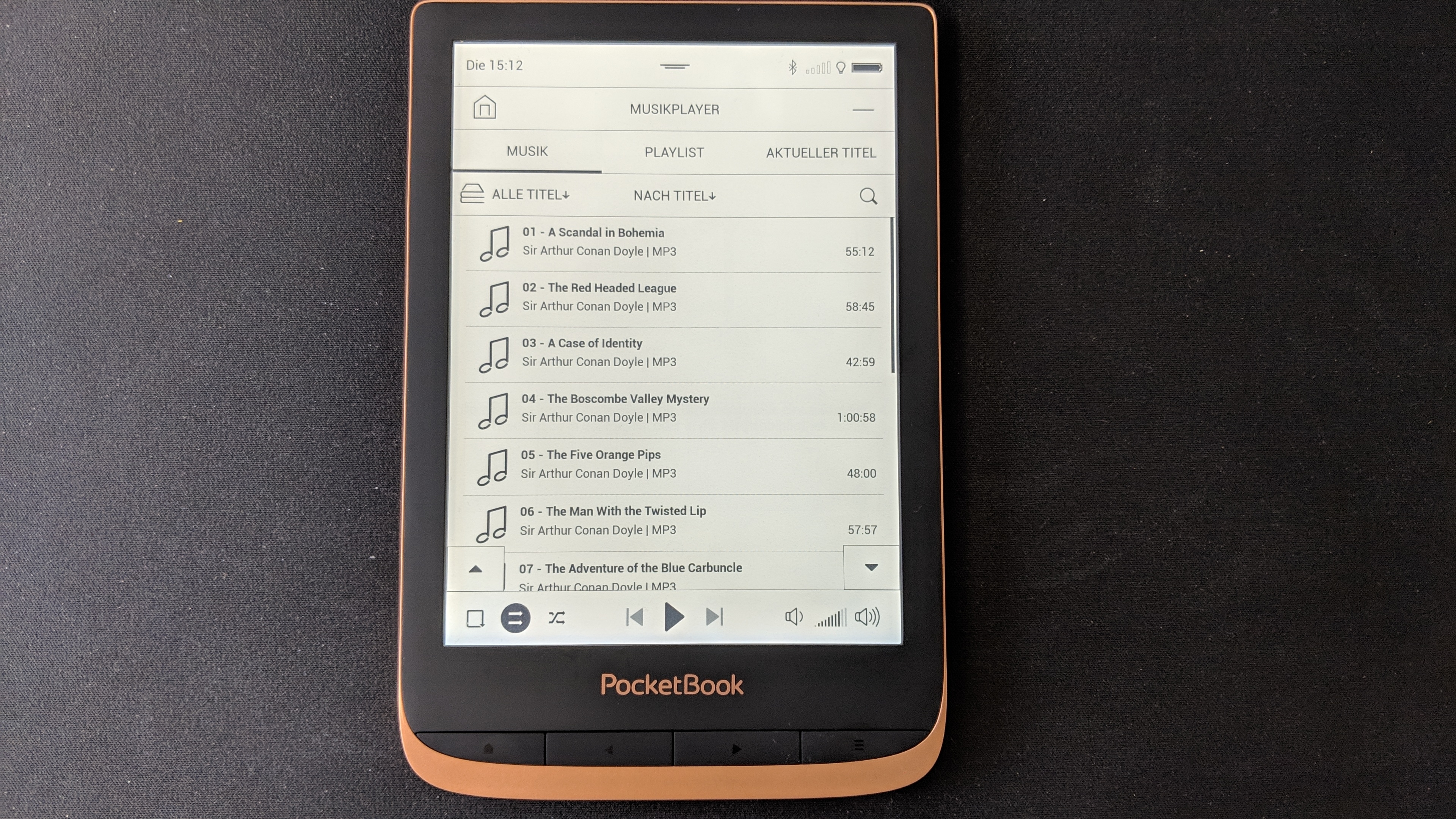 Was der Pocketbook den anderen voraus hat, sind seine vier frei programmierbaren Knöpfe unterhalb des Displays. Damit ist er im Vergleichstest der Einzige, der alternativ zum Touchscreen auch mittels Tastendruck blättert. Außerdem ist er der Einzige, der in der Version Spicy Copper Mut zu Farbe beweist und aus dem grauen E-Book-Reader-Einheitsbrei ausbricht.