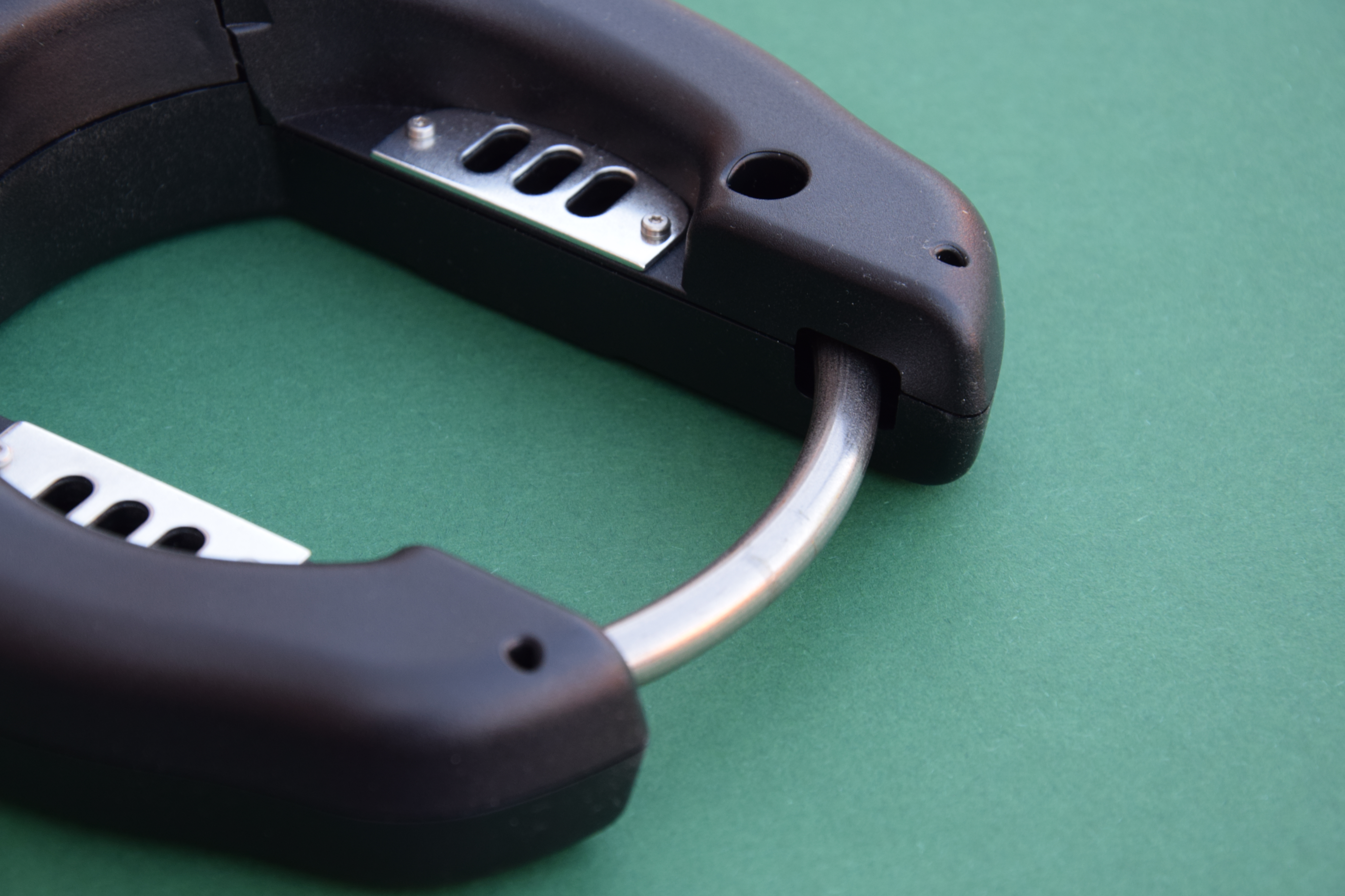 Das Vgeby-Bluetooth-Schloss besteht aus einem verzwirbelten Metalldraht in einer Kunststoffhülle. Verschlossen wird dieser in einer Kunststoffbox. Durch dieses Design ist das Schloss zwar flexibel, aber es ist nicht besonders robust. Die Ummantelung bekommt schon tiefe Kerben, wenn man versucht, das Schloss um sein Fahrrad zu wickeln. Und mit nur einem Zentimeter Dicke ist der Draht auch schnell durchtrennt. Damit taugt das Vgeby eigentlich nur für den kurzen Zwischenstopp am Bäcker – wer ein hochwertiges Rad über Nacht draußen stehen lassen muss, braucht definitiv etwas solideres.