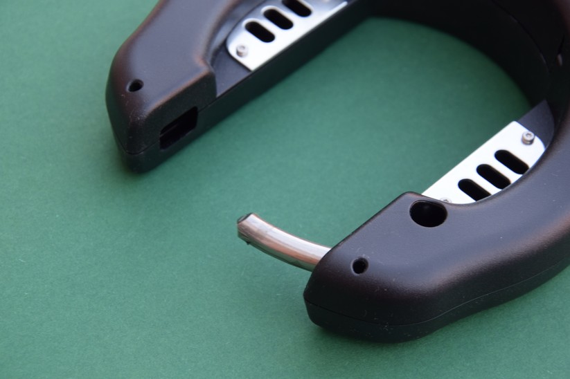Vielleicht das aus Metall gefertigte Bügelschloss von Miikey? Es wird nach Belieben zwischen Mittelstange und Hinterrad oder zwischen Rahmen und Fahrradständer angebracht und zum Fixieren der Verschluss auf die Enden gesteckt. Am Bügel befinden sich acht Rasterpunkte, sodass das Schloss in seiner Verwendung flexibel ist. Insgesamt hinterlässt es einen deutlich solideren Eindruck, kann aber mit einem Bügelschloss von Markenherstellern wie Kryptonite nicht mithalten.