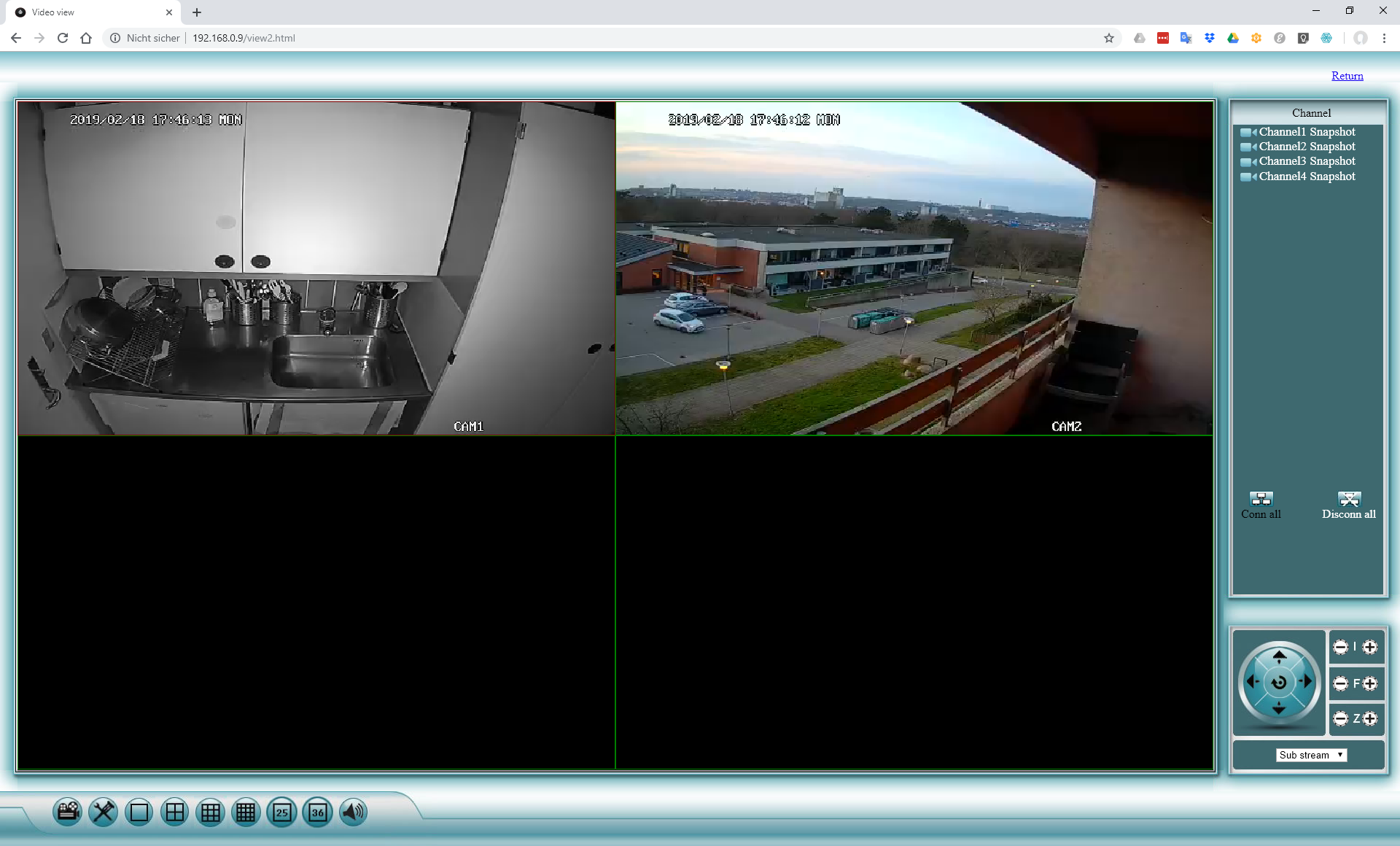 Noch mehr Vielfalt aber eben auch Anwenderverwirrung gibt es bei Inkovideo und Abus. Hier kann sich der Anwender zwischen dem lokalen Zugriff auf den IP-Rekorder, einer Mobil-App oder dem Remotezugriff auf den IP-Rekorder per Browser entscheiden. Der IP-Rekorder stellt hierfür lokal eine Weboberfläche bereit. Der Remotezugriff kann per DynDNS über das Internet erfolgen. Funktional identisch sind die unterschiedlichen Zugriffsmethoden in keinem Fall. Als Anwender muss man sich zudem mit einer jeweils anderen GUI vertraut machen. Hinzu kommt, dass sowohl Inkovideo als auch Abus beim Browserzugriff auf veraltete Techniken wie statische Webseiten, Internet Explorer und ActiveX setzen. Eine vollwertige Clientsoftware gibt es bei keinem Hersteller. Abus liefert als einziger Anbieter überhaupt einen PC Client, der kann aber wenig mehr als die Weboberfläche der Geräte starten.