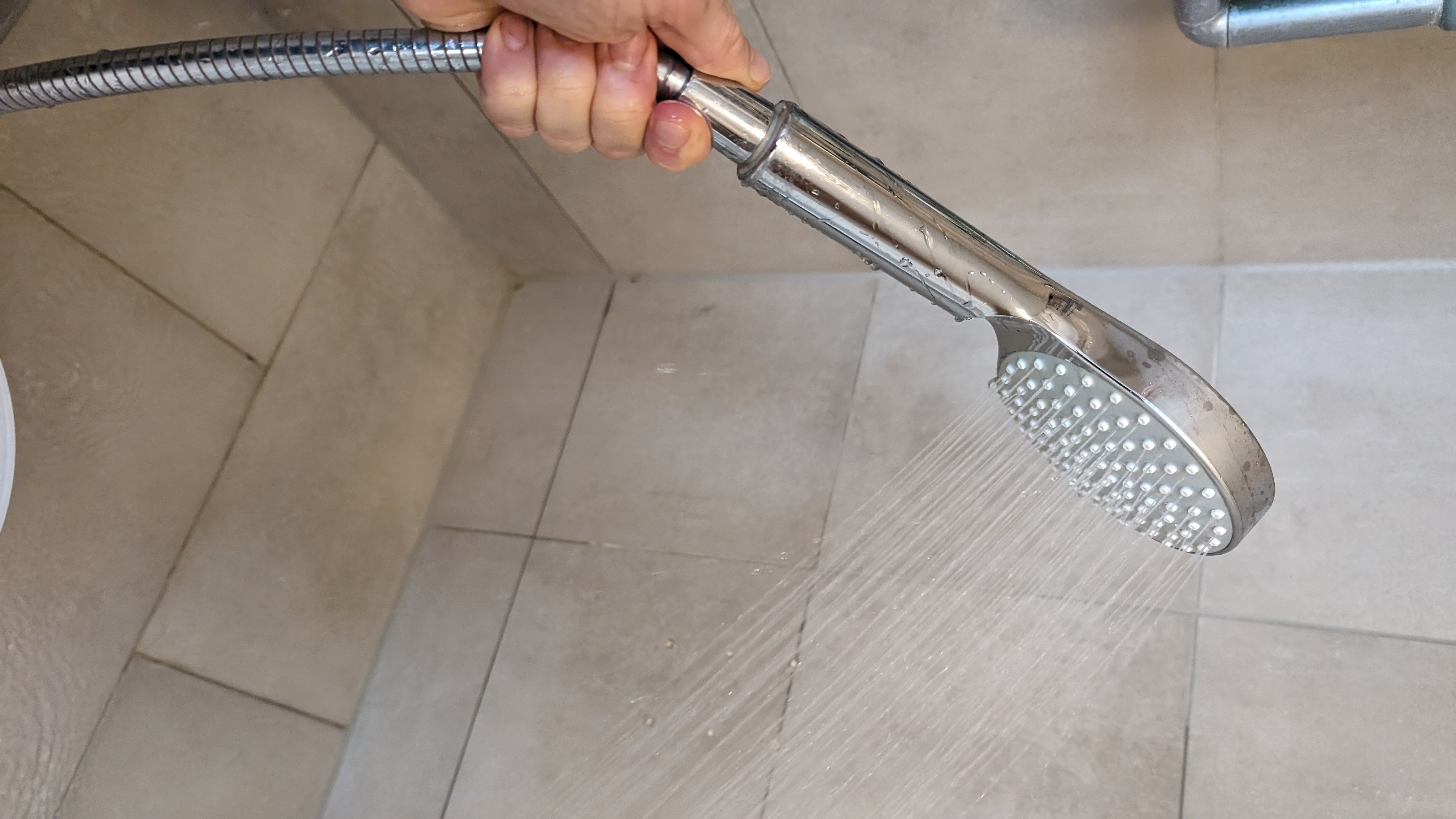 Nachteil: Die Hansa Activejet Digital Handbrause reduziert wohl wegen der energieerzeugenden Mechanik den Wasserdurchfluss. In unserer Dusche messen wir nach. Nach einer Minute kommt 13,2 l Wasser aus dem Duschschlauch. Mit dem Hansa Activejet Digital reduziert sich die Wassermenge auf 9,4 l/min. Nicht optimal, in unseren Augen aber verschmerzbar.