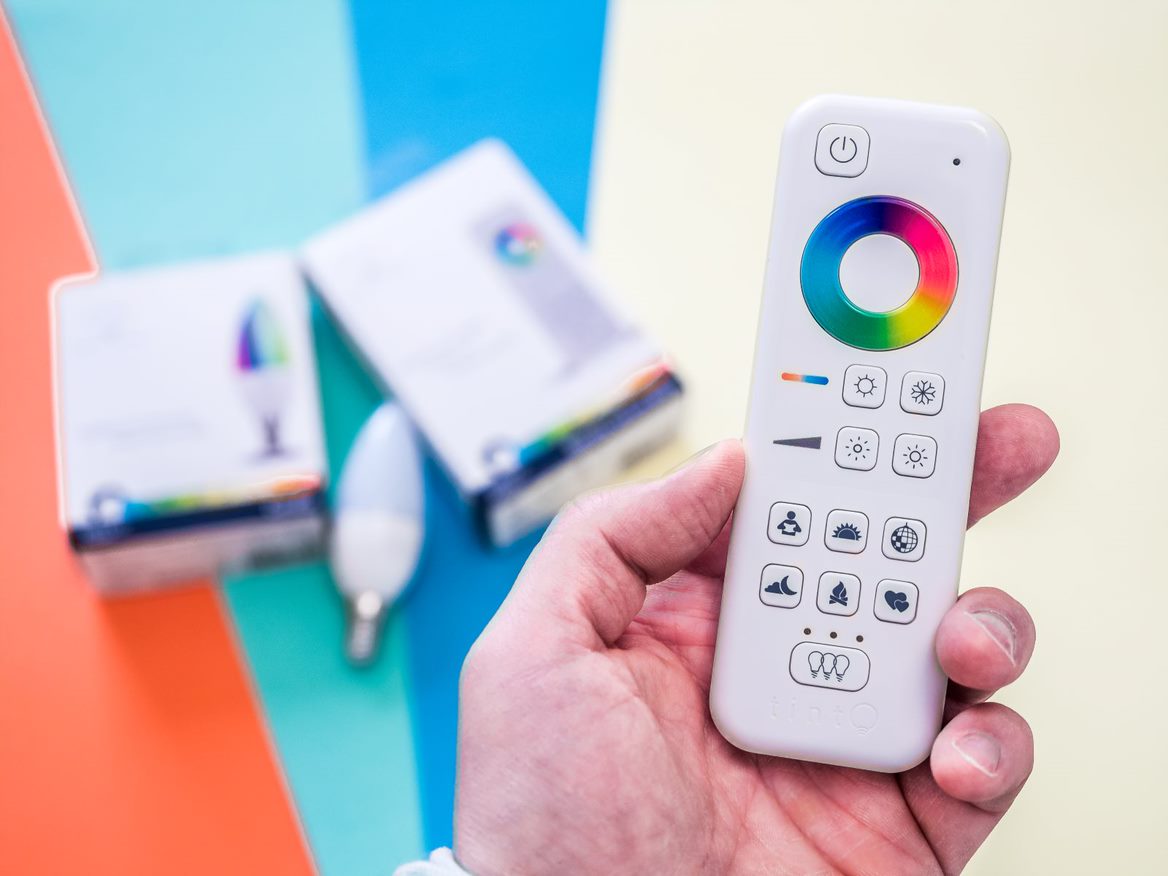 Das Tint-System ist vor allem für den Start in die smarte Beleuchtung interessant. Einsteiger können es nämlich rasch und einfach in Betrieb nehmen, weil sie die Leuchtmittel nicht zwingend per Gateway, App und Cloud-Konto einrichten und bedienen müssen. Stattdessen geht das auch mit per Fernbedienung, also einer Kulturtechnik, die jeder TV-Nutzer beherrscht. Die Bedienhilfe ist allerdings optionales Zubehör und kostet 25 Euro. Mit ihr lassen sich bis zu 50 Leuchtmittel managen.