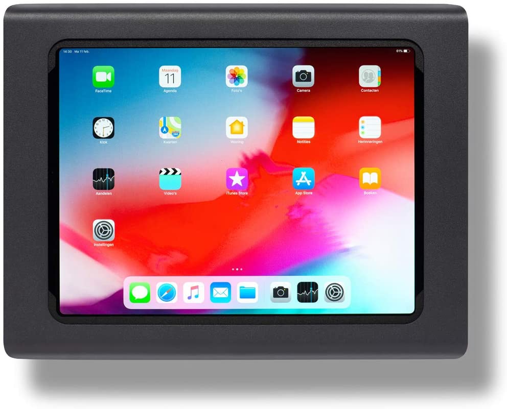 Diese Produkte fassen das iPad fest ein und sind an der Wand verschraubt. Achtung: Da sich die iPads mehrfach verändert haben, muss man darauf achten, die richtige Halterung für das konkrete Modell zu kaufen. Einige Halterungen sind universell verwendbar und liefern passende Adapter in Form von Gummihalterungen mit, um die verschiedenen iPads festzuhalten – das sind vor allem die etwas klobigeren, aber auch günstigeren Halterungen. Wirklich flache Modelle nehmen meist nur ein konkretes Modell auf.