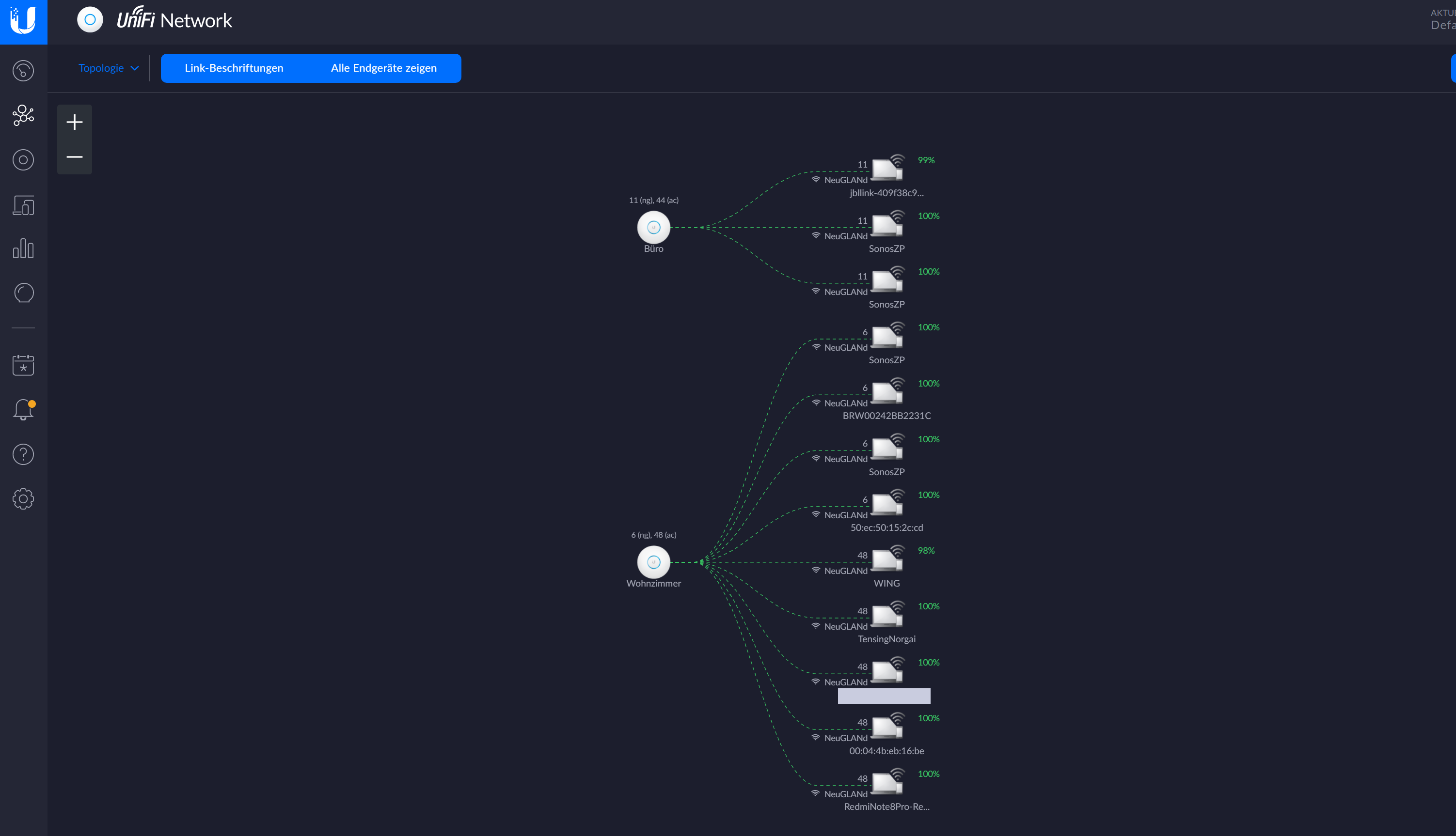 Hier lohnt dann unserer Meinung nach doch der Aufpreis auf ein System, das sich zentral verwalten lässt. Denn dann hat man nicht nur einen richtig guten Überblick übers WLAN, es kommen auch Business-Funktionen wie Roaming und einen nahtlosen Wechsel von einem Access Point zum anderen quasi kostenlos mit dazu. Und wer sein WLAN nicht aus einer Cloud heraus verwalten will, der findet meist ein lokal installierbares Verwaltungssystem. Bei Ubiquiti etwa kann man dieses auf einer starken NAS, einem Raspberry Pi oder einem Mini-PC laufen lassen. Mehr dazu bei heise+ im Artikel Unifi Mesh-WLAN-Controller mit Docker einrichten und verwalten .