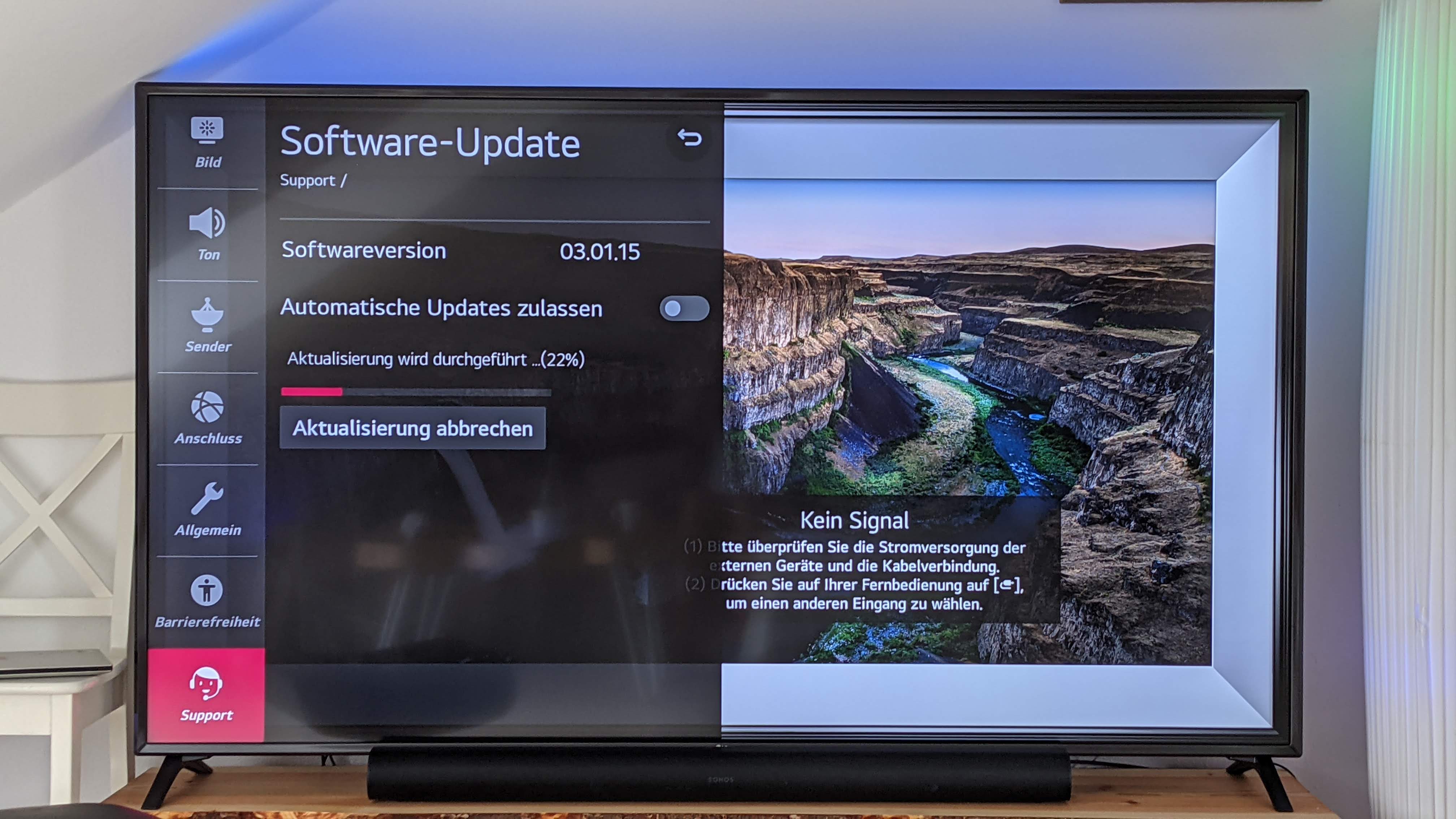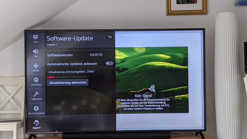 Für die Größe ist ein ordentlicher Bildprozessor wichtig, sonst treten unnötige Artefakte auf. Der von LG genutzte Alpha7 der dritten Generation verrichtet einen ordentlichen Dienst. Er kommt bei LG auch in dessen Premium-OLED-Linie zum Einsatz. Gerade hochauflösendes Quellmaterial mit HDR-Unterstützung wirkt geradezu brillant. Auch Full-HD-Inhalte sehen hervorragend aus. Liegt das Bildmaterial jedoch nur in 720p oder niedriger vor, zeigen sich wegen der Größe des TVs klare Cluster und unschöne Kanten. SD-Fernsehen macht so keinen Spaß.