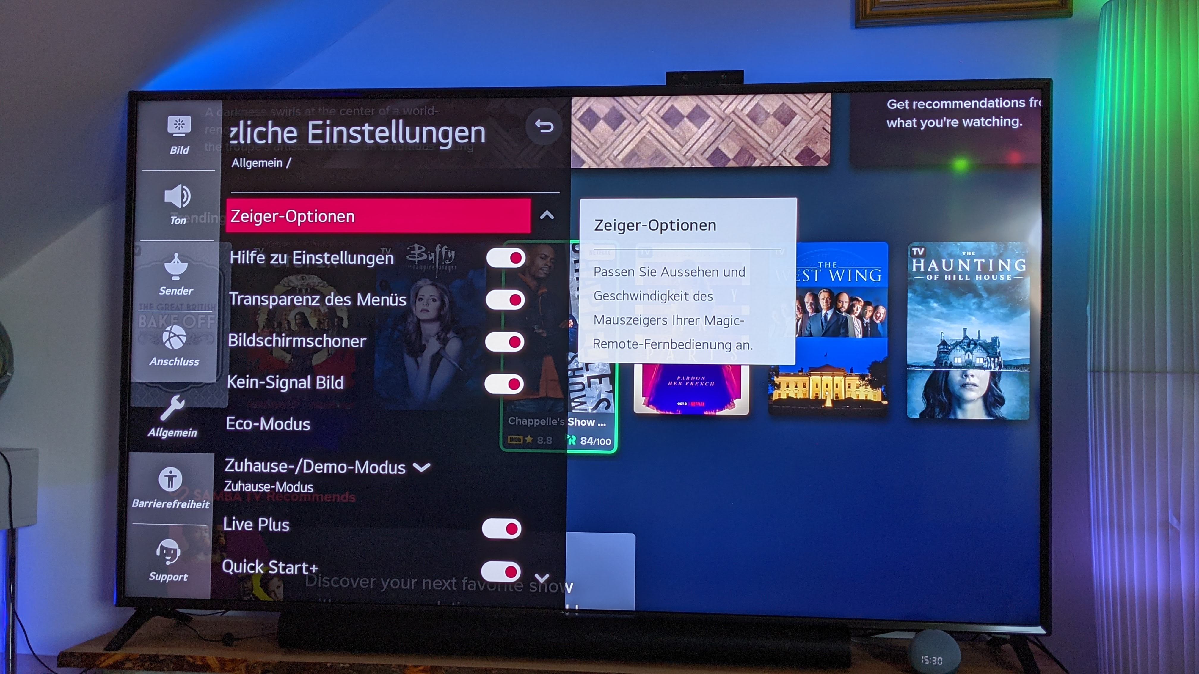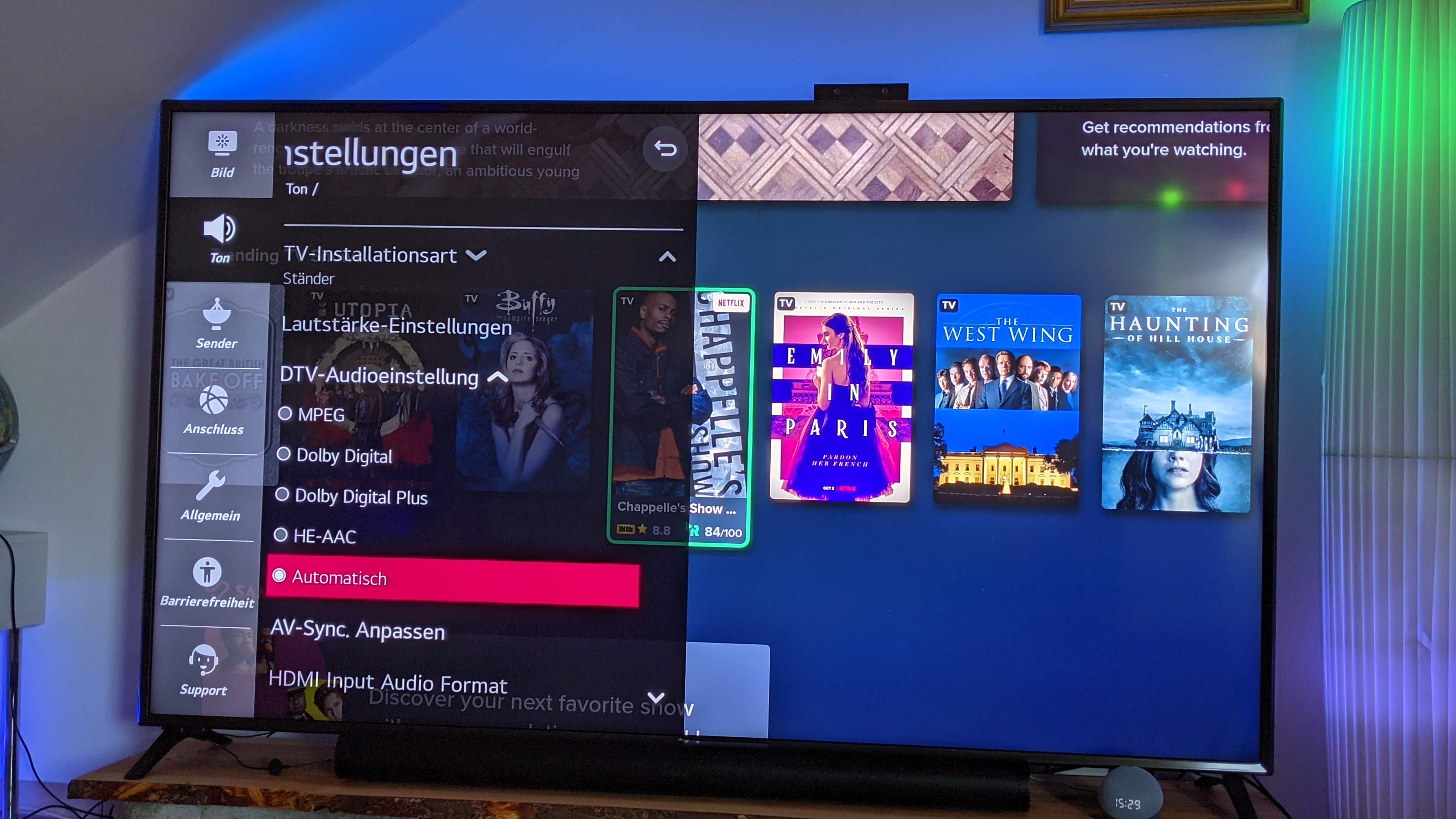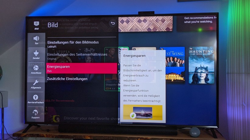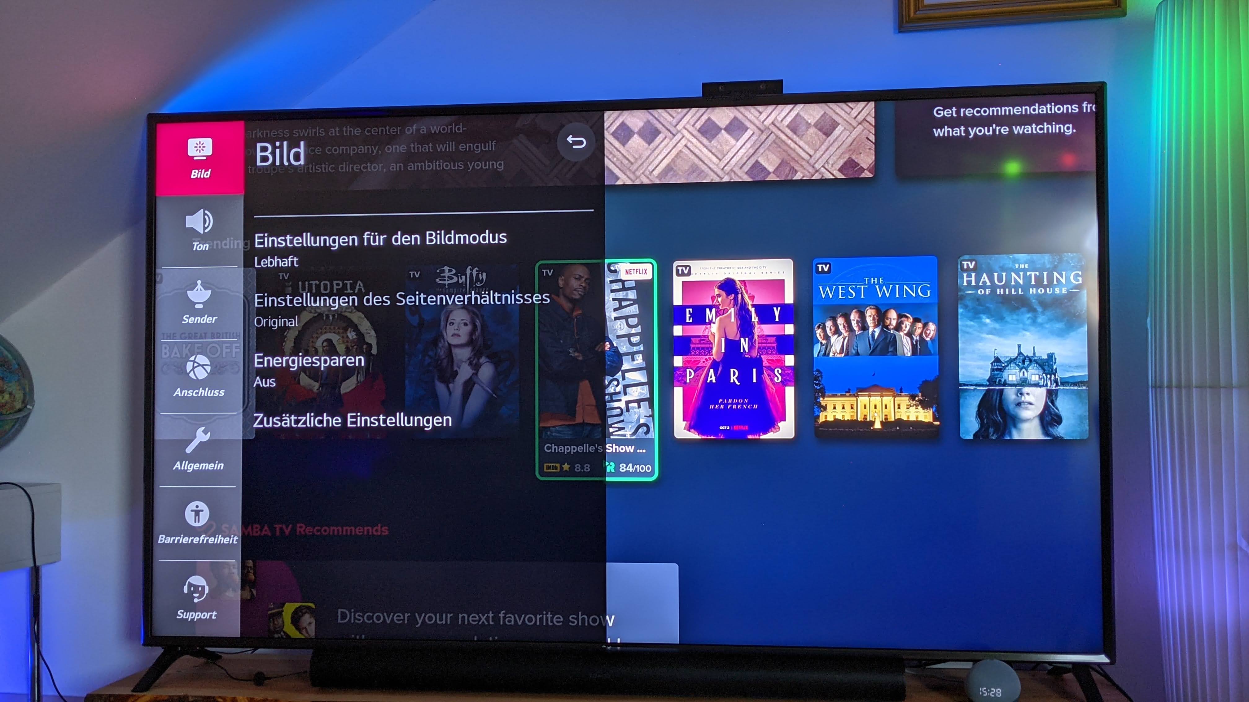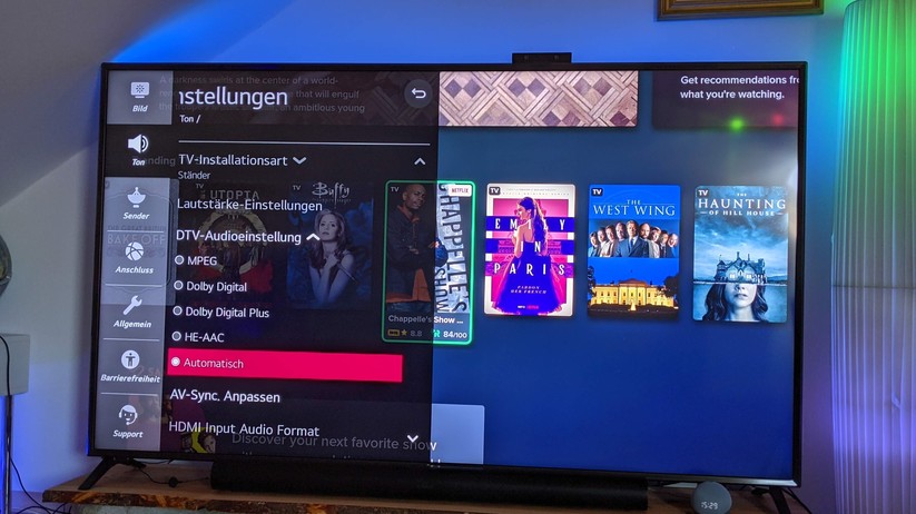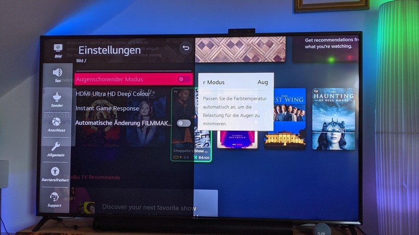 Im Einstellungsschnellmenü gibt es unter anderem direkten Zugriff auf verschiedene Bild-, Klang- und Netzwerkoptionen. Richtig umfangreich wird es in den allgemeinen Einstellungen. Dort geht es tief zum Beispiel in die Bildeinstellung hinein. In den Bildmodi können Kontrast, Helligkeit, Schärfe, Farbton, Farbtiefe, Farbtemperatur und einiges mehr angepasst werden. Im Audiomenü unter anderem die DTV-Einstellungen und die digitale Audioausgabe. Eine Auswahl der Menüs zeigen wir in der Bildergalerie.