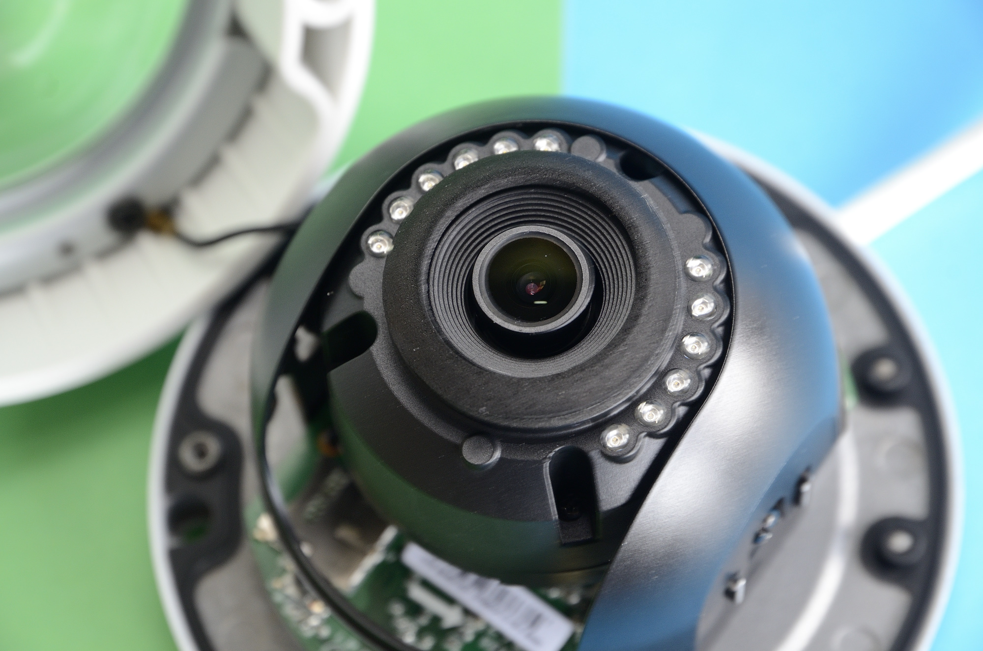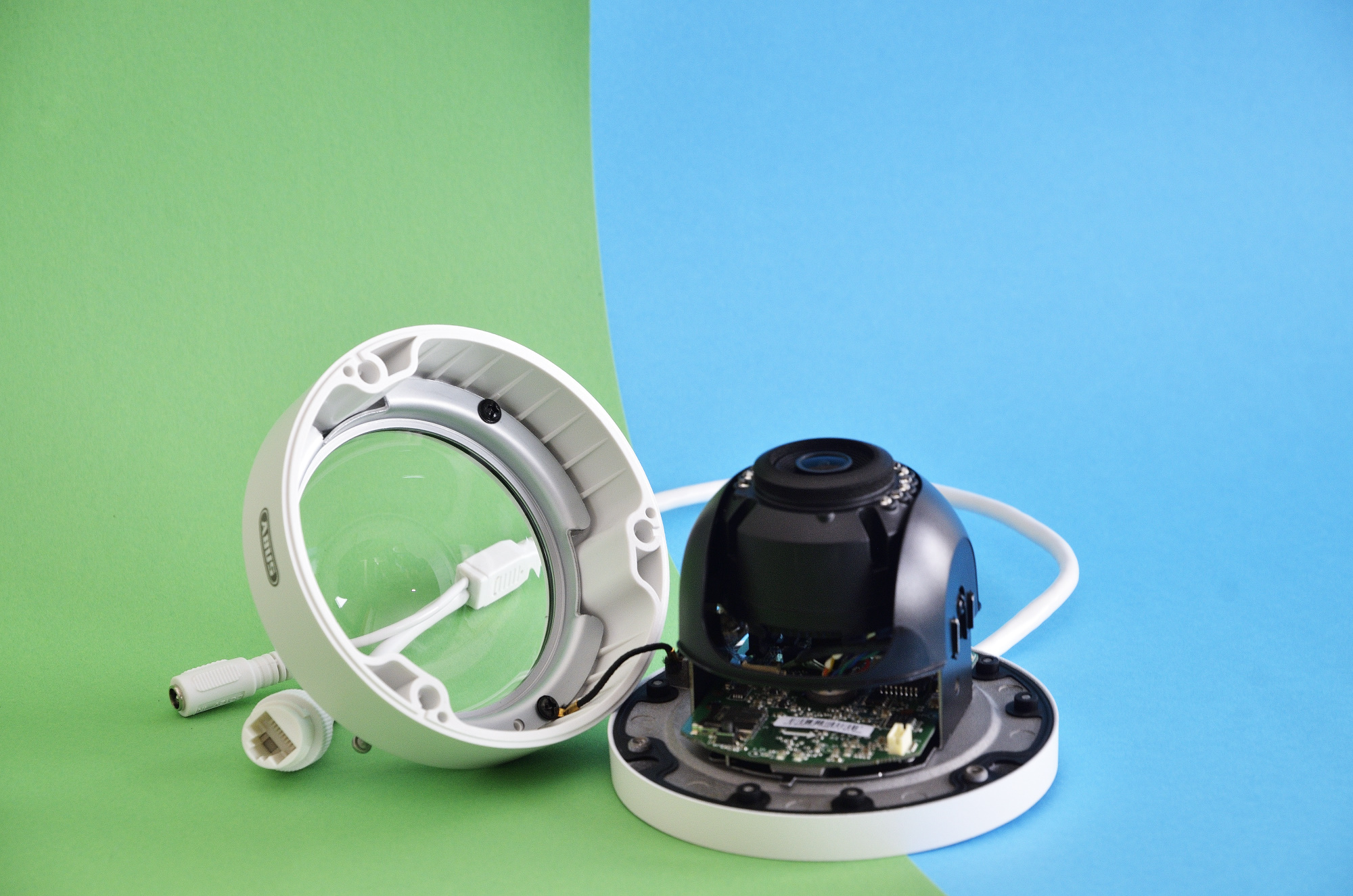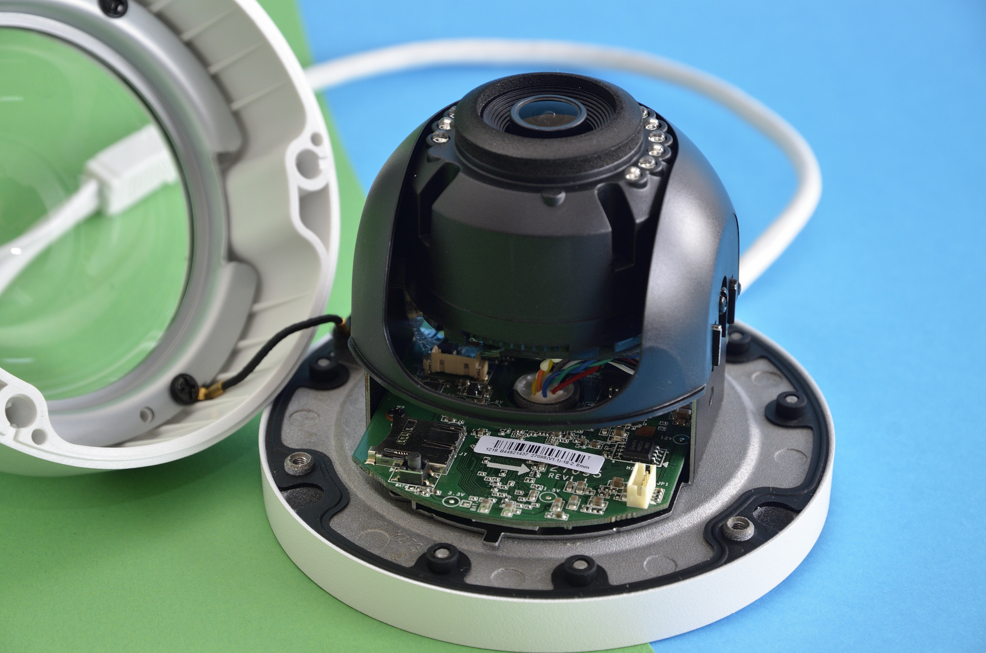 Die Kameras überzeugen durch ein massives halbkugeliges Design. Man traut ihnen ohne Blick in die Spezifikation (Schutzklasse IP67) zu, dass sie Erdbeben, Wirbelstürme und ähnliche Katastrophen ohne jeden Kratzer filmen und schadlos überstehen. Solange Strom da ist, kann gefilmt werden. Denn im Gehäuse ist auch ein Slot für eine Speicherkarte. Der Kartenslot ist unter dem verschraubten Oberteil vor unbefugten Zugriffen gesichert.