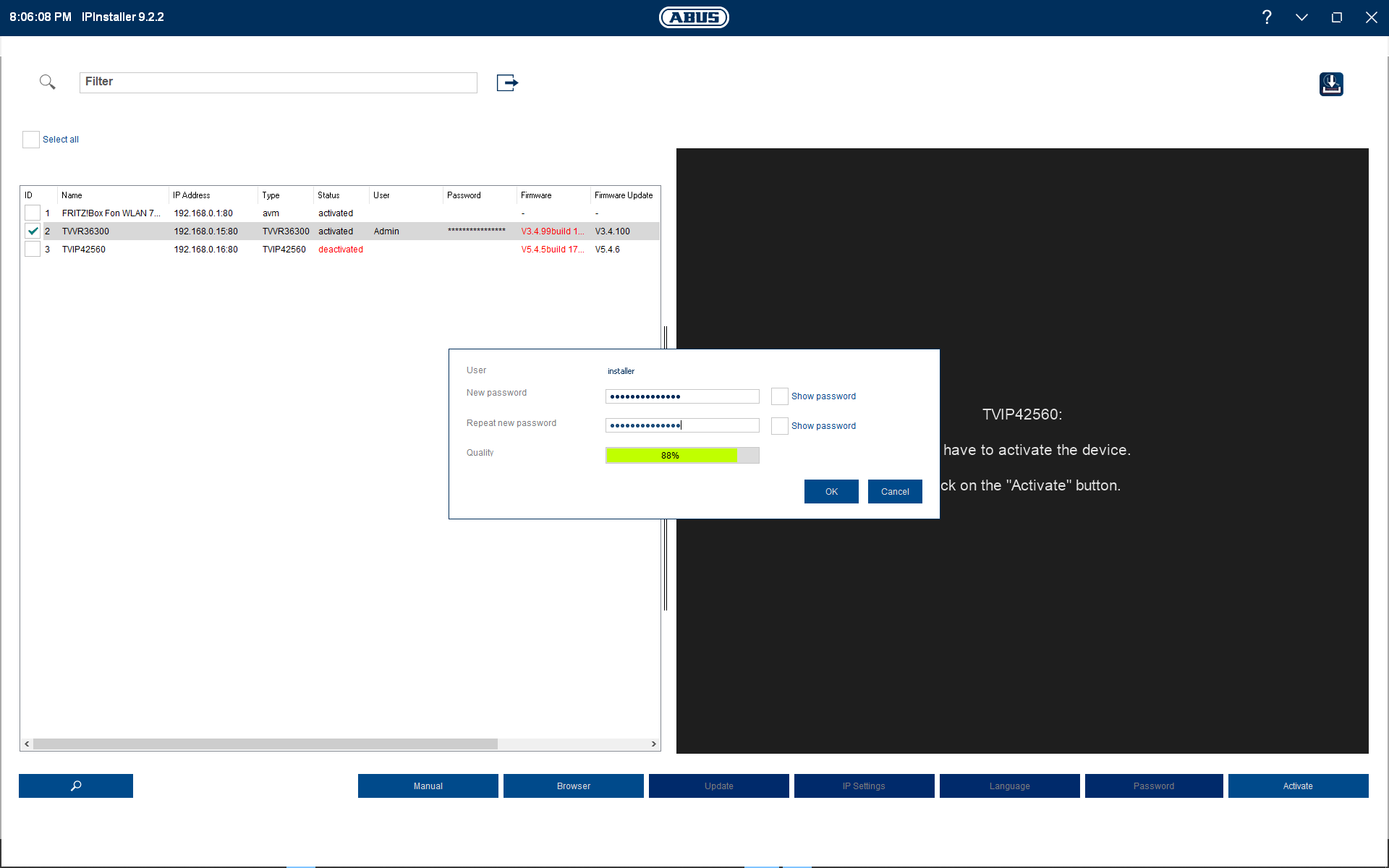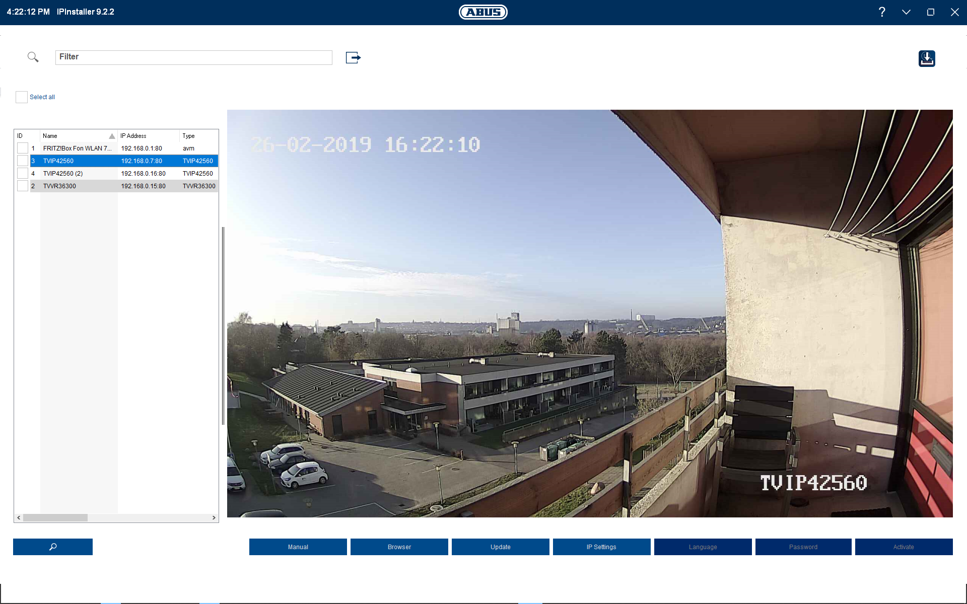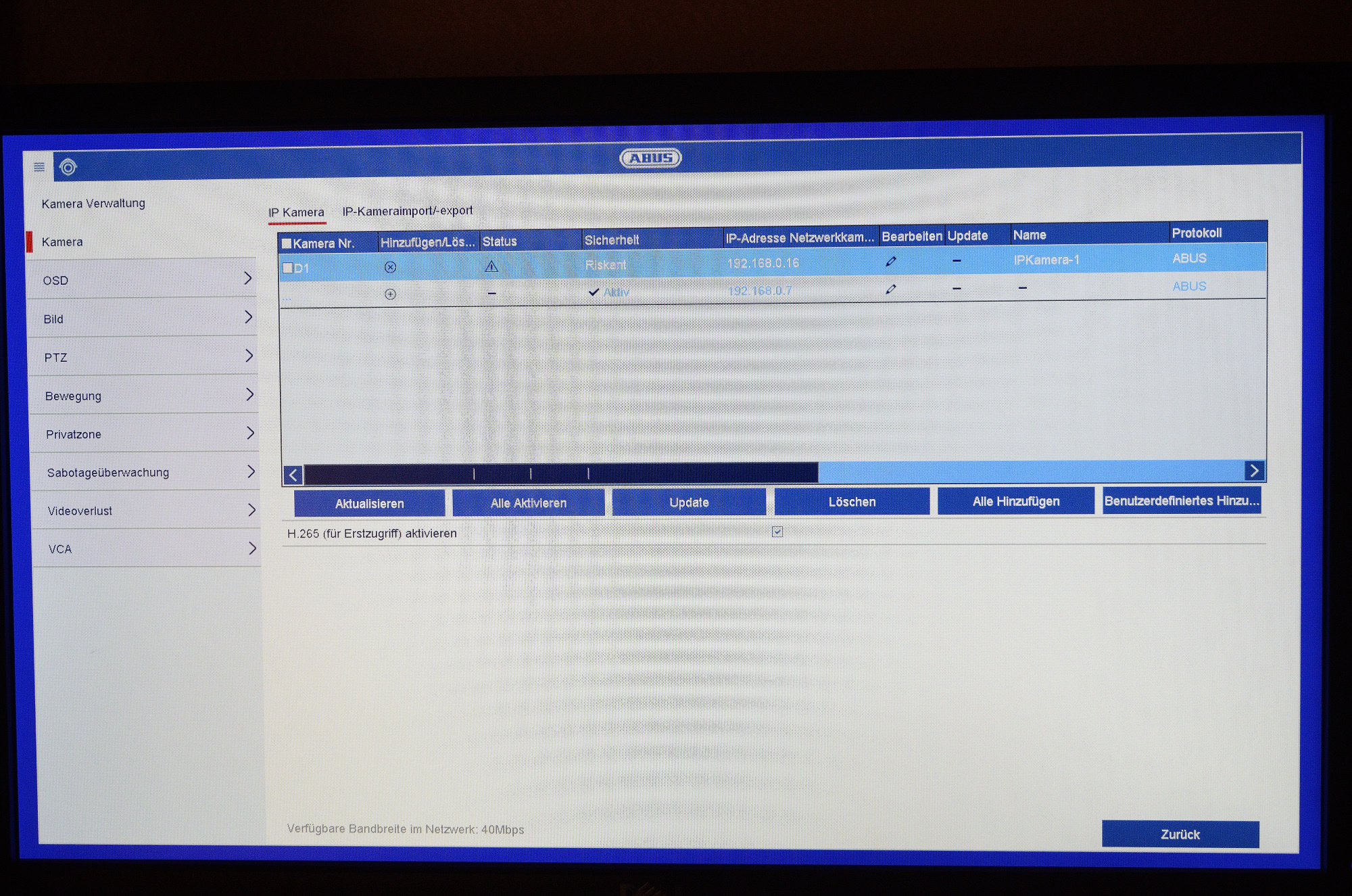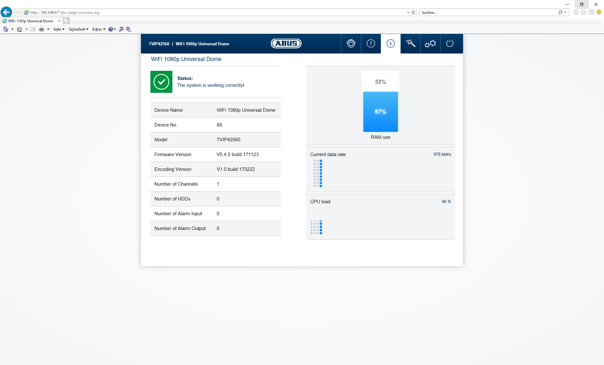 Sobald die Netzwerkverbindung steht, kann man per Fernzugriff via PC und Clientsoftware Abus IP-Installer komfortabler an der Konfiguration arbeiten.