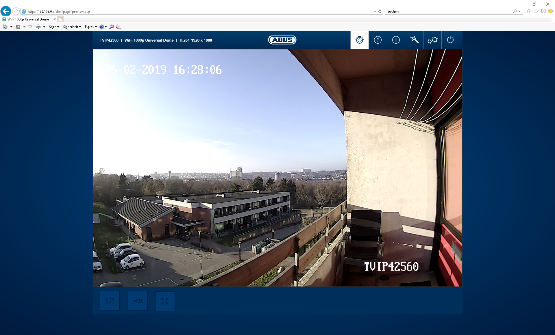 Unschön fiel im Test auf, dass die Seitenverhältnisse des Kamerabildes im Browserfenster der Kamera nicht richtig skalieren. Das von der Kamera in 16:9 produzierte Bild wurde aus unerfindlichen Gründen in 14:9 angezeigt. Auch die Vollbildansicht wird einfach in die Monitorgröße (beim Testsystem 1920x1200 Pixel) gequetscht. Das gilt auch für die App, dort mutiert zumindest im Übersichtsfenster das Bild zum Quadrat. Das könnte man nachbessern. Es geht ja schließlich bei einer Kamerasoftware vorwiegend um Bilder.