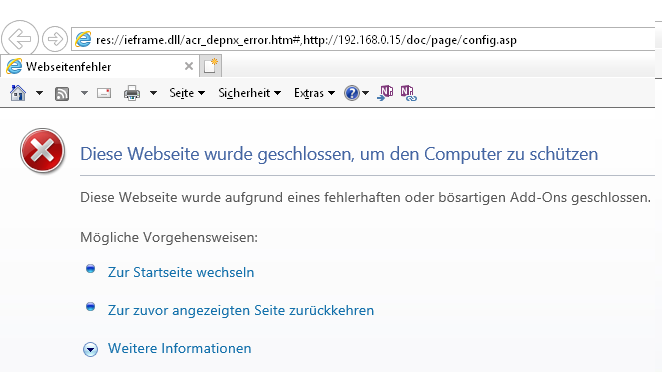 In bestimmten Konstellationen gibt es Abstürze im Browserfenster und lustige Sicherheitswarnungen, die am ActiveX-Addon leise Kritik üben. Das sei angeblich nicht besonders sicher. Die in die Jahre gekommene Anwendung und die moderne Sicherheitsarchitektur von Windows 10 passen diesbezüglich nicht so recht zusammen.