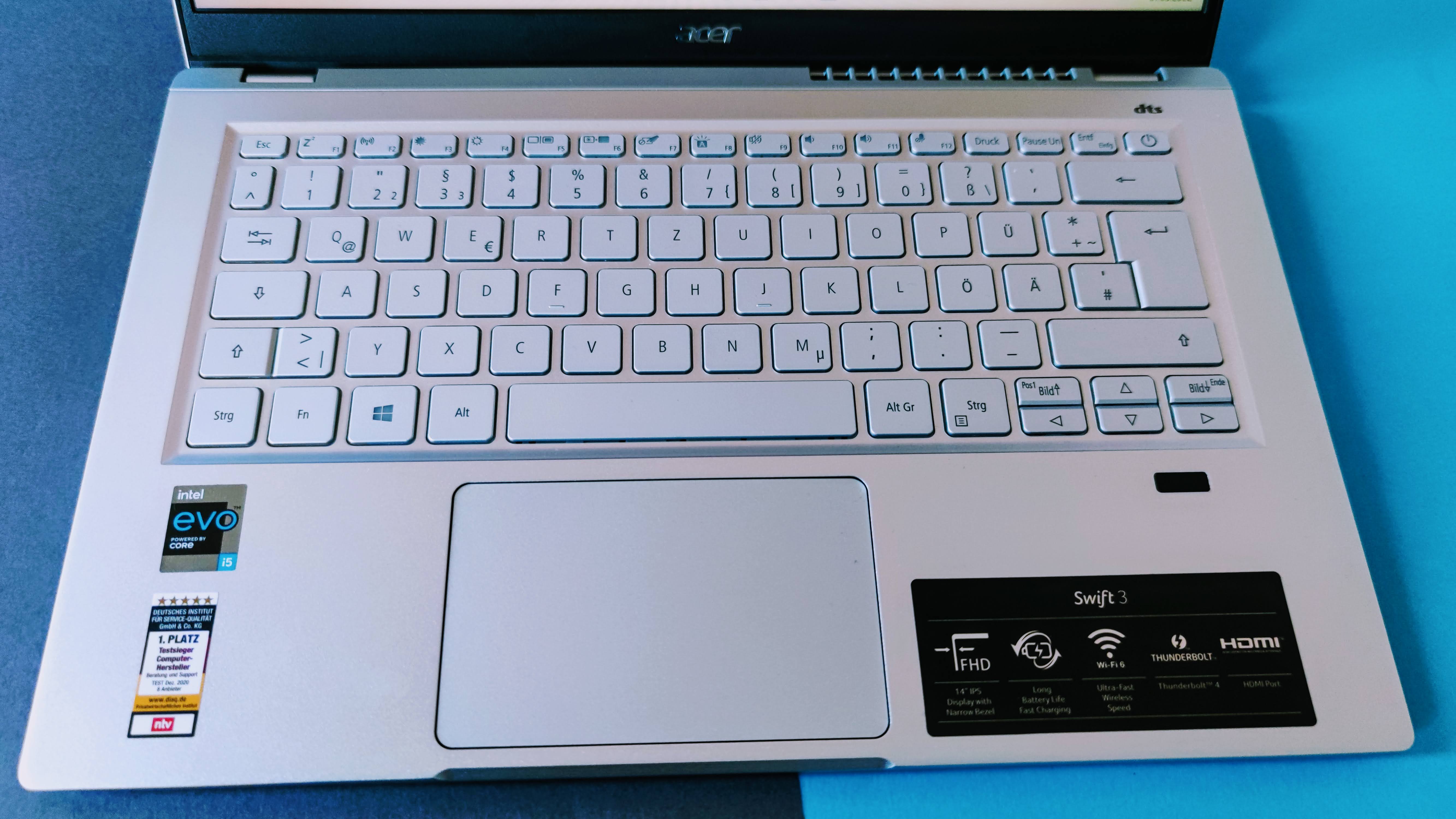 Das Acer Swift 3 ist ein hervorragendes und kompaktes 14-Zoll-Gerät für jeden, der häufig seinen Laptop mitnehmen möchte. Die Akkulaufzeit ist mit fast 12 Stunden ausgezeichnet, für genügend Leistung für Arbeit und Unterhaltung (außer Spiele) sorgt der Intel Core i5. Die Verarbeitung ist tadellos, das Gewicht hält sich mit 1,2 Kilogramm in Grenzen. Eine gute Ausstattung, das matte Display und ausreichend Anschlüsse (Thunderbolt 4, HDMI, USB-A, Klinke) runden das Paket ab. Das Display könnte etwas heller und die Tastatur markanter sein, aber ein vergleichbares Laptop mit 16 GByte RAM bekommt man derzeit so gut wie gar nicht für diesen Preis.