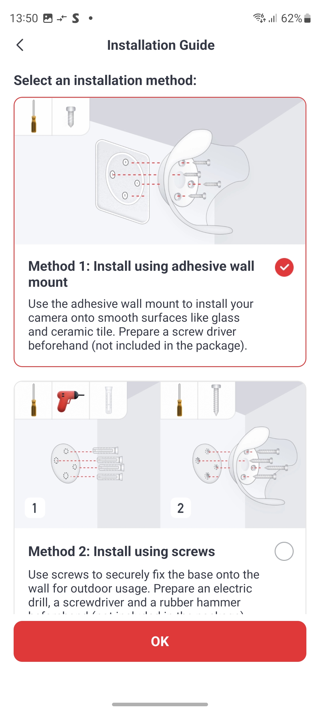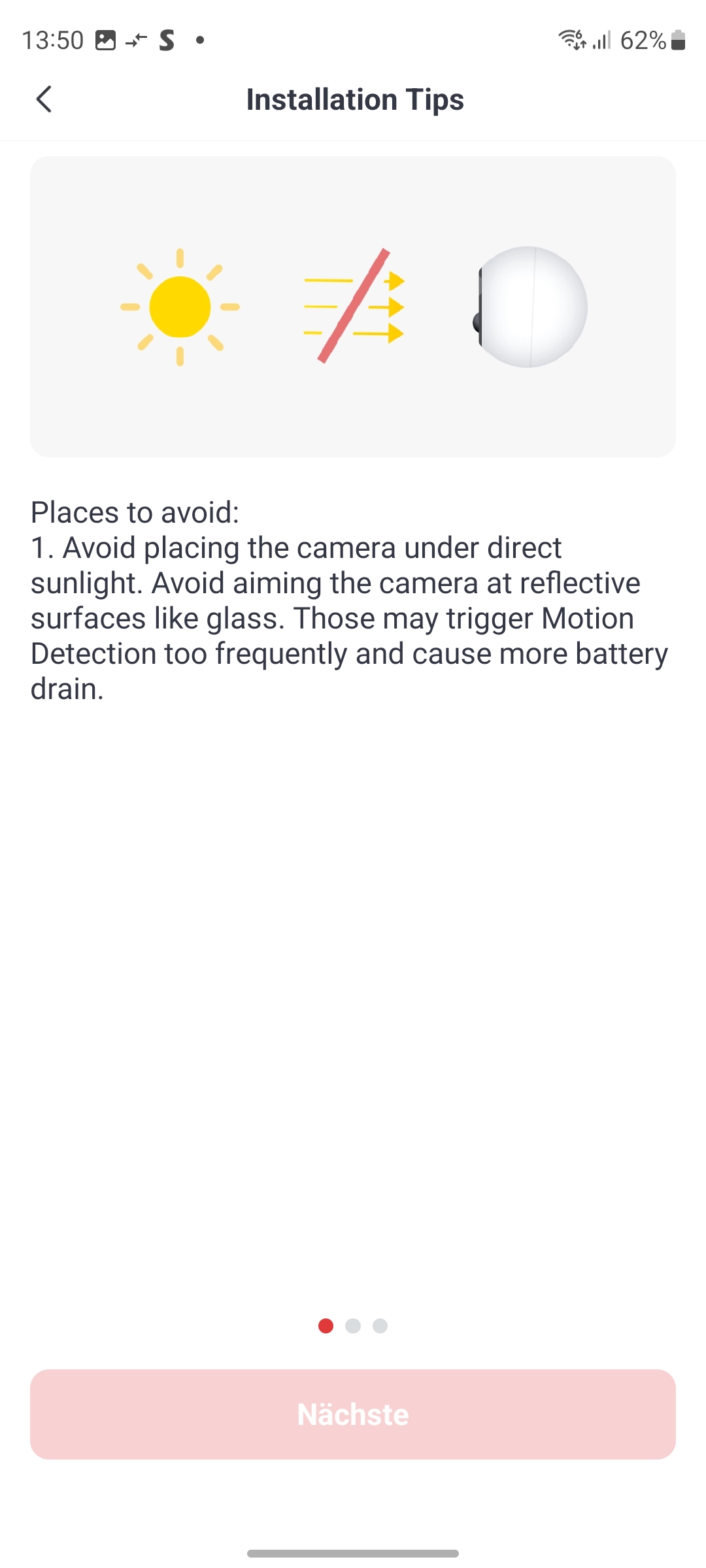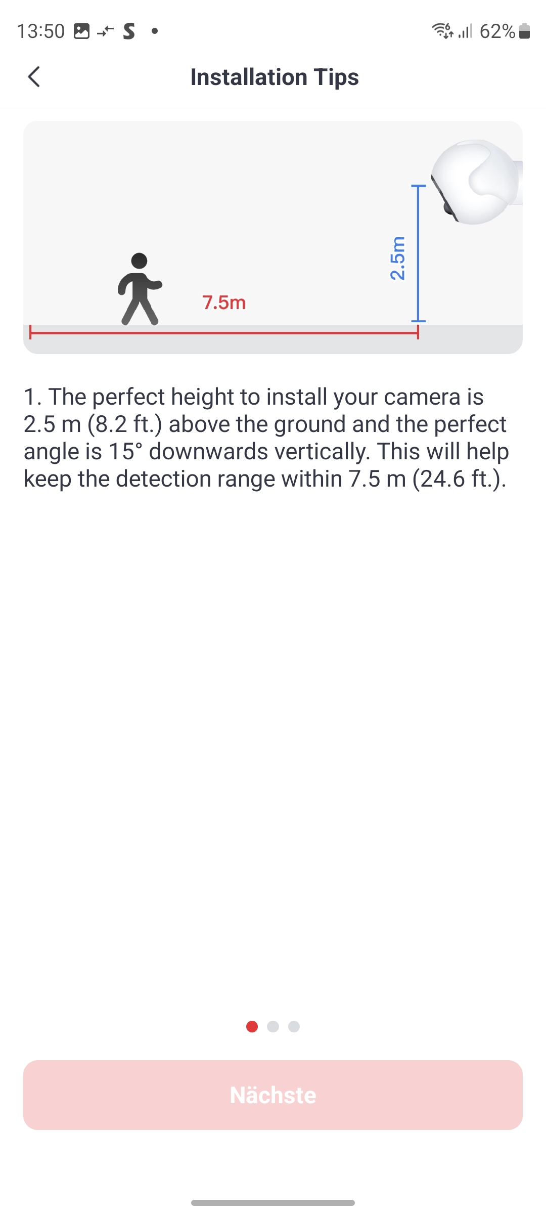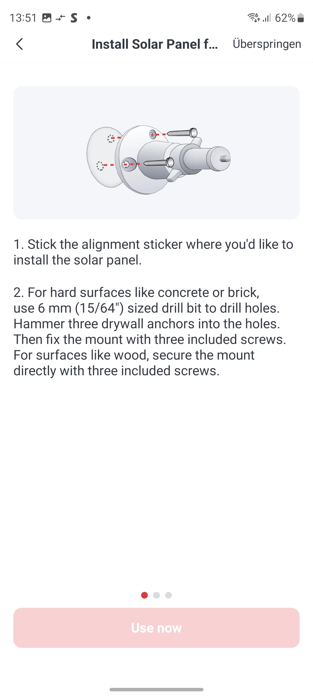 Der Lieferumfang enthält neben der Kamera eine verschraubbare Halterung inklusive Schrauben und Dübel sowie eine Bohrschablone und ein englischsprachiges Benutzerhandbuch. Ein deutsches Handbuch haben wir nicht gefunden, auch nicht im Support-Bereich des Herstellers. Immerhin existiert eine deutsche Q&A. Mitgeliefert wird außerdem ein Klebepad mit Schraubfassung, mit der man die Kamera sehr leicht an glatten Oberflächen montieren kann (siehe auch Bildergalerie).