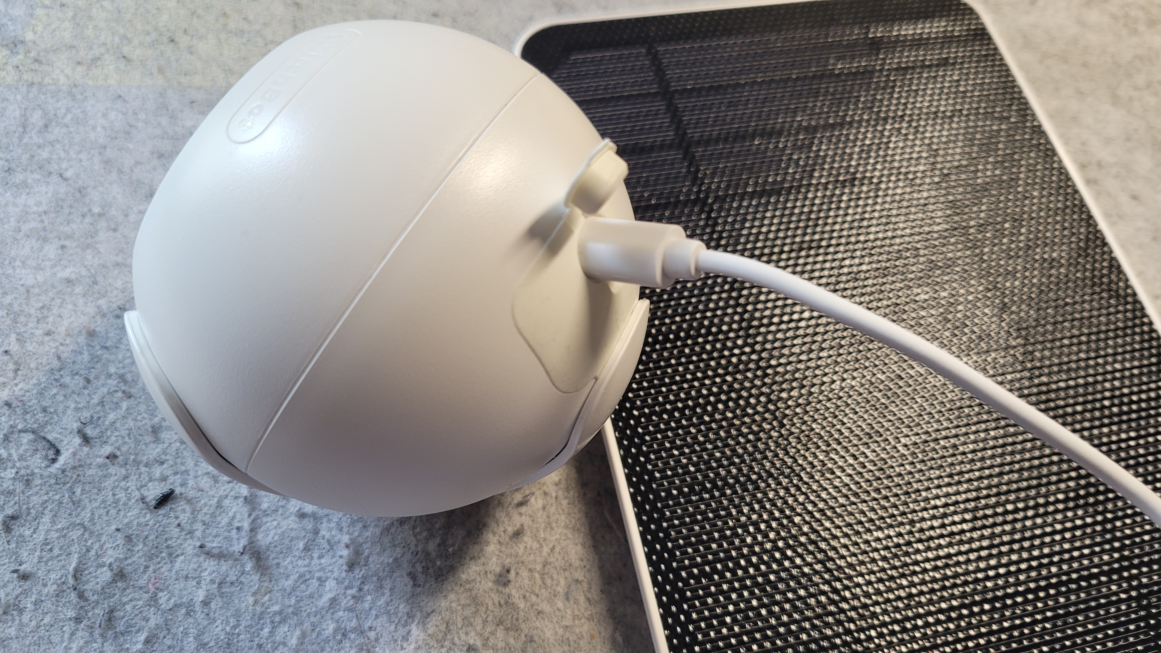 Als optimale Montagehöhe empfiehlt Switchbot mindestens 2,5 Meter. Die Kamera ist nach IP55 wetterfest, doch einer direkten Sonneneinstrahlung sollte man sie laut Handbuch nicht aussetzen. Das schränke den Montageort etwas ein. Die meisten Anwender dürften die Kamera auf einem Regal positionieren. Die an der Unterseite angebrachten Gummifüße bieten auch auf glatten Oberflächen einen stabilen Halt, sodass man die Halterung nicht unbedingt benötigt. Alternativ ist auch eine Montage an der Decke möglich, wobei allerdings das mitgelieferte USB-Kabel in den meisten Fällen zu kurz sein dürfte.