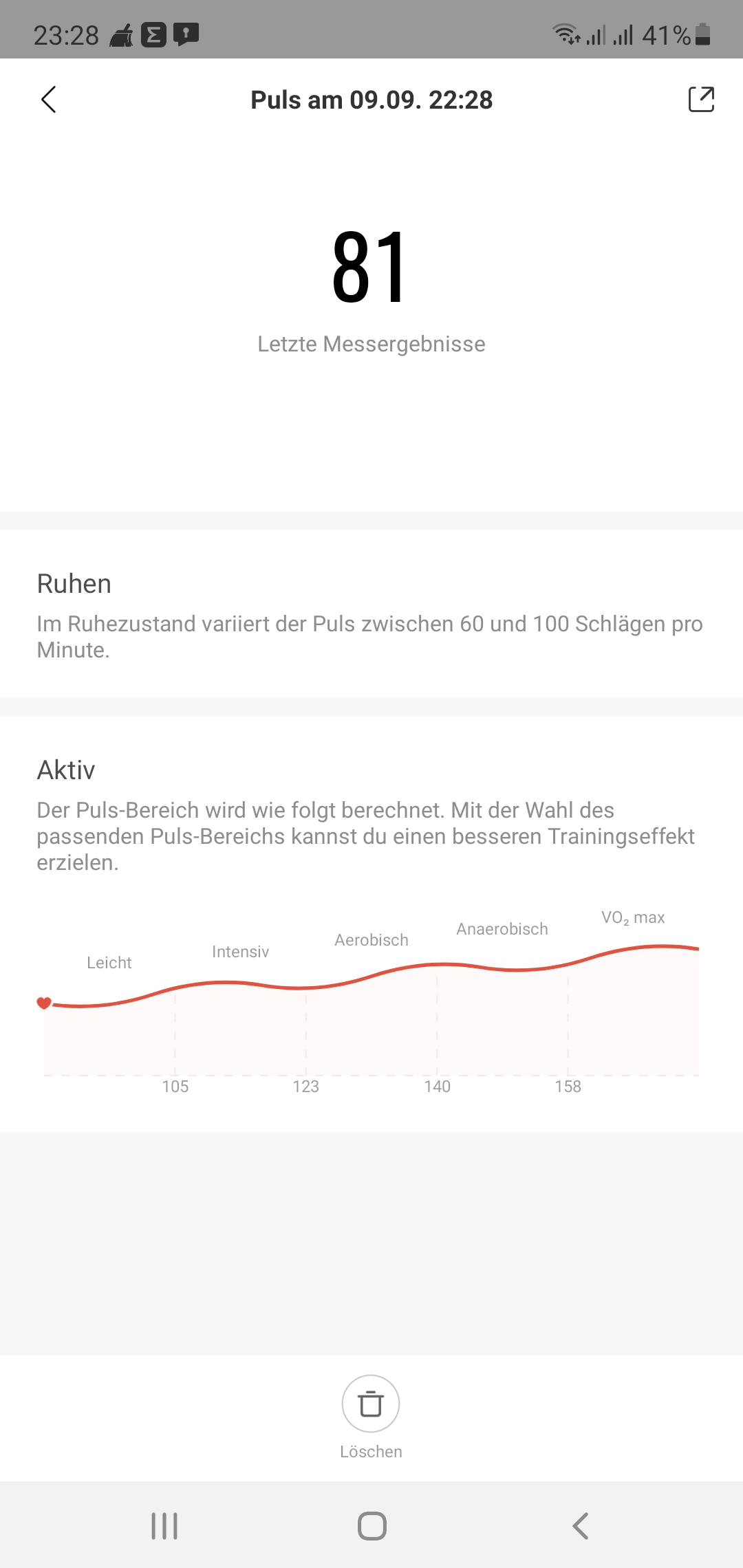 Zurückgelegte Routen etwa beim Joggen oder Radfahren werden durch das integrierte GPS aufgezeichnet. Das Signal wurde im Test sehr schnell gefunden. Trainings lassen sich im Menüpunkt „Aktivitätsverlauf“ auch nachträglich aufrufen. Auf dem Uhren-Display wird die Strecke abgebildet, zudem hat man unter anderem Zugriff auf die Gesamtzeit, die Geschwindigkeit pro Kilometer, die Herzfrequenz und die verbrannten Kalorien. In der „Zepp“-App werden das Tempo, die Herzfrequenz und der Pulsbereich zusätzlich grafisch aufbereitet. Hier legt man auch die persönlichen Ziele fest – wie viele Schritte will man pro Tag gehen, welches Gewicht strebt man an, wie viele Kalorien sollen verbrannt werden und wie viele Stunden möchte man schlafen? Neben dem PAI-Wert gibt die App zudem Auskunft zum Stresslevel und zur Schlafqualität. Die Anwendung ist übersichtlich gestaltet und sehr informativ, das passt.