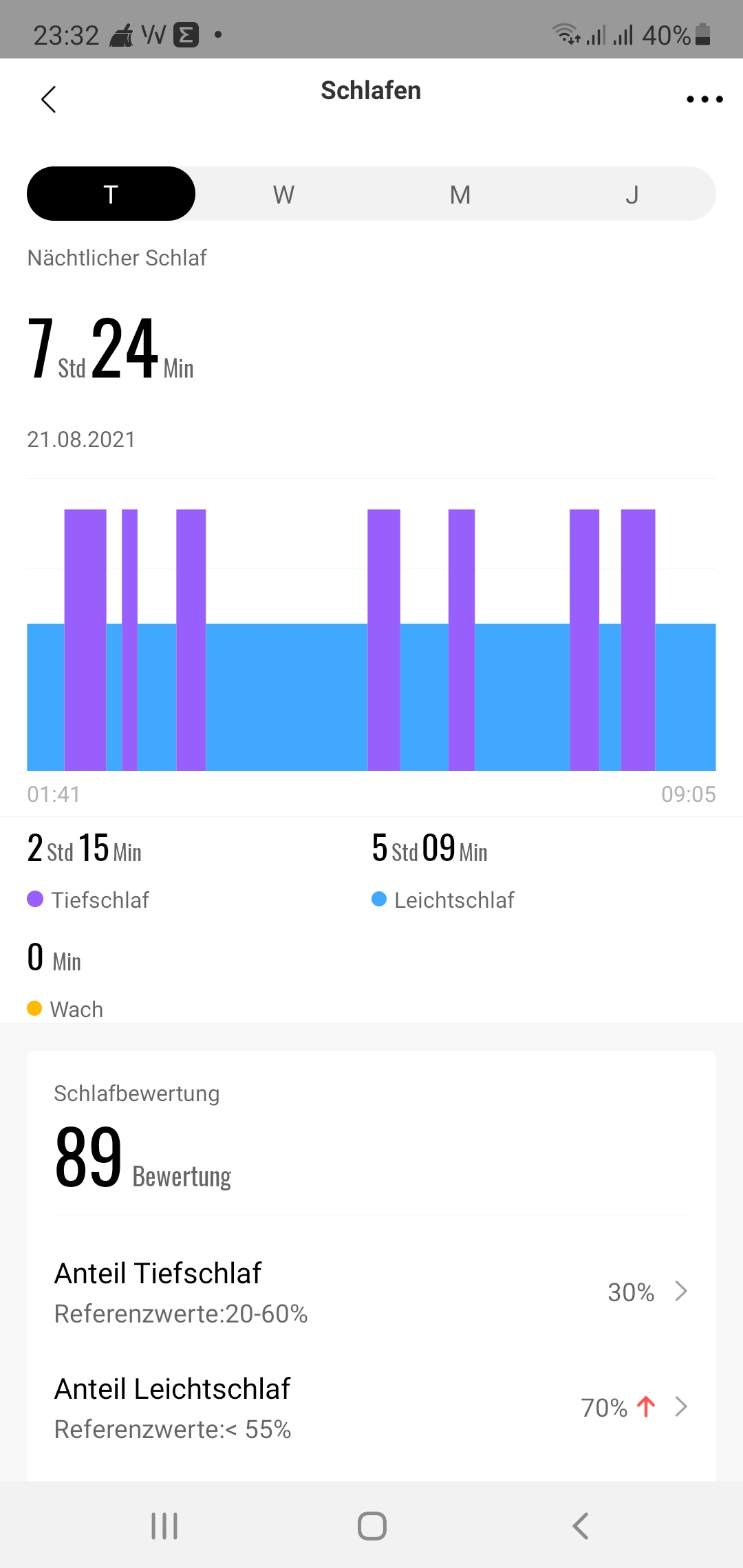 Um das Thema Schlaf kümmert sich die Bip S ebenfalls. Über die „Zepp“-App wird eine Schlafpunktzahl ermittelt, die eine Aussage über die Qualität des Schlafs geben soll. Darüber hinaus schlüsselt die App den Schlaf in Tiefschlaf-, Leichtschlaf- und Wachphasen auf und ermöglicht einen Überblick über die Schlafregelmäßigkeit.