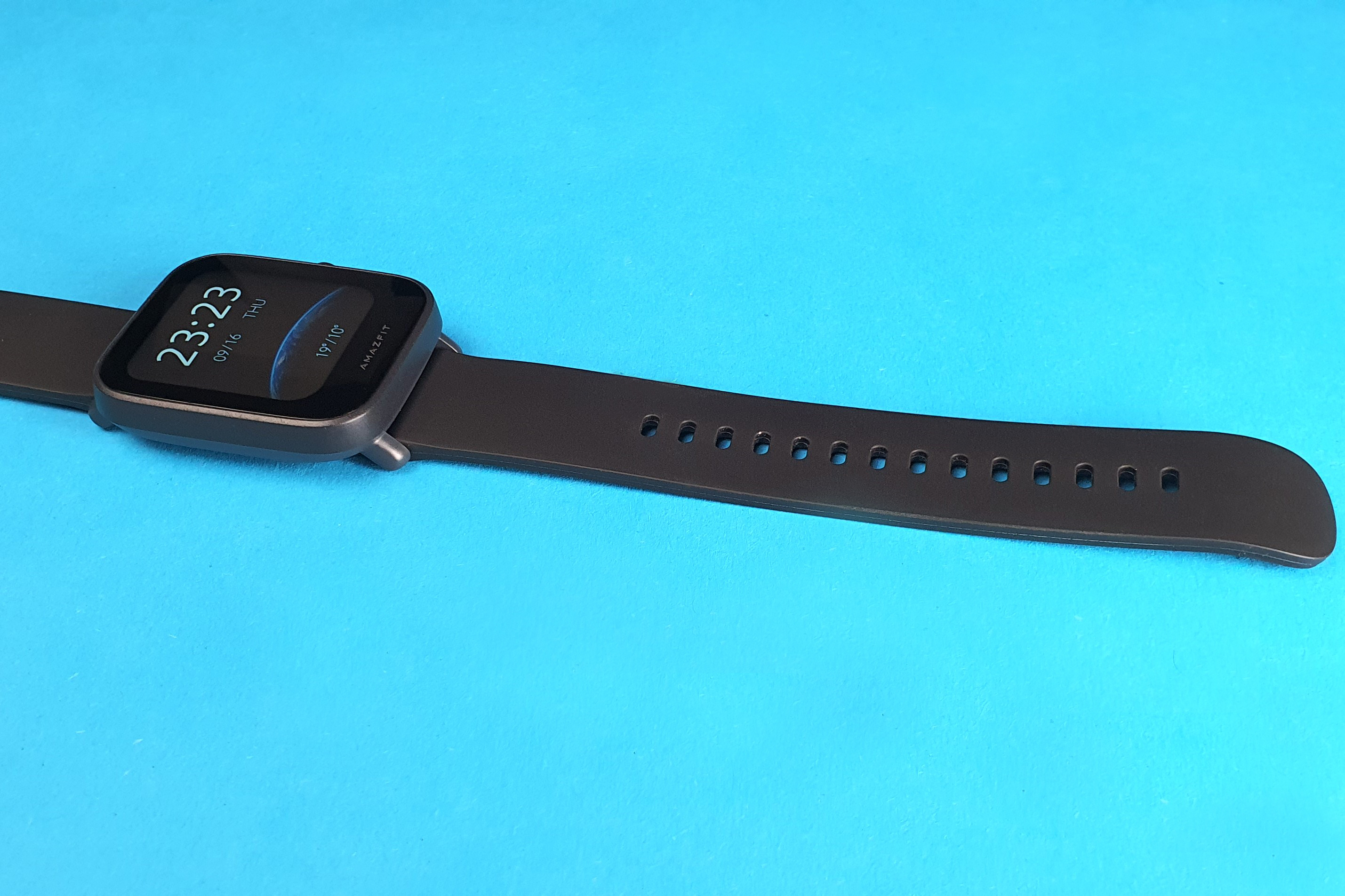 Mit gerade mal 31 Gramm ist die Bip U ein absolutes Fliegengewicht. Man spürt sie nicht am Handgelenk. Das Gehäuse besteht zwar nur aus Kunststoff, ist aber ordentlich verarbeitet. Und das weiche, 20 Millimeter breite Armband aus Silikon ist super weich, hautfreundlich und schmiegt sich um das Handgelenk. Das Zumachen gelingt einfach dank klassischer Dornschließe. Zum Duschen, Baden und Schwimmen muss die Bip U nicht abgelegt werden, sie ist bis zu 50 Meter wasserdicht. Ihr Design ist zeitlos, dezent, aber trotzdem schick. Am Handgelenk trägt die Amazfit mit einer Höhe von rund einem Zentimeter nicht zu dick auf und ist damit ein universeller Begleiter, egal, ob beim Sport, im Theater oder im Restaurant.
