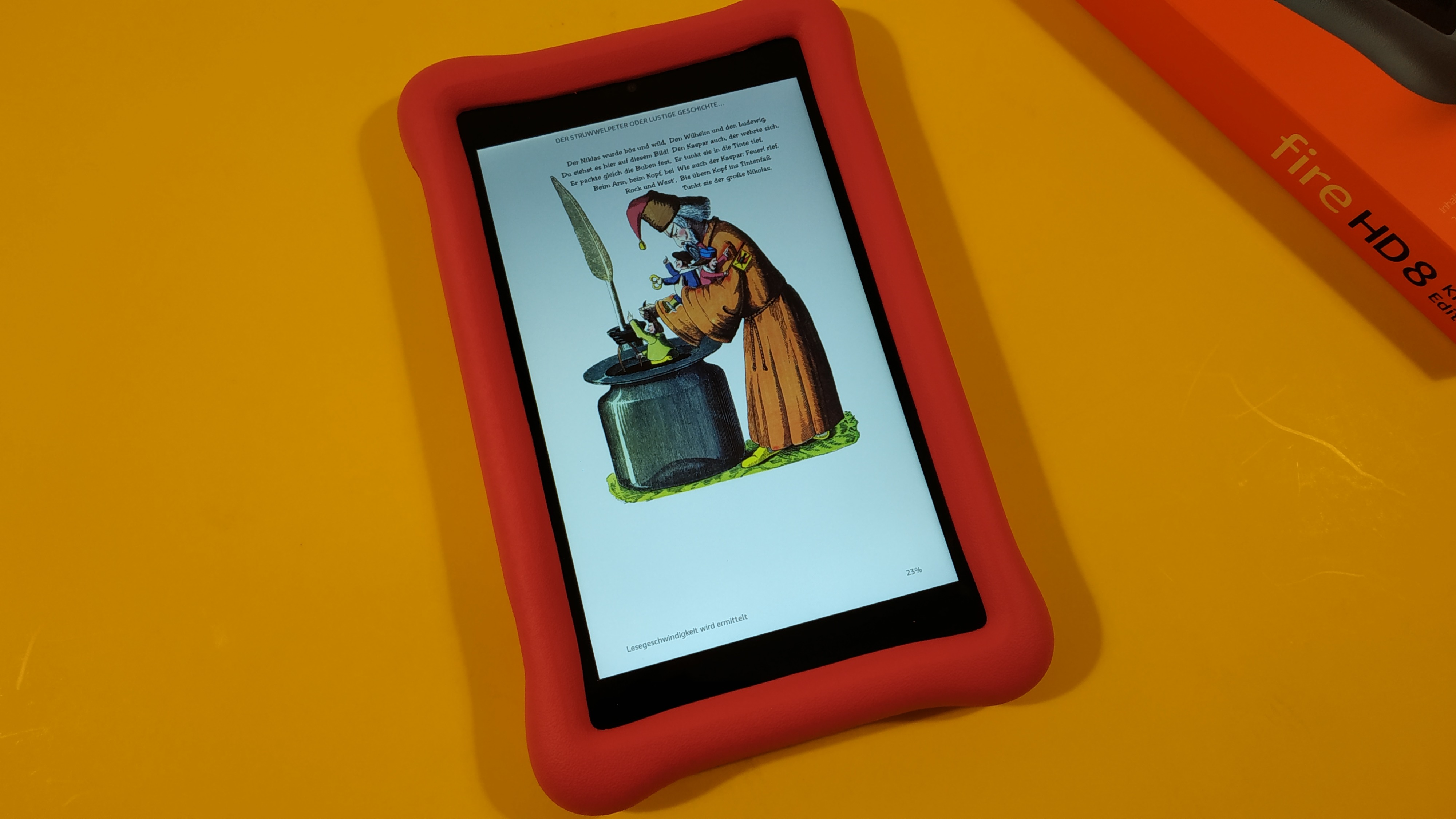 Das 8 Zoll große Display des Fire HD 8 Kids Edition löst 1280 × 800 Pixel auf. Farben werden tendenziell etwas blass dargestellt und die maximale Helligkeit ist nicht besonders hoch. Auf Eingaben reagiert das Panel zufriedenstellend.