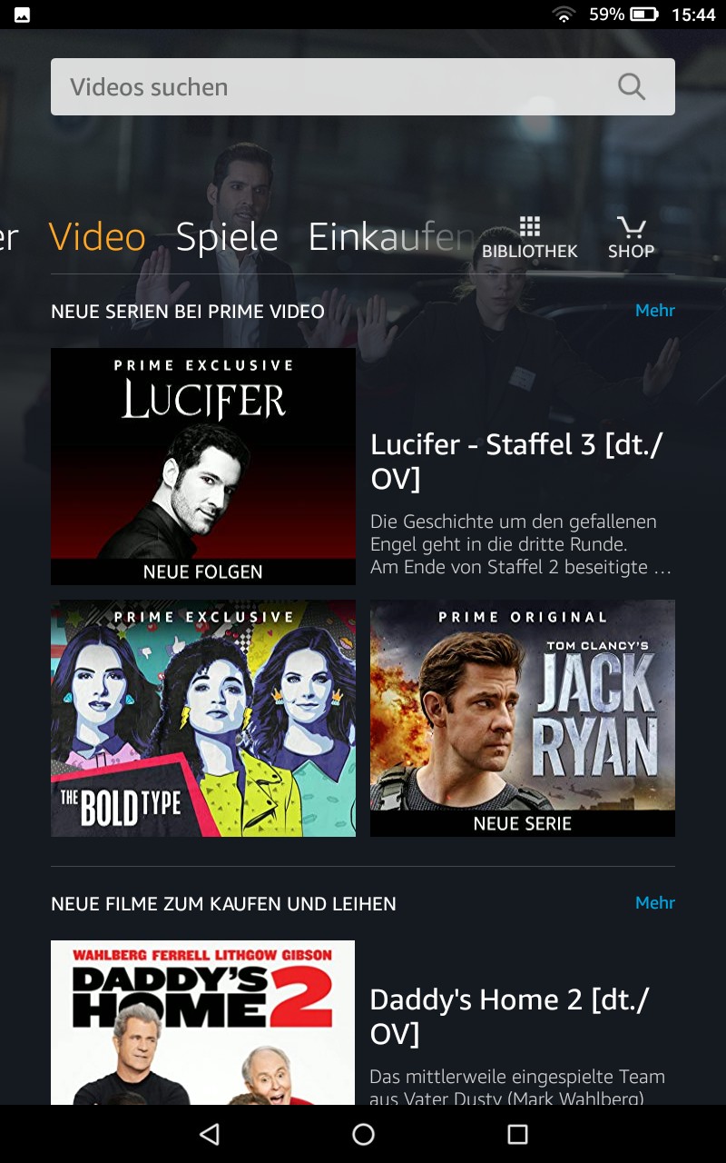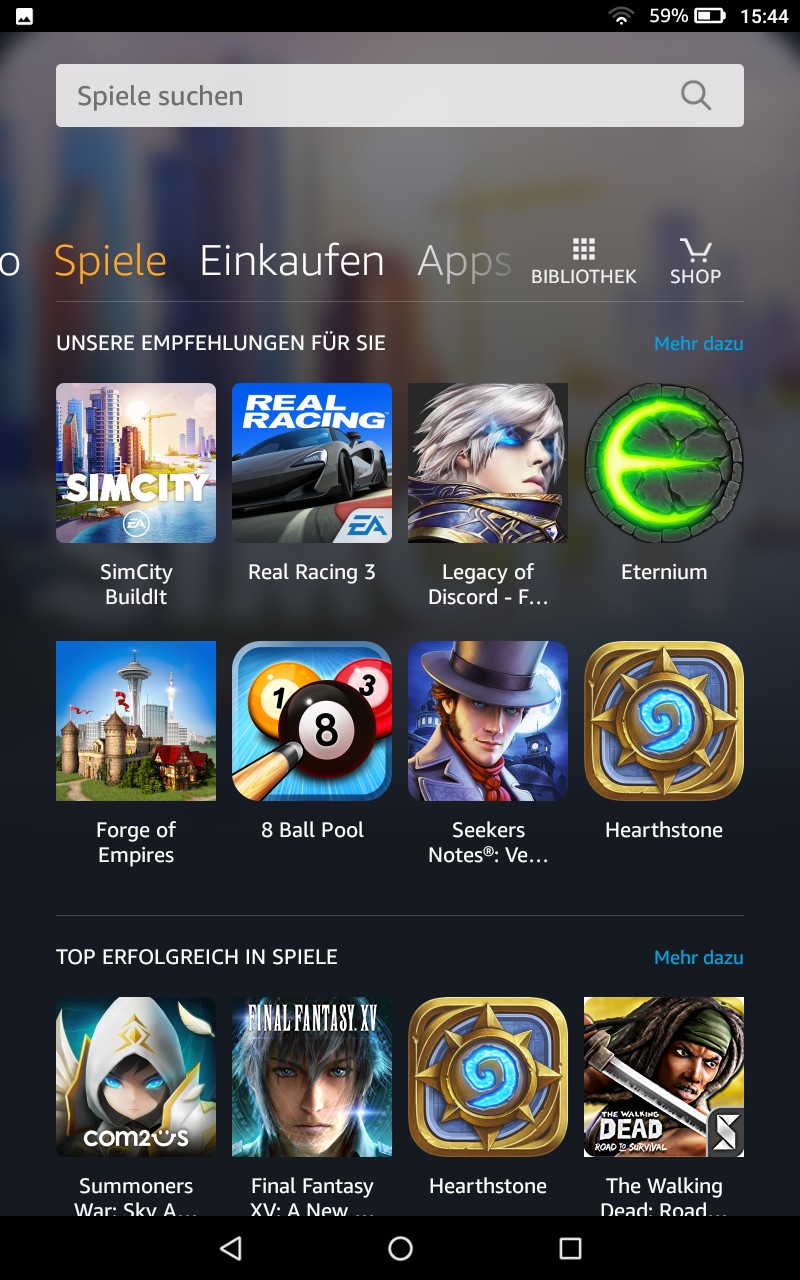 Wie bei seinen anderen Geräten mit Fire-OS-Betriebssystem verpasst Amazon dem Fire HD Hardware, die gerade zu einer akzeptablen Performance in der Lage ist. Das System an sich ist zwar gut nutzbar, läuft die meiste Zeit flüssig, kleinere Hakler und Hänger sind aber keine Seltenheit. Zum Zocken ist das Gerät somit nur bedingt geeignet.