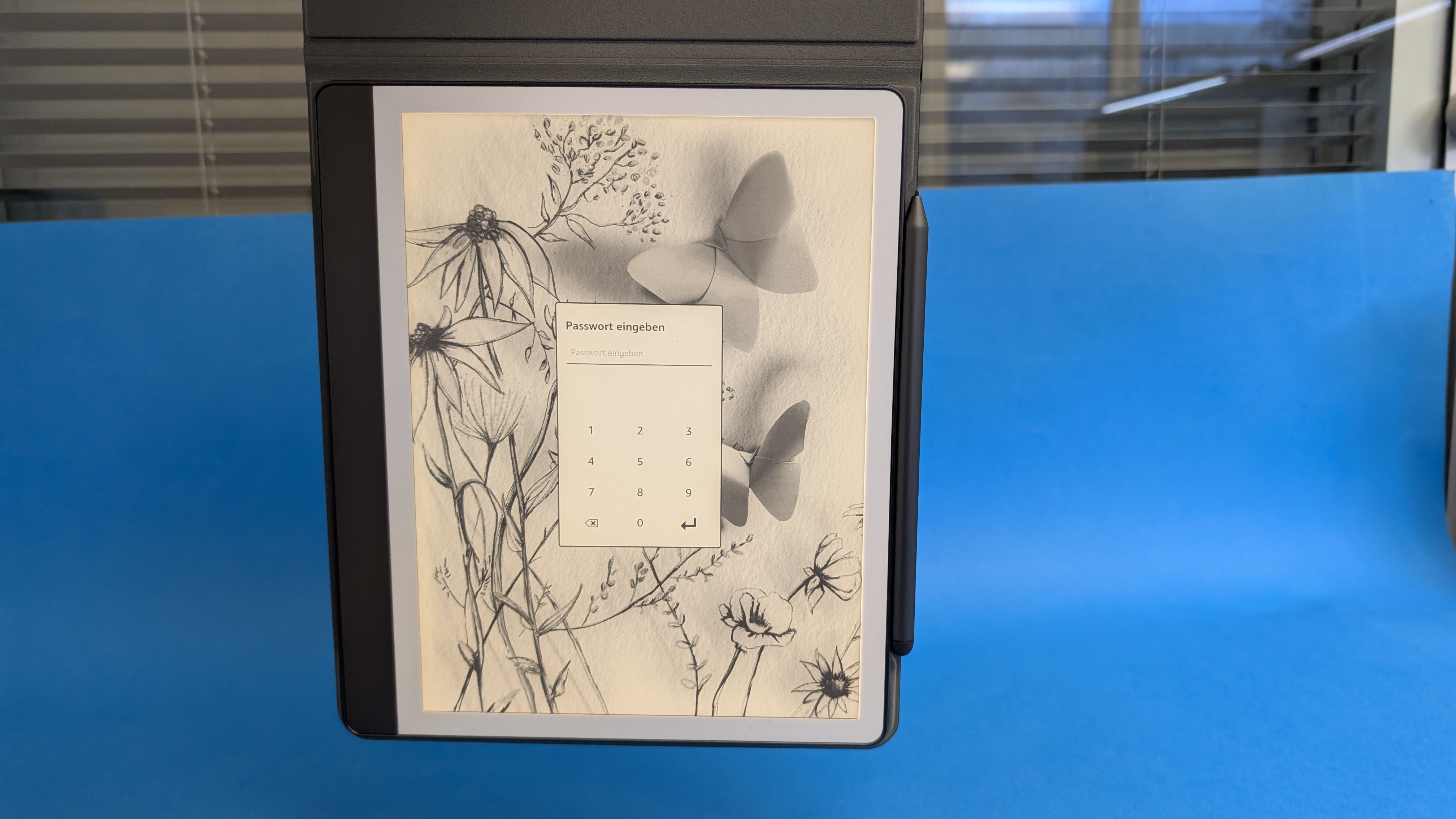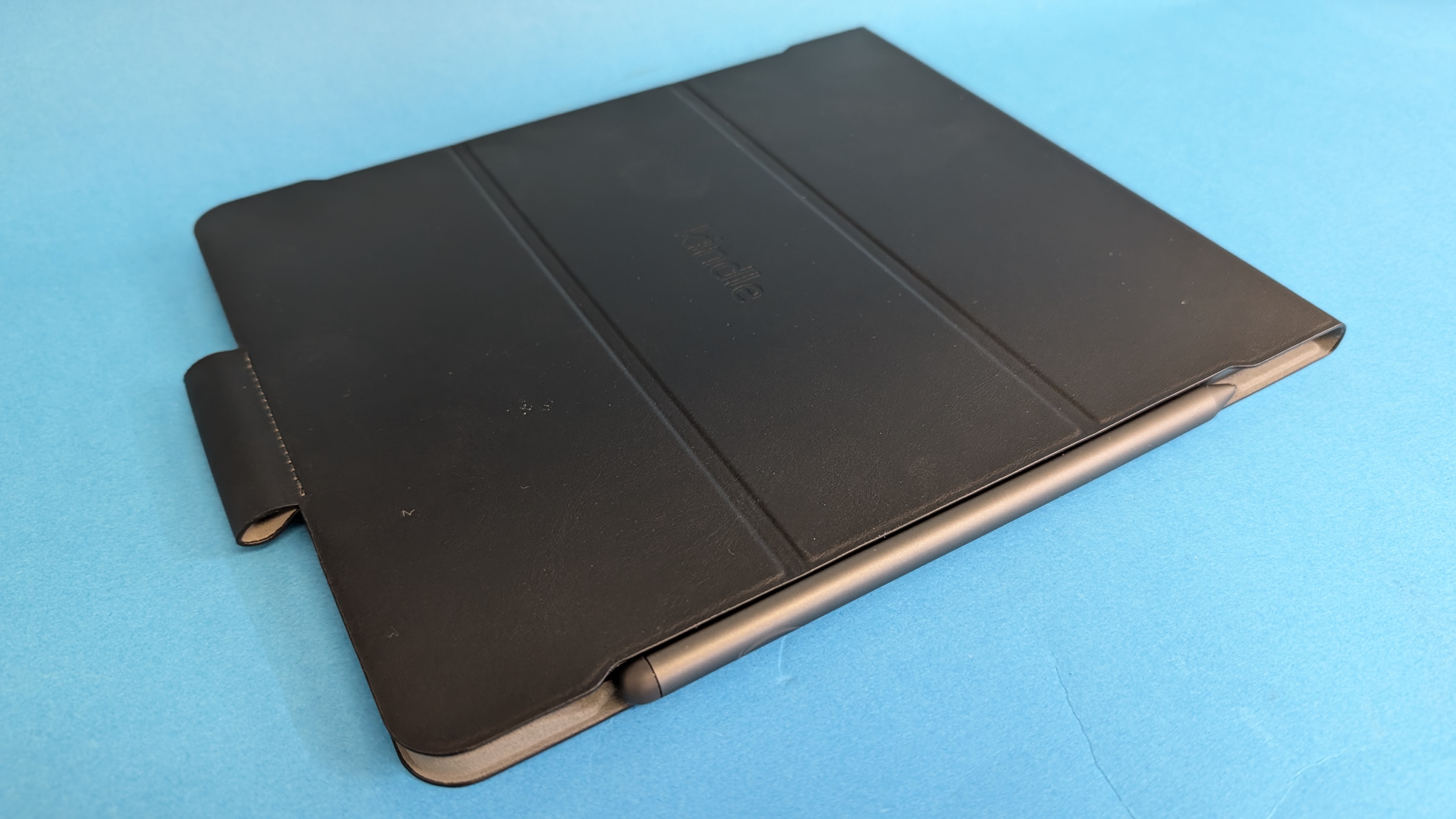 Optional gibt es für 63 Euro eine Schutzhülle. Das Kindle Scribe haftet in ihr magnetisch. So lässt sich die Hülle beim Lesen sehr einfach entfernen und wieder anbringen. Über den Faltmechanismus kann das Scribe stehen oder leicht angewinkelt liegen. Das hilft etwa beim Schreiben auf dem E-Book-Reader. Die Klapphülle hat eine zusätzliche Schlaufe, in der der Stift Platz findet. Das verringert die Gefahr, ihn zu verlieren.