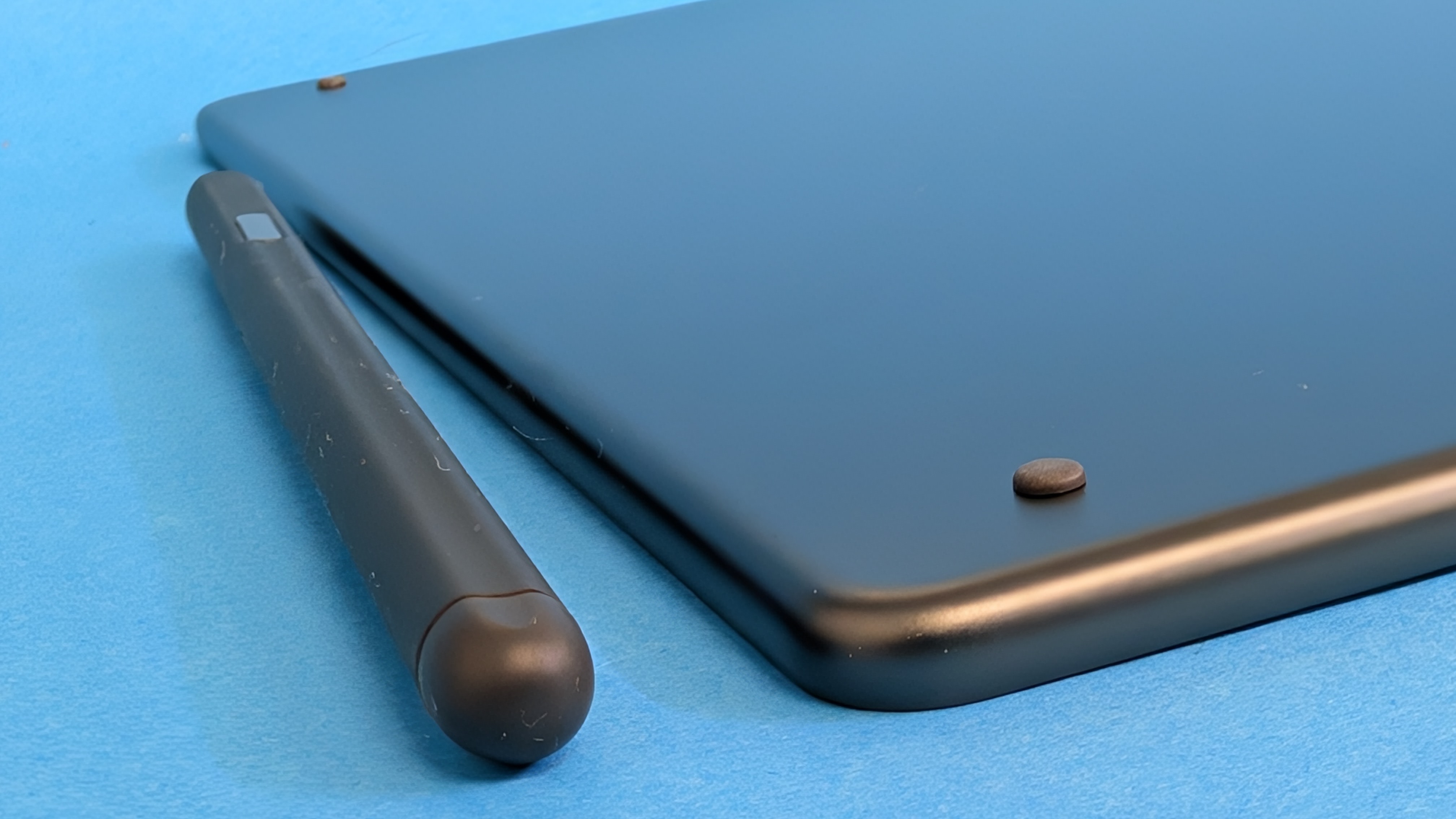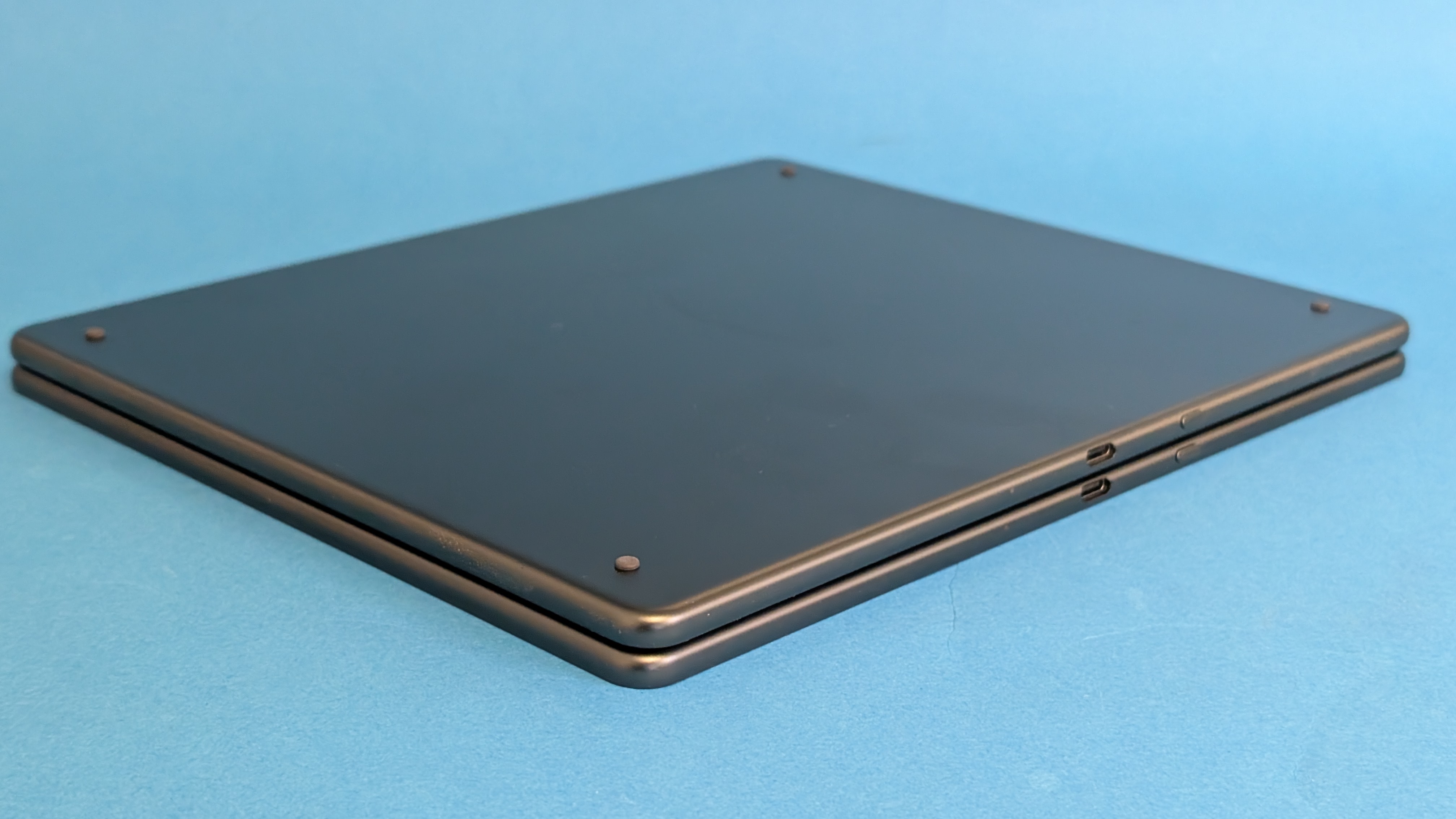 Mit Abmessungen von 230 x 196 x 5,7 mm und einem Gewicht von 433 g inklusive Stylus liegt das Scribe 2024 für ein 10-Zoll-Gerät angenehm in der Hand. Die leicht abgerundeten Ecken und die leicht aufgeraute Oberfläche sorgen für einen sicheren, komfortablen Halt. Bei langen Lese- oder Schreibsessions könnte sich das Gewicht nach einer Weile bemerkbar machen. Die generelle Verarbeitungsqualität ist auf Top-Niveau – alles wirkt hochwertig und robust. Der magnetisch haftende Stylus sitzt sicher an dessen Seite.