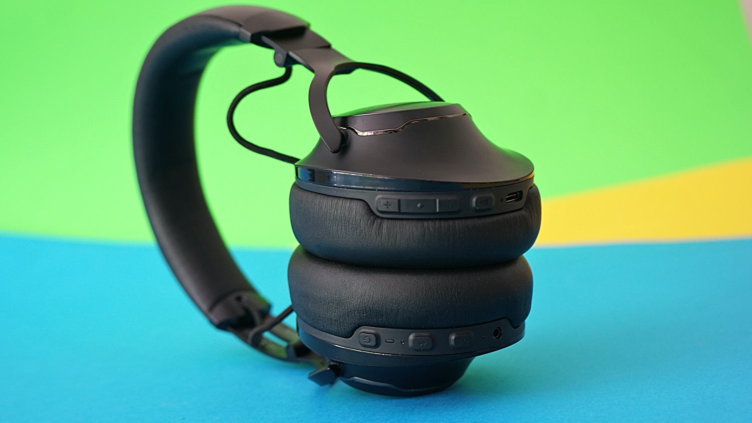 Bei den Bedienelementen hat JBL einen Tick zu viel gewollt: Auf der linken Seite befindet sich direkt auf der Rückseite des Hörers eine große Aktionstaste zur Steuerung des Google Assistenten. Per App lässt sich immerhin festlegen, ob man die Assistenz von Google oder Amazon nutzen möchte. Nutzt man dieses System nicht, ist die Taste nutzlos. Mehr noch: Drückt man versehentlich darauf, sagt eine nette Stimme: The Google Assistent ist not connected . Danke für diesen Hinweis, aber das wussten wir selbst. Schön wäre es, wenn die Taste für andere Zwecke belegt werden könnte – oder sie zumindest ausschaltbar wäre. Zumal man beim Zurechtrücken des Kopfhörers immer wieder gegen die Taste stößt. Auf der hinteren Kante der linken Seite befinden sich noch der Powerbutton, die Bluetooth-Taste, eine Taste zur Aktivierung von ANC und Talkthru sowie den Anschluss für ein Klinkenkabel. Auf der rechten Seite gibt es Lautstärke-Tasten mit einem Multifunktionstaster in der Mitte, eine Taste zur Bass-Verstärkung und den USB-C-Anschluss zum Aufladen.