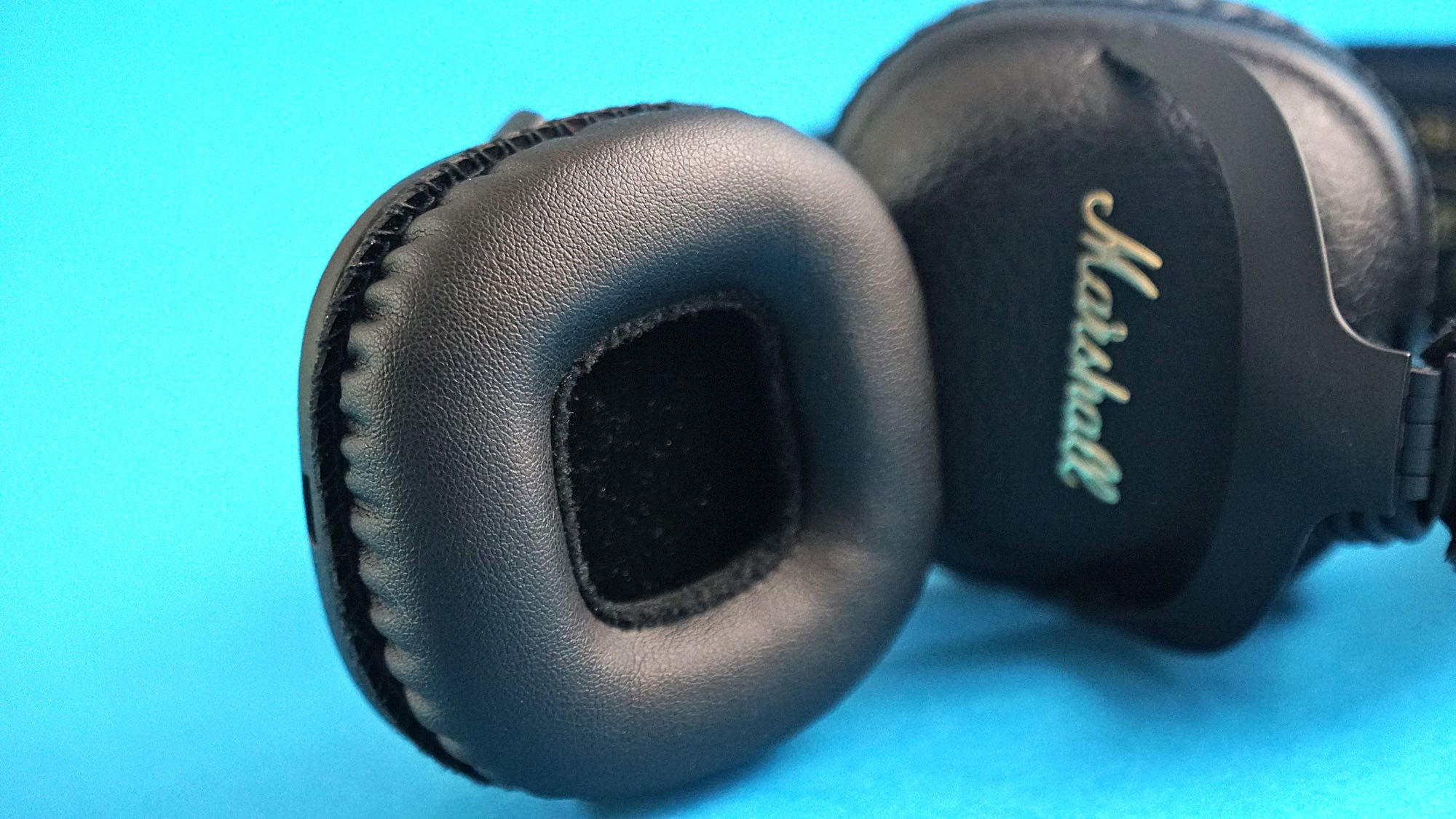 Kennt man einen Marshall-Kopfhörer, kennt man alle – jedenfalls äußerlich: Acht verschiedene On- und Over-Ear-Kopfhörer in drei Bauformen werden auf der Marshall-Webseite aufgeführt, selbst ohne das große Logo würde man die Kopfhörer sofort als Marshall-Headsets identifizieren. Der MID A.N.C. ist nahezu baugleich mit dem MID Bluetooth: Es handelt sich um einen On-Ear-Kopfhörer, die Ohrpolster liegen auf dem Ohr, umschließen es also nicht. Dadurch fällt die bei Over-Ear-Kopfhörer bereits vorhandene physikalische Geräuschabschirmung weg. Der Kopfbügel ist auf der Innenseite gefüttert und mit einem festen Stoff aus Mikrofaser bezogen. Außen dominiert am Bügel und an den Ohrhörern Kunstleder, die Polster der Hörschalen sind angenehmen weich. Der Kopfhörer ist ein paar Zentimeter in der Größe verstellbar, auch die beiden Scharniere der Halterung sind sehr flexibel: Der mit 210 g sehr leichte Kopfhörer lässt sich so angenehm tragen und bei Nichtgebrauch sehr klein zusammenfalten.
