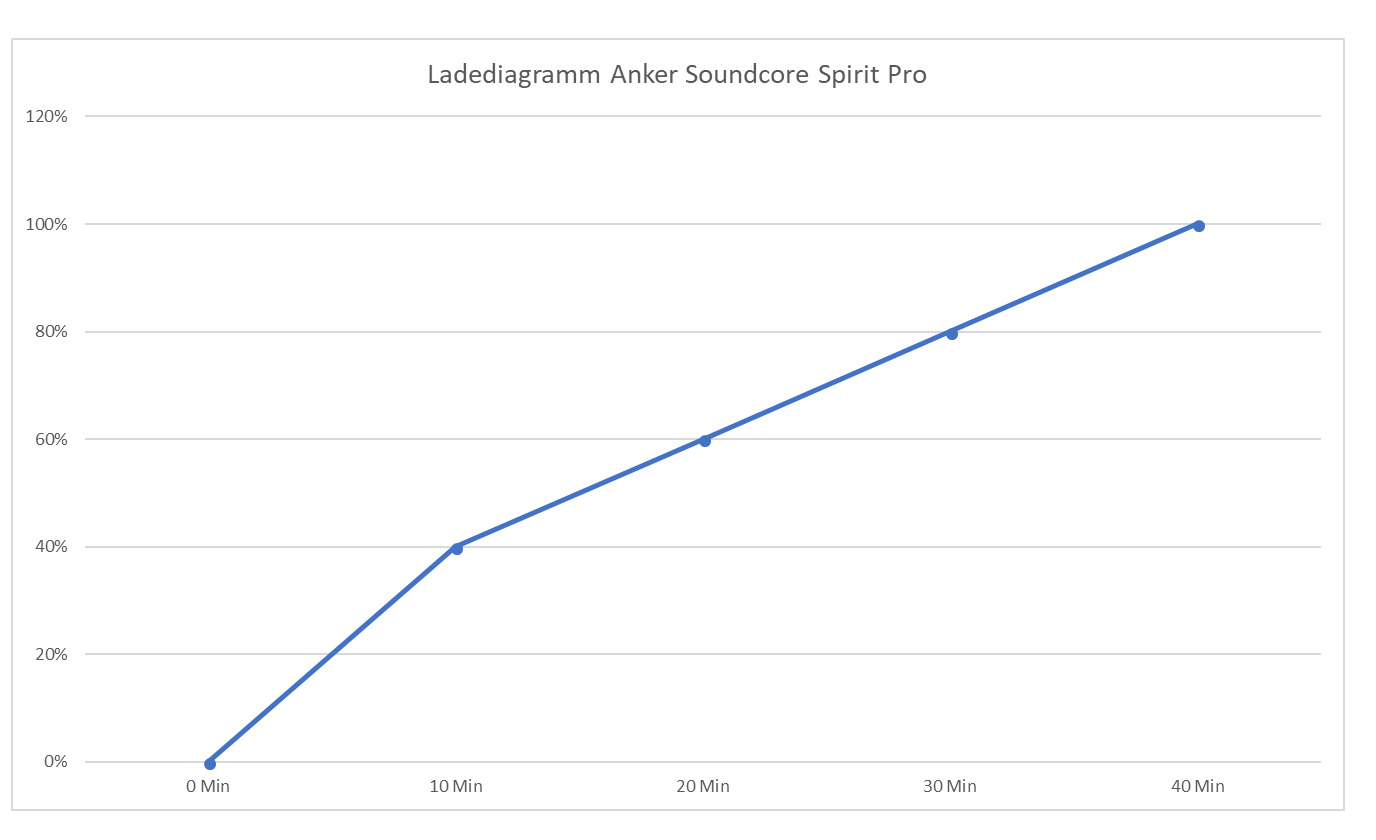 Die Kopfhörer sind wahre Langläufer. In unserem Praxistest konnten wir bei voller Lautstärke gut 9:50 Stunden Musik hören. Anker selbst gibt zehn Stunden an, das kommt also gut hin. Gefühlt gingen die letzten 20 Prozent Akkuleistung deutlich schneller nach unten als die ersten 80. Die Kopfhörer spielen dann in regelmäßigen Abständen ein kurzes Signal.