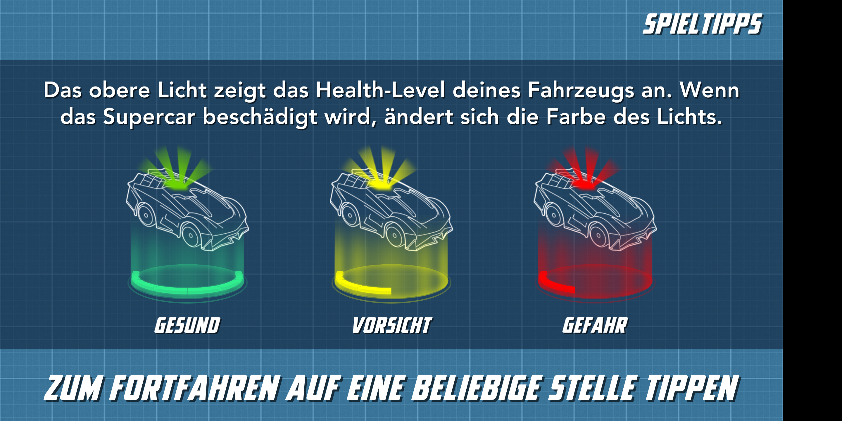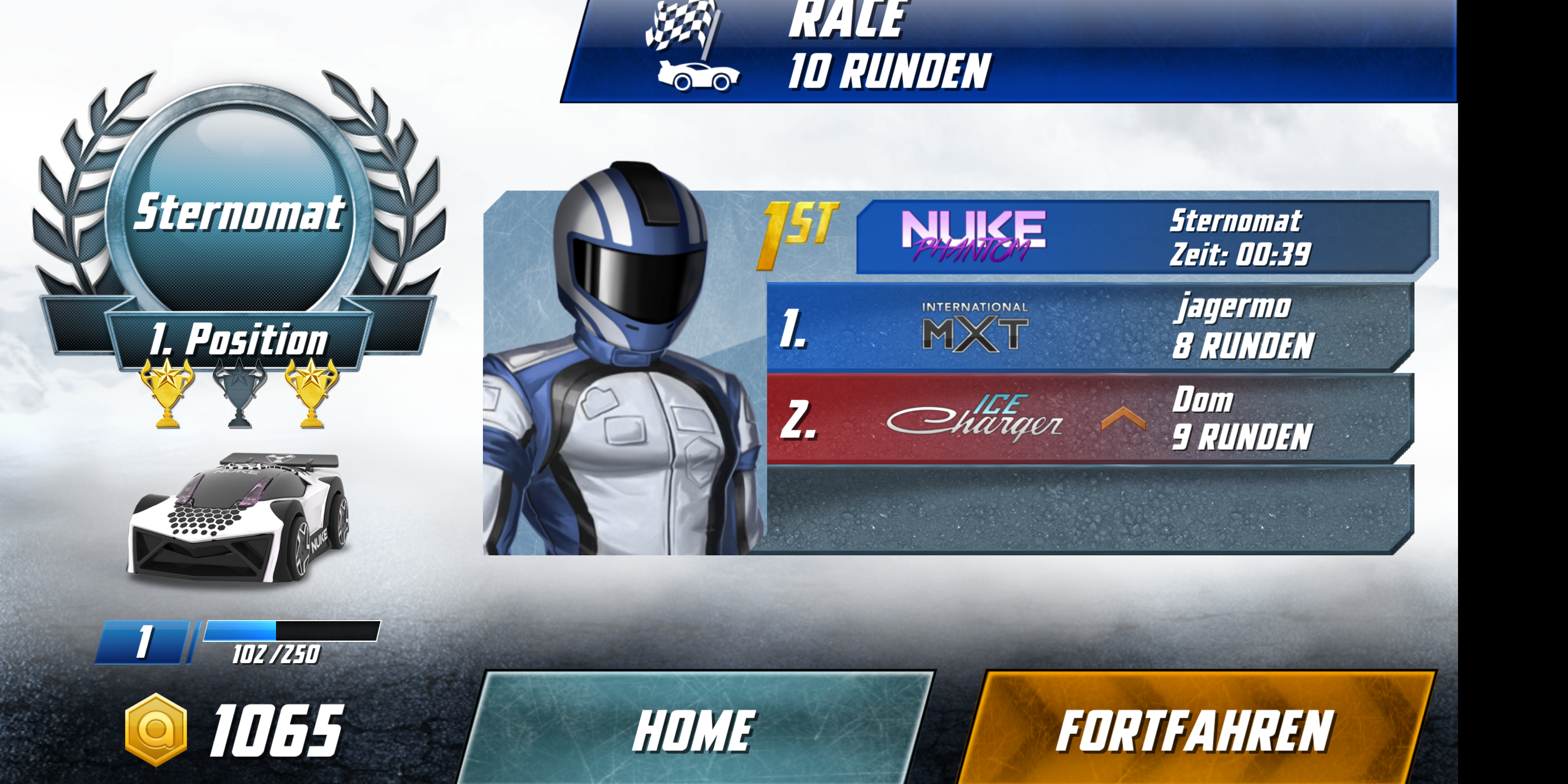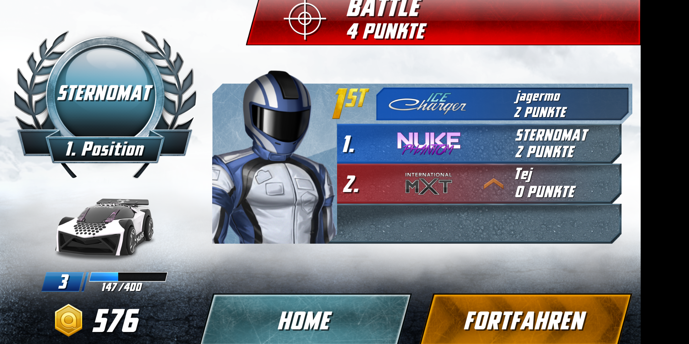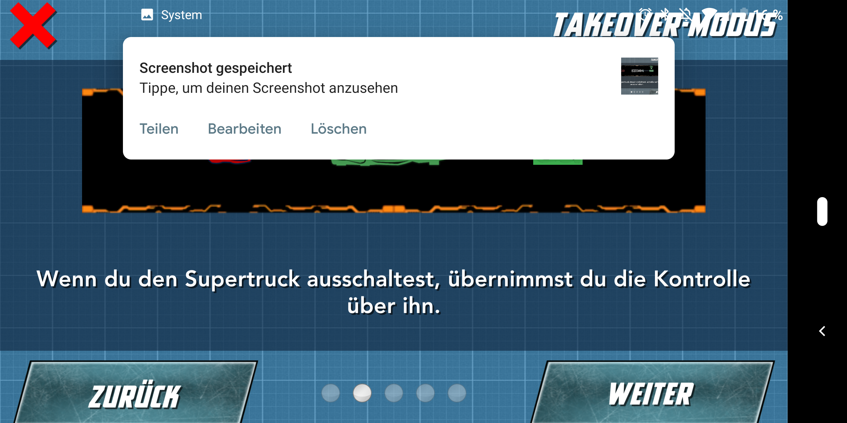 Im Rennen selbst beschleunigen und bremsen die Autos über eine Steuereinheit auf der linken Seite des Touchscreens. Auf der rechten Seite kommt das primäre und sekundäre Waffensystem zum Einsatz. Die Wagen halten auch bei voller Geschwindigkeit zuverlässig ihre Spur, gewechselt wird sie durch Neigen des Smartphones. Nettes Detail: Das Spiel bietet eine Pause-Option, in der die Fahrzeuge auf der Stelle stehen bleiben und nach dem Beenden der Pause weiter fahren als wäre nichts gewesen. Die App lief im Test flüssig und zuverlässig. In seltenen Fällen kam es jedoch in Multiplayer-Matches zu Verbindungsabbrüchen.
