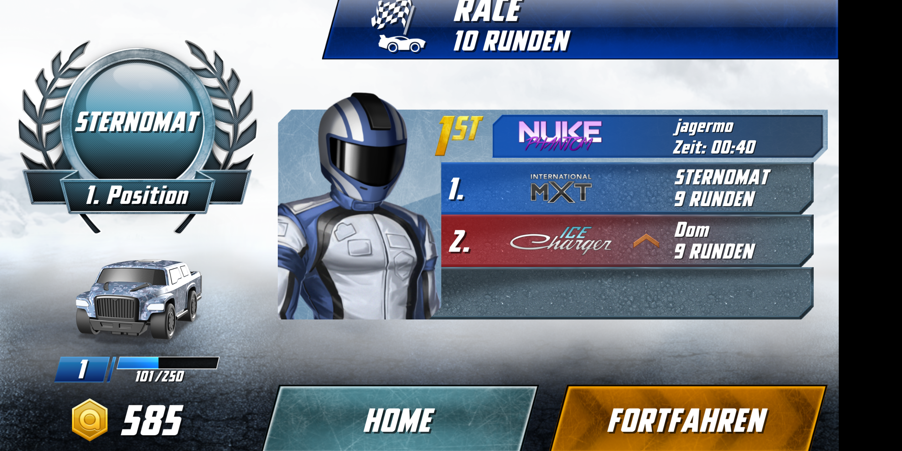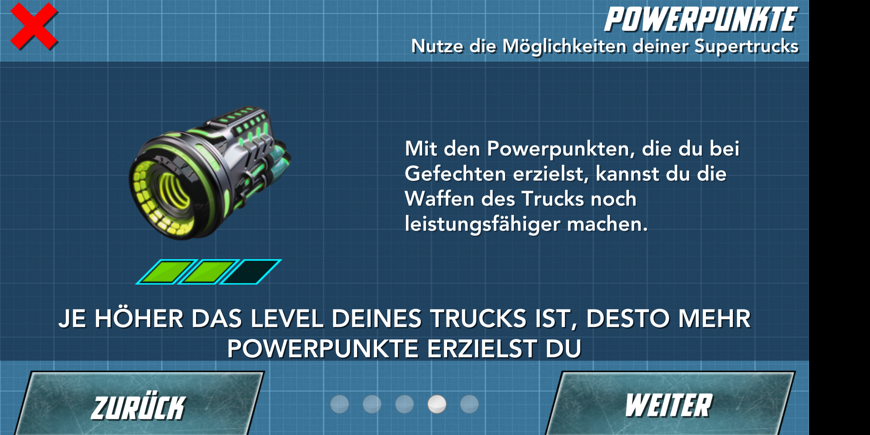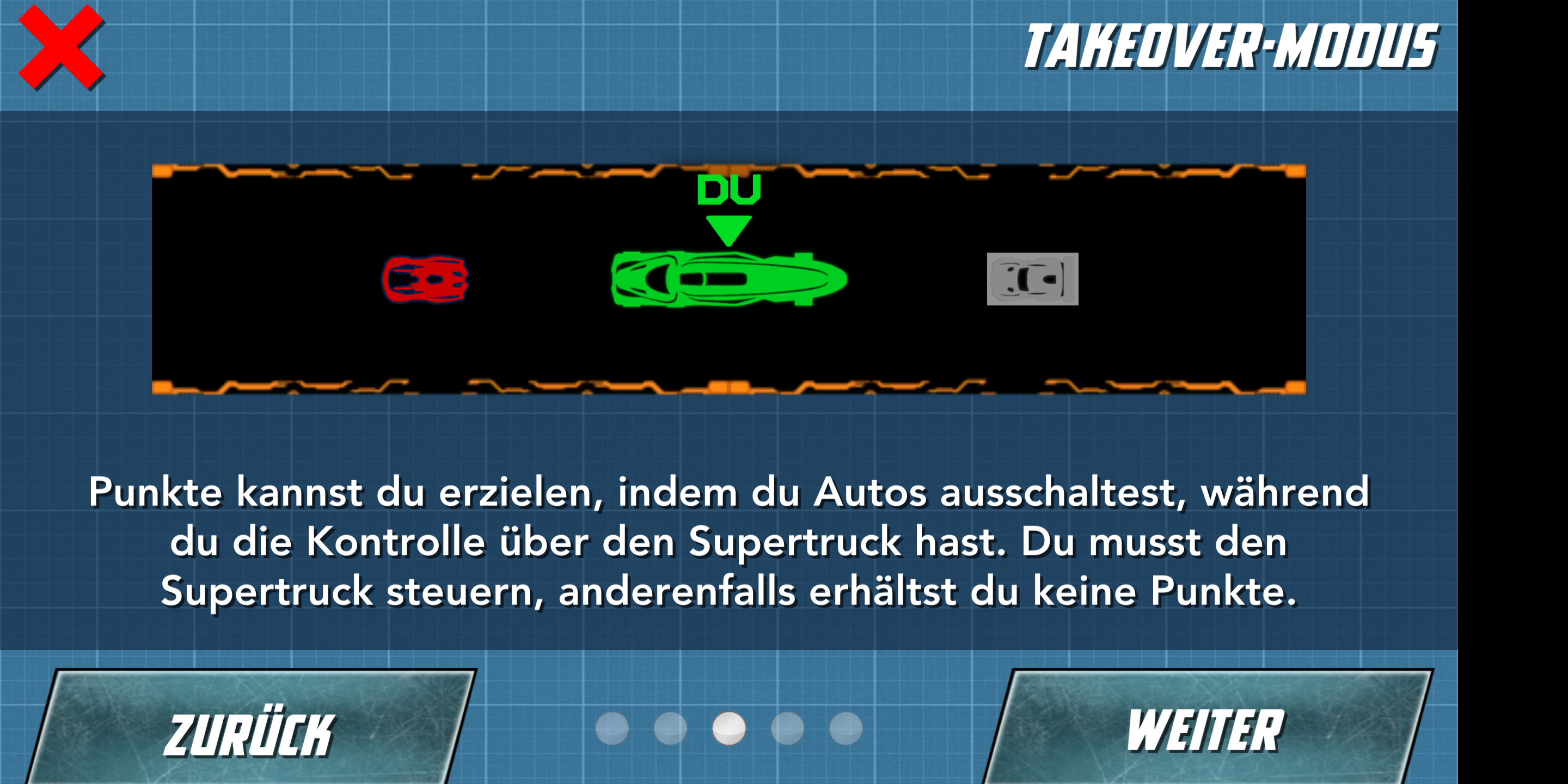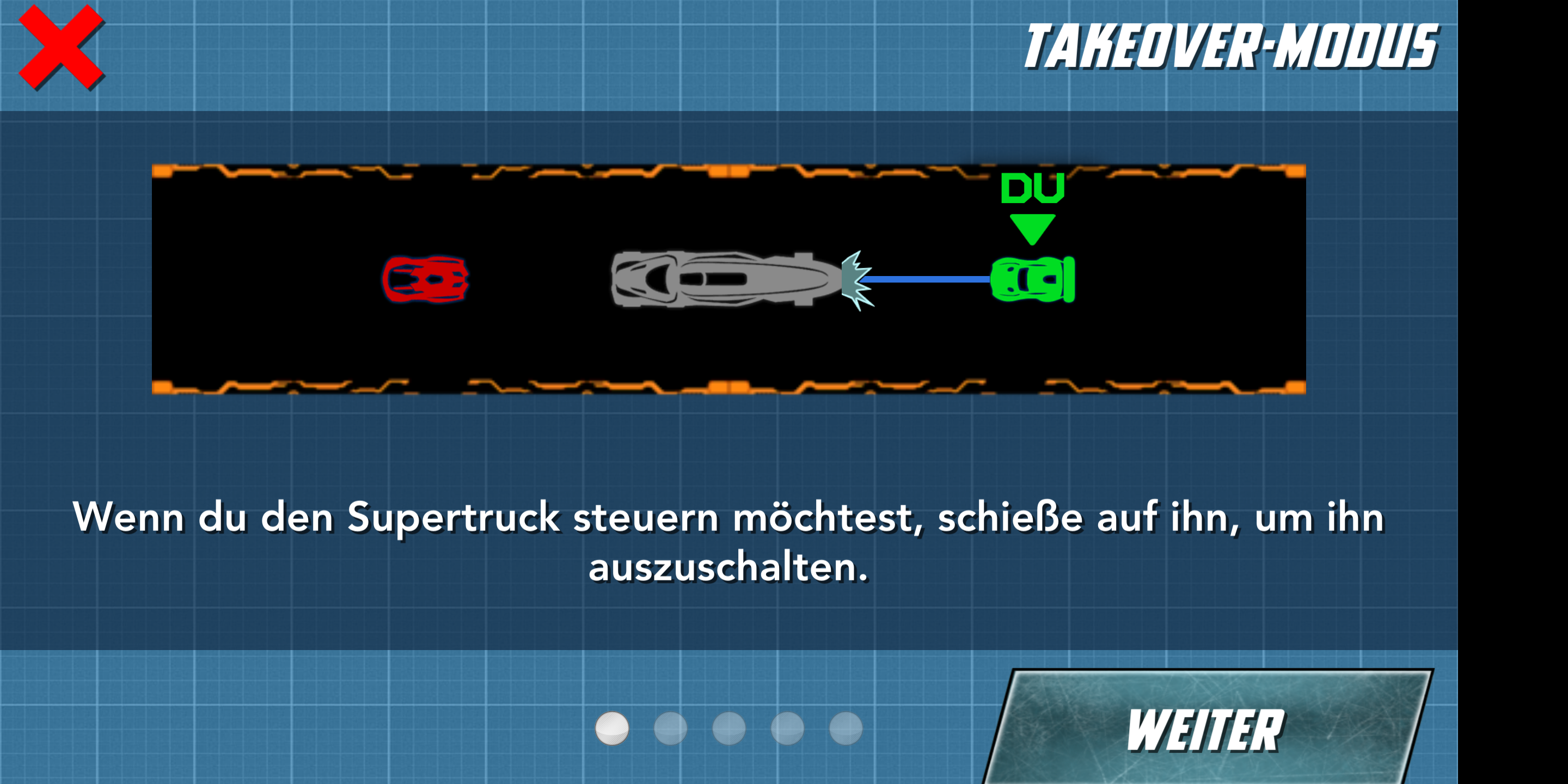 Der langsame, aber stark bewaffnete Supertruck schaltet mit einem gezielten Schuss den Gegner aus, der sich daraufhin um seine eigene Achse dreht und einige Sekunden benommen liegen bleibt. Ein hämisches Grinsen huscht über das Gesicht des Redakteurs – nur um im nächsten Moment entgeistert einzufrieren. Sein Supertruck wurde gekapert und wird fortan von einem Kollegen gesteuert. Dieser rammt nacheinander laut kommentierend seine drei Konkurrenten von der Bahn. Gewonnen. Unisono verlangen die Redakteure nach einer Revanche.