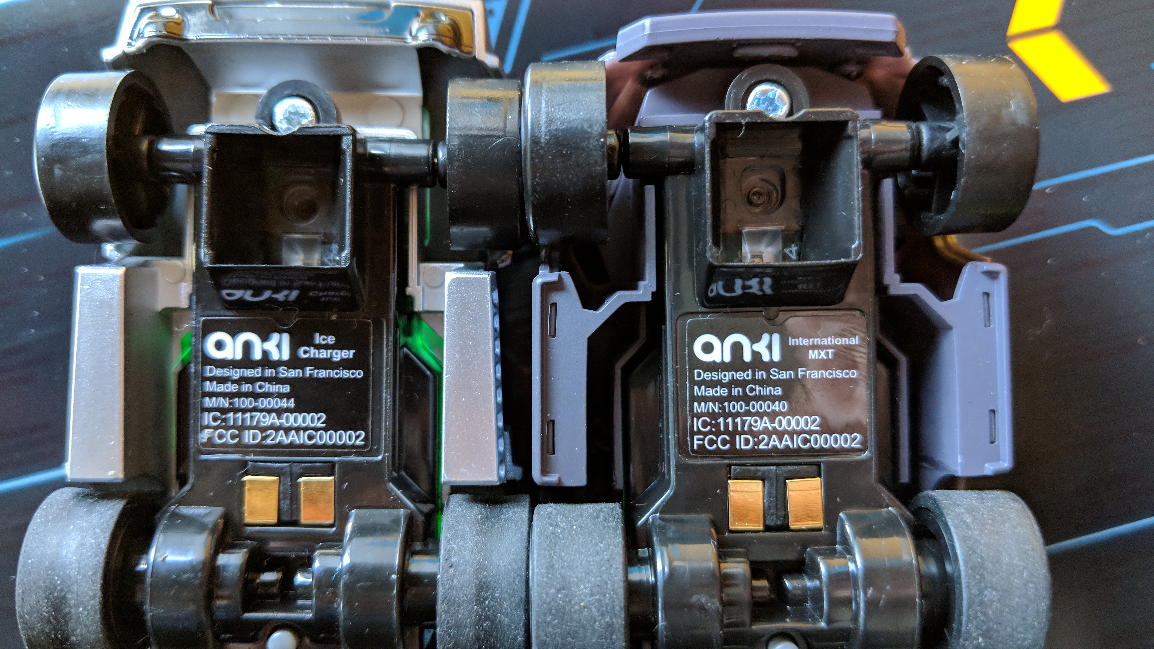 Ganz anders Anki Overdrive: Die Strecken sind passiv, die gesamte Technik steckt in den Autos. Sie tasten über einen optischen Sensor an der Unterseite 500-Mal pro Sekunde ein fast unsichtbares Muster auf den Streckenteilen ab und wissen dadurch jederzeit genau, wo sie sich auf der Strecke befinden. Die Wagen stehen auch miteinander in Kontakt und wissen stets, wo sich andere mobile Hindernisse, sprich Wagen, befinden. Dabei sitzt die KI direkt in den Wagen selbst und bestimmt anhand der eigenen Position, der aktuellen Geschwindigkeit und den Positionen anderer Fahrzeuge mögliche Optionen zum Beispiel für ein Überholmanöver.