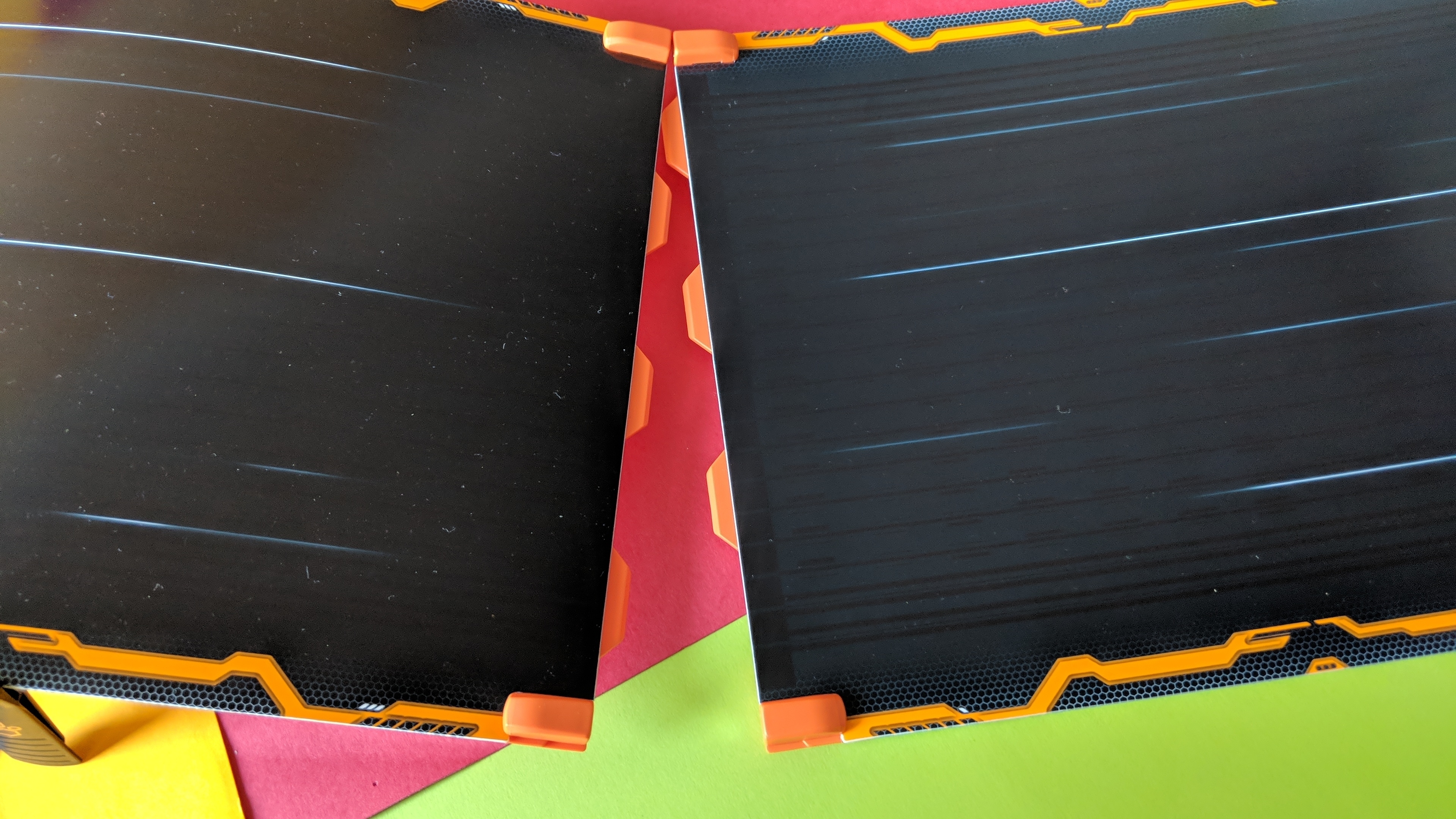 Die Anki Overdrive Fast & Furious Edition ist ein erweiterbares Starter-Set. Neben den zwei Fast-&-Furious-Wagen Ice Charger und MXT und einer Ladestation für vier Wagen finden sich in der Verpackung zehn Streckenteile, Brückenpfeiler, Randbegrenzungen und zwei Poster. Die Streckenteile aus flexiblem Kunststoff docken über zwei starke Magnete zuverlässig und kinderleicht aneinander an. Sie sind nur etwa einen Millimeter dick, wodurch sie zusammengepackt sehr wenig Platz beanspruchen. Vom Auspacken bis zur fertig aufgebauten Strecke dauerte es keine zehn Minuten.