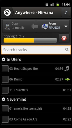 Kehrt man zum Homescreen zurück, kann man unter Massenaufnahme Lieder oder Daten in einem vorher bestimmten Genre aufnehmen. Mit der rechts angelegten Ziffer können wir bestimmen, wieviele aufgenommen werden sollen. Unter „Anywhere“ versteckt sich eine interessante Funktion, um die Musik vom heimischen PC auf mein Smartphone zu generieren. Dafür muss man allerdings registriert und angemeldet sein, was man unter „Anmelden“ tun kann.