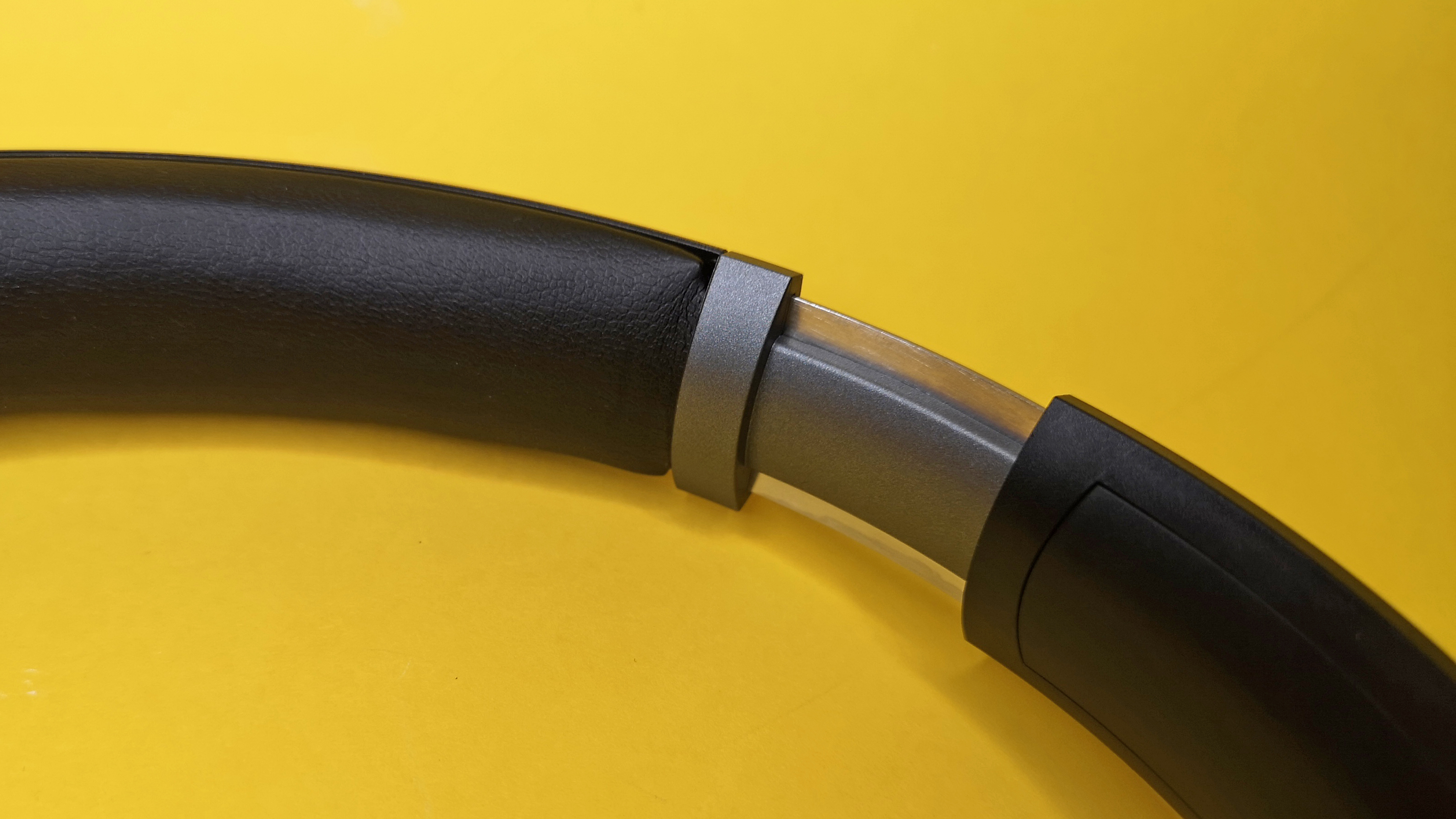 Das durch eine Kunststoffabdeckung und ein Kunstlederpolster geschütztes Kopfband ist beidseitig in der Länge verstellbar. Die nicht austauschbare Polsterung der Ohrmuscheln ist sehr weich und ebenfalls mit Kunstleder überzogen.