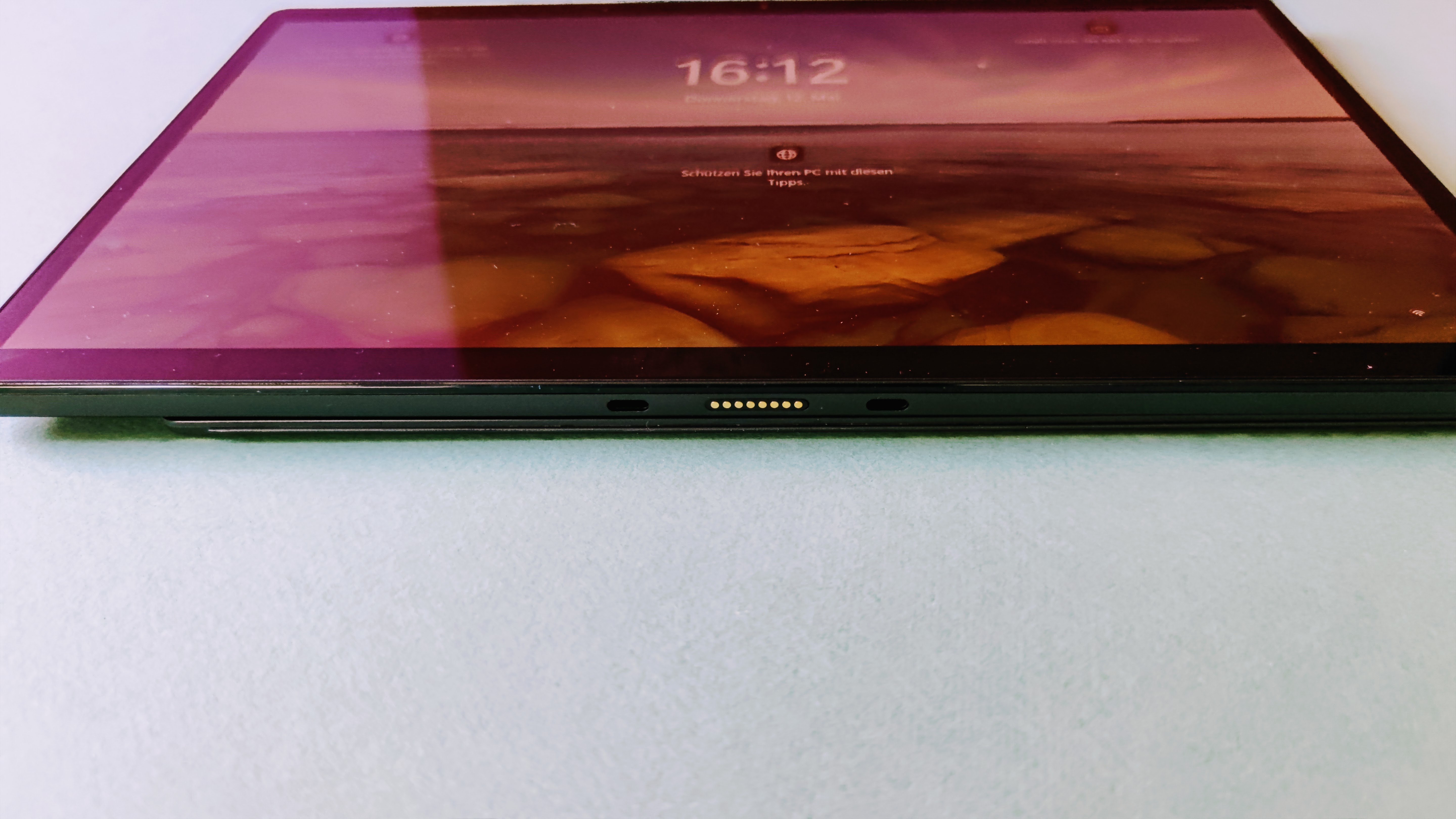 Die Auflösung beträgt 1920 x 1080 Pixel, was Full-HD entspricht. Das ist jetzt nicht übermäßig scharf für ein Laptop oder Tablet – höherer Auflösungen finden sich in der Regel aber nur bei deutlich teureren Geräten wie dem Surface Pro 8. Das Huawei Matebook E (Testbericht) kommt immerhin auf eine höhere WQXGA-Auflösung.