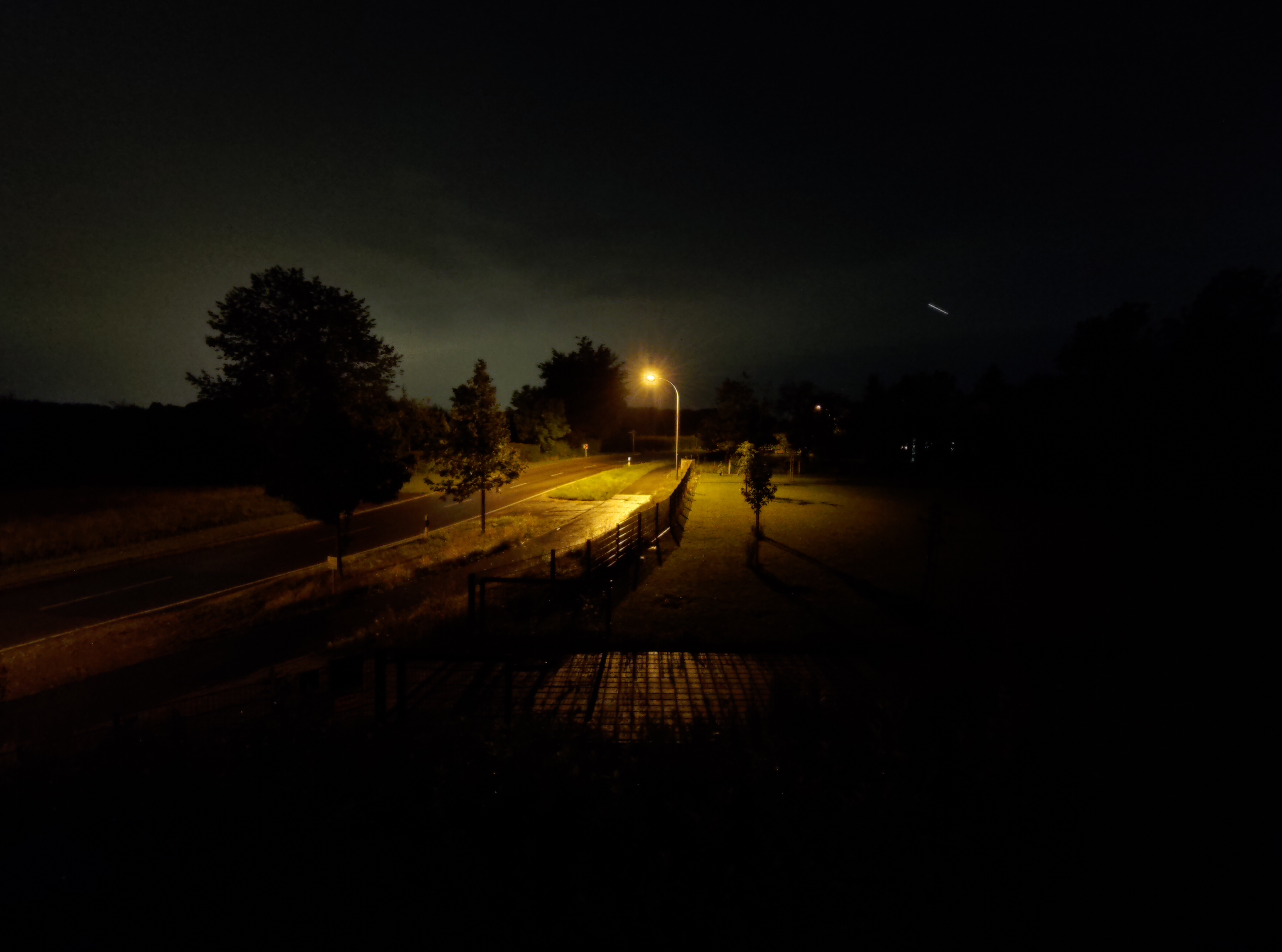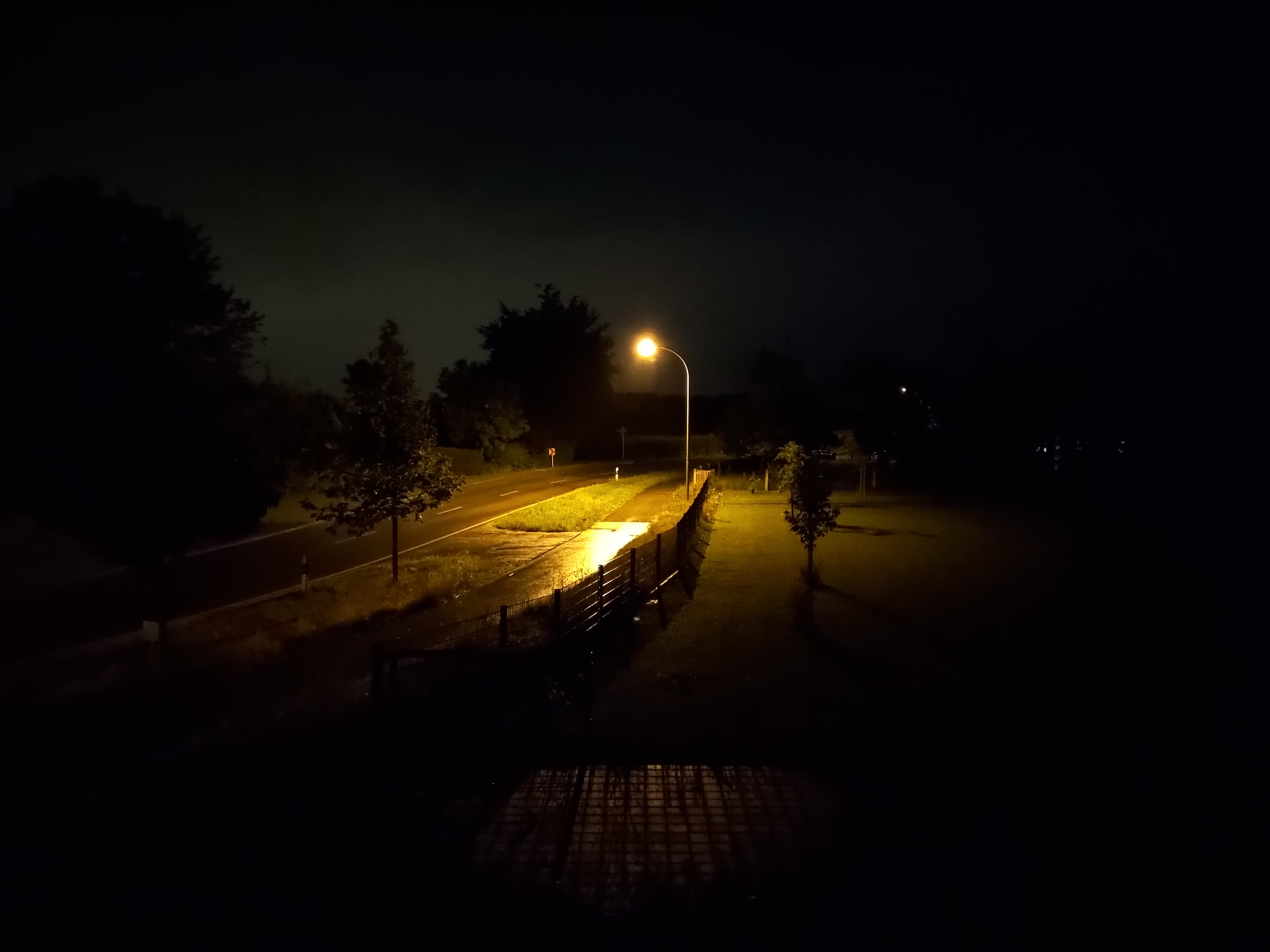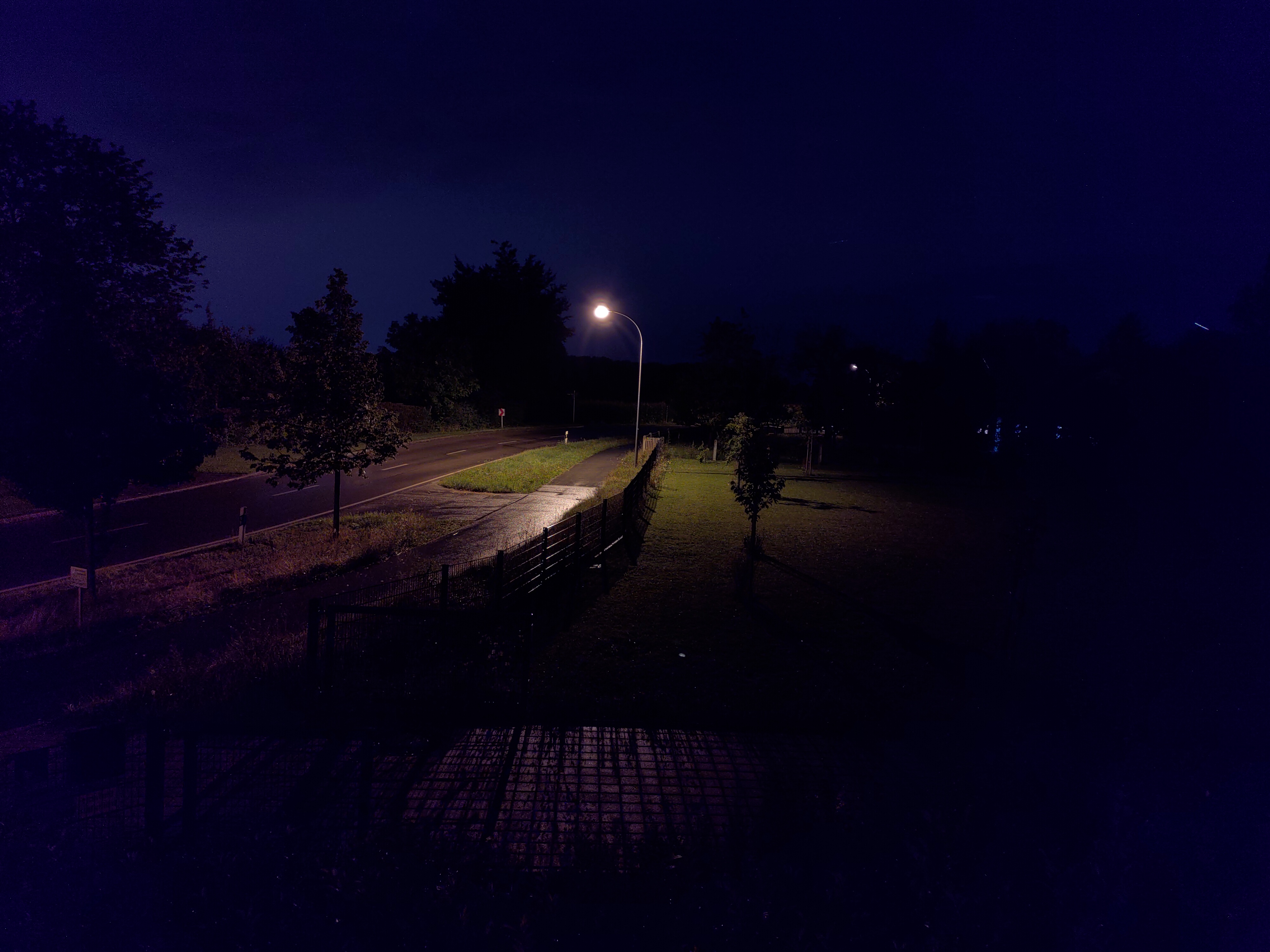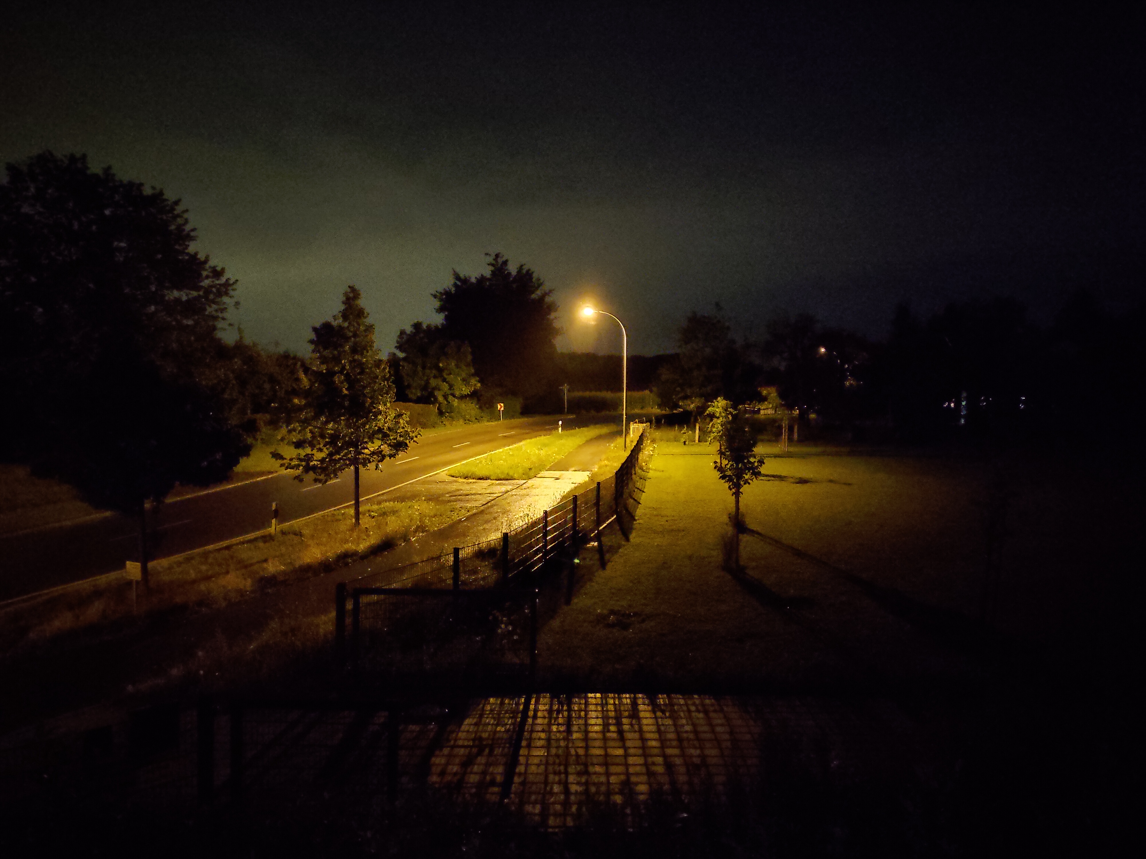Mit schwindendem Licht nimmt auch die Bildqualität rapide ab – da kann auch der spezielle Nachtmodus nichts dran ändern, der eine Dauerbelichtung vornimmt. Fotos werden damit zwar aufgehellt, die Bildschärfe wird aber selbst mit Stativ nur wenig besser und es schleicht sich starkes Bildrauschen ein. Bisweilen sehen dann sogar Fotos im normalen Modus besser aus, weil sie weniger Bildrauschen produzieren und dadurch natürlicher wirken. Sie geraten aber meist zu dunkel. Der Pro-Modus erlaubt wie immer nachts bei unbewegten Motiven und unter Zuhilfenahme eines Statives die besten Aufnahmen, verlangen aber einiges an Rumprobieren.