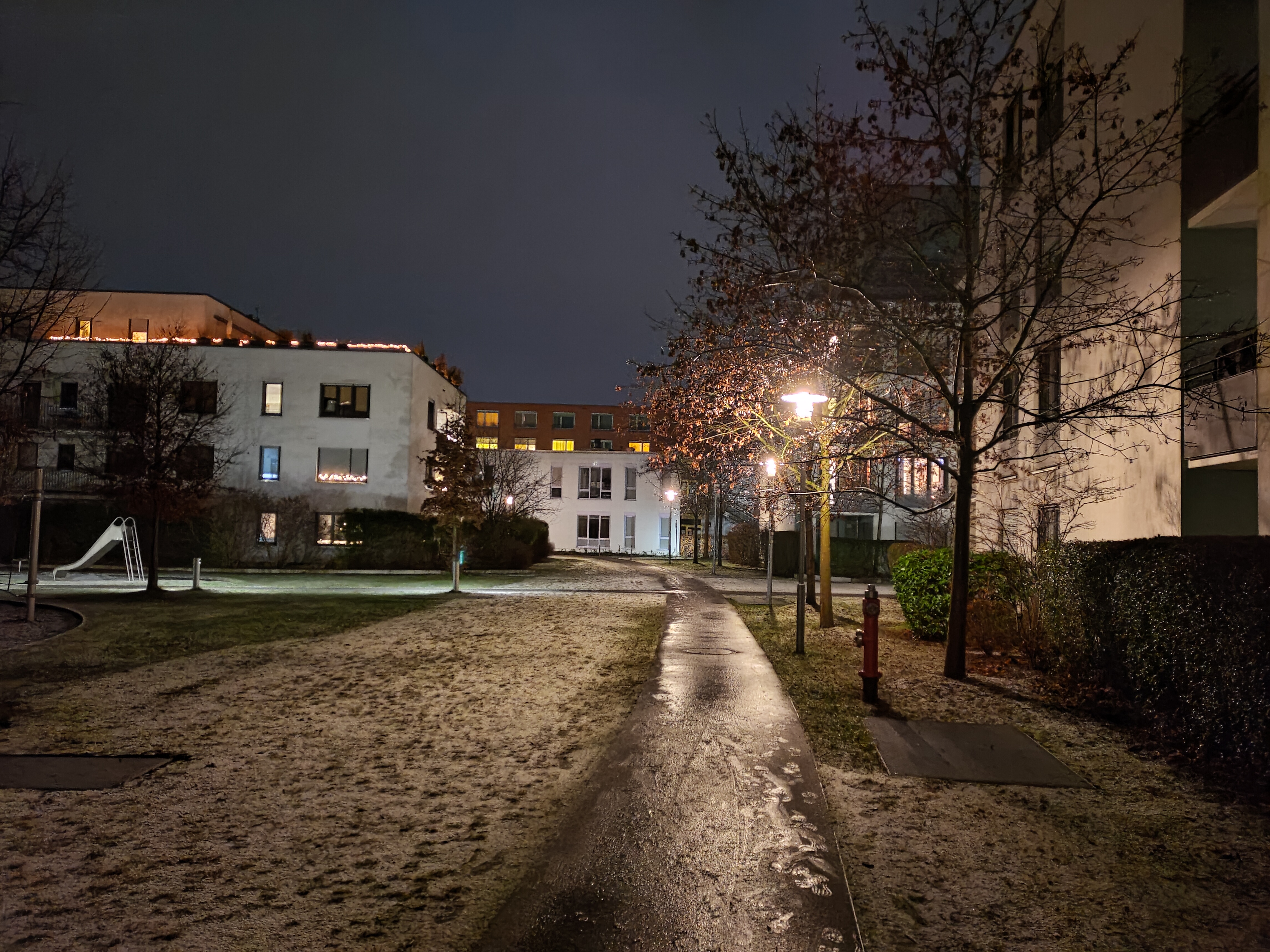 Im Praxistest überzeugt die Hauptkamera mit scharfen Bildern und die hervorragende Bilddynamik begeistert. Beim Ultra-Weitwinkel fällt die fehlende Verzerrung an den Bildrändern positiv auf. Der bei Bedarf automatisch aktivierte Makro-Modus verrichtet problemlos seinen Dienst, allerdings wäre hier etwas mehr Bildschärfe wünschenswert gewesen. Der Nachtmodus hinterlässt einen guten Eindruck. Zwar verschwimmen im Hintergrund die Lichter etwas, der Bildmittelpunkt wird jedoch gut und mit ausreichender Bildschärfe dargestellt. Auch das Teleobjektiv mit seinem festen dreifachen objektiven Zoom leistet gute Arbeit, es holt Motive ohne sichtbaren Qualitätsunterschied deutlich näher.