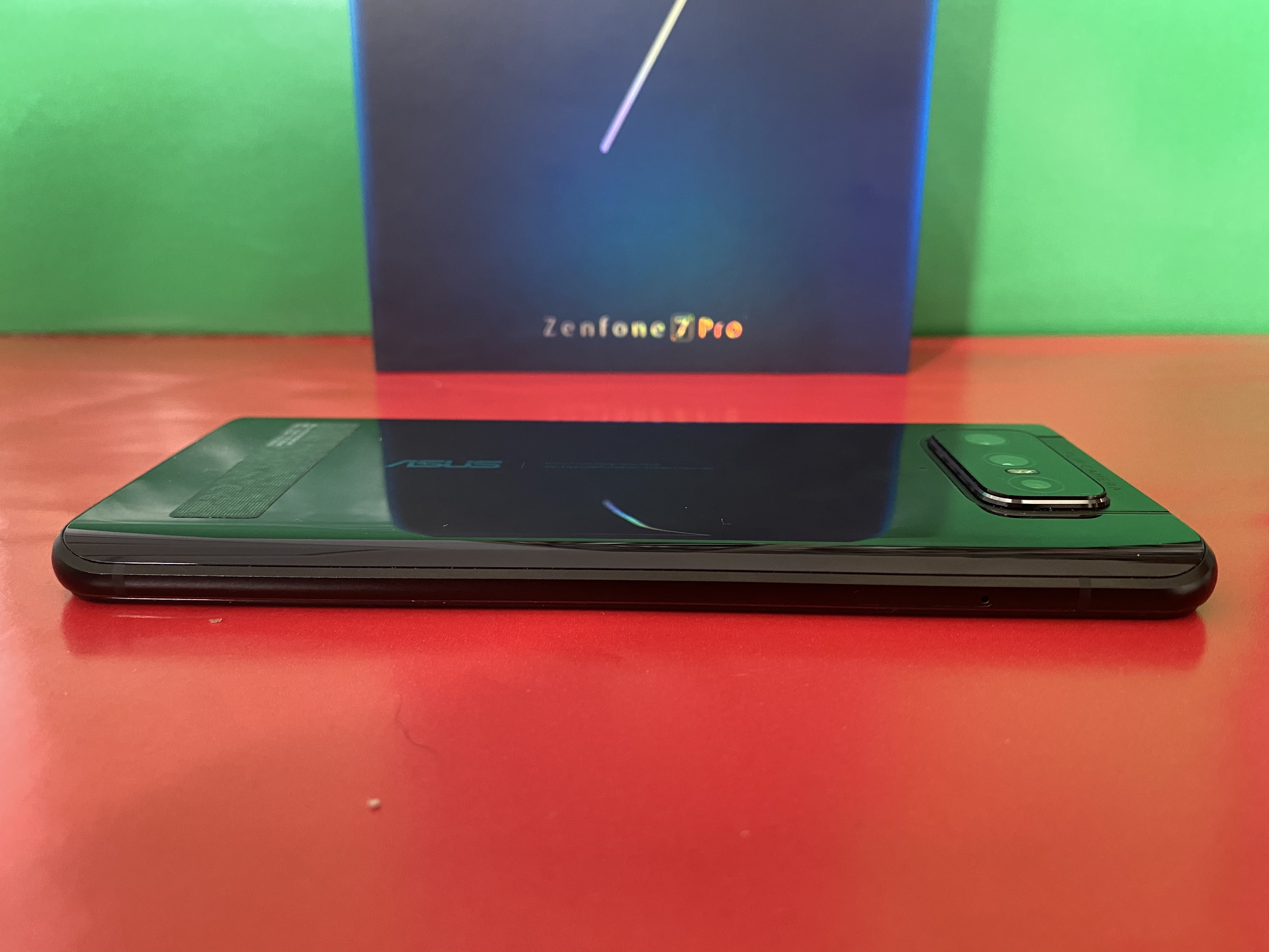 Mit seinen 235 Gramm ist das Zenfone 7 Pro nicht unbedingt ein Fliegengewicht, aber bei einer Größe von 158 x 77,8 x 8,1 Millimeter größentechnisch durchaus noch im Rahmen. Große Hände sind hier sicherlich einen Vorteil, aber auch Anwender mit kleinen Händen kommen nach etwas Eingewöhnungszeit schnell mit dem Handling zurecht. Die Verarbeitung ist durchaus ansprechend, grobe Verarbeitungsmängel wie ungleichmäßige Spaltmaße gibt es nicht. Nur leichte Kanten am Übergang vom Display zum Gehäuse stören etwas den fast perfekten Gesamteindruck, fallen aber im Alltag kaum ins Gewicht. Die Antennenfugen lassen sich beim Abtasten nur erahnen, was den sehr wertigen Eindruck unterstreicht. Vorder- und Rückseite sind mittels fast aktuellem Gorilla Glas 6 geschützt, bei den Seiten greift Asus auf dunkles Aluminium zurück, was dem Zenfone eine hohe Wertigkeit verleiht.