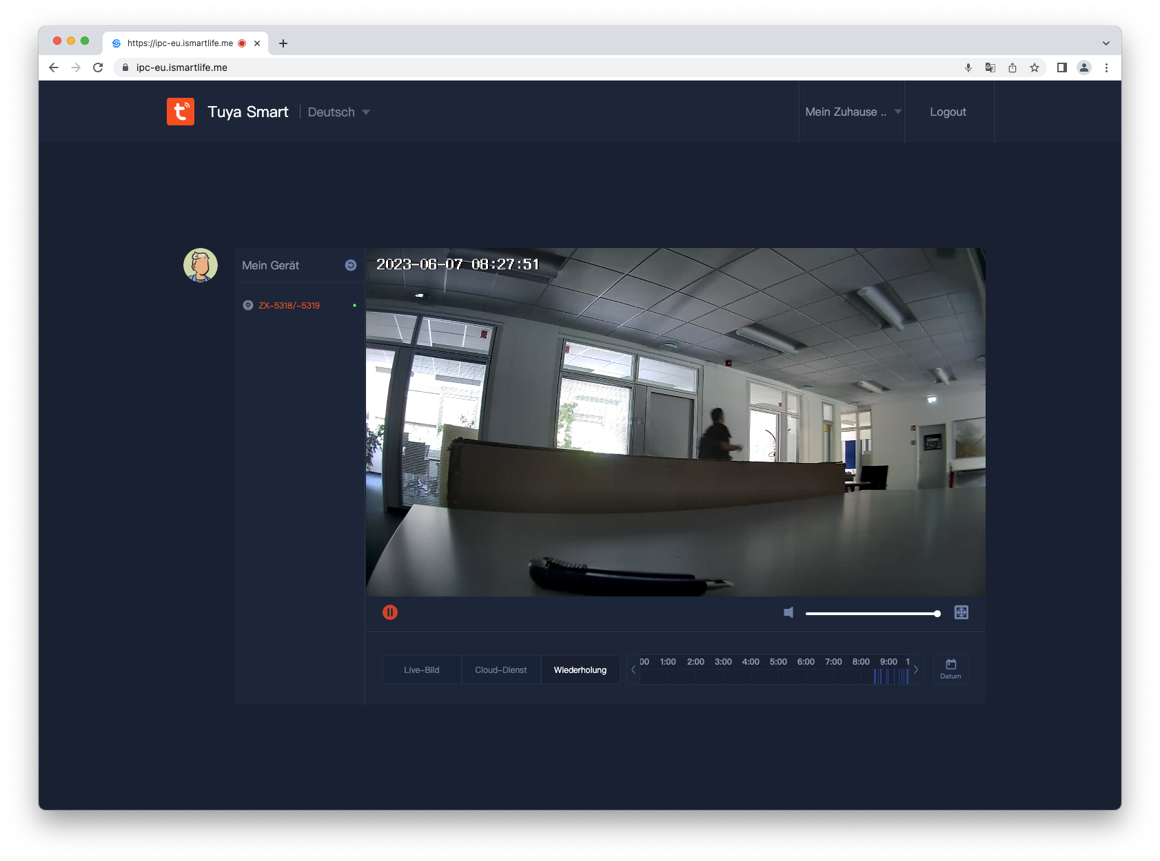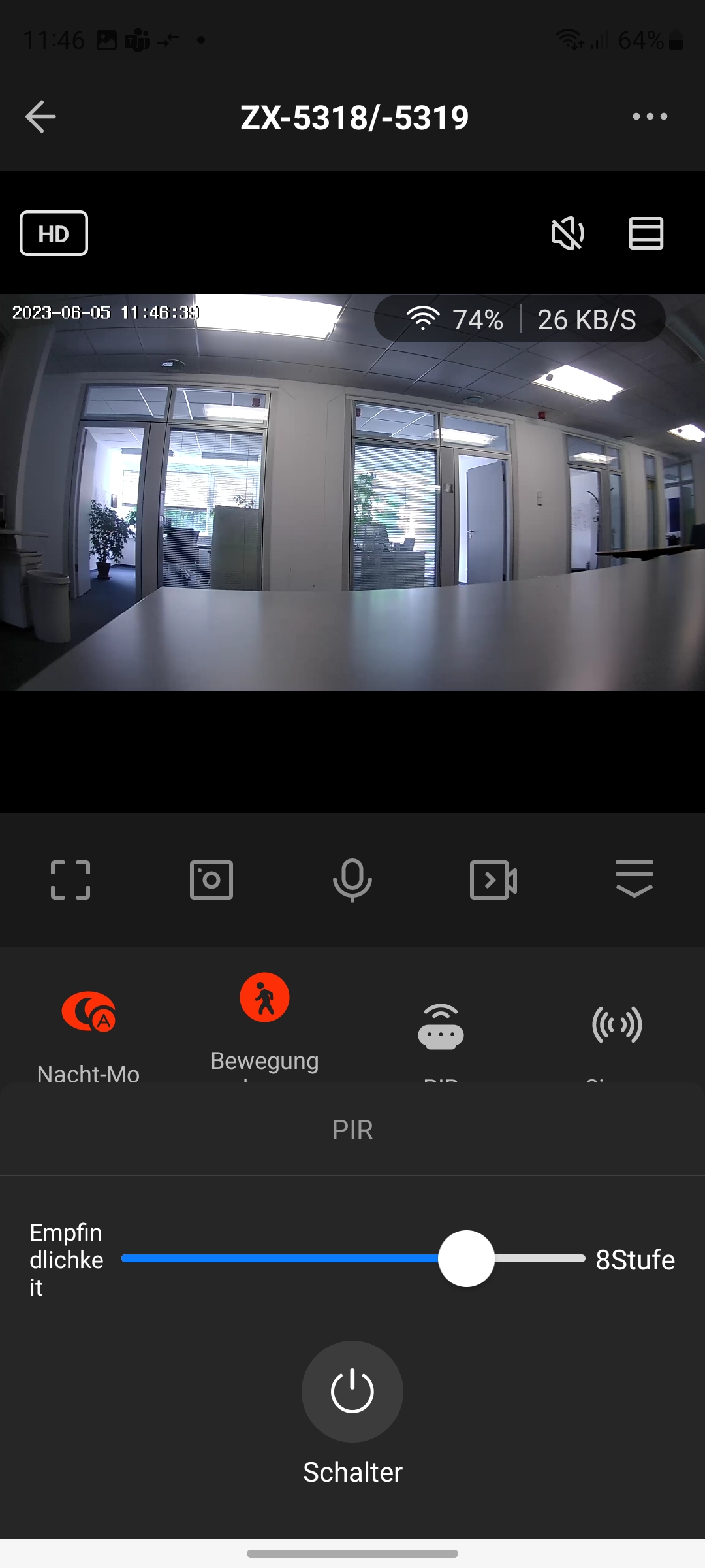 Benachrichtigungen über Erkennungsalarme landen per Push-Nachricht zeitnah auf dem Smartphone. Dabei sind dank standardmäßig aktivierter Personenerkennung Fehlalarme praktisch ausgeschlossen. Positiv ist auch der ausgezeichnete WLAN-Empfang der Visortech ZX-5319, der bis in die entferntesten Winkel unseres Bürogebäudes reicht. Dabei werden gut 20 Meter Luftlinie überbrückt und auch viele Wände stellen kein Hindernis dar. Laut App liegt die Signalstärke dort noch bei 42 Prozent. Direkt neben dem Router sind es 100 Prozent. Die Sprachqualität der Zwei-Wege-Audiofunktion geht in Ordnung.