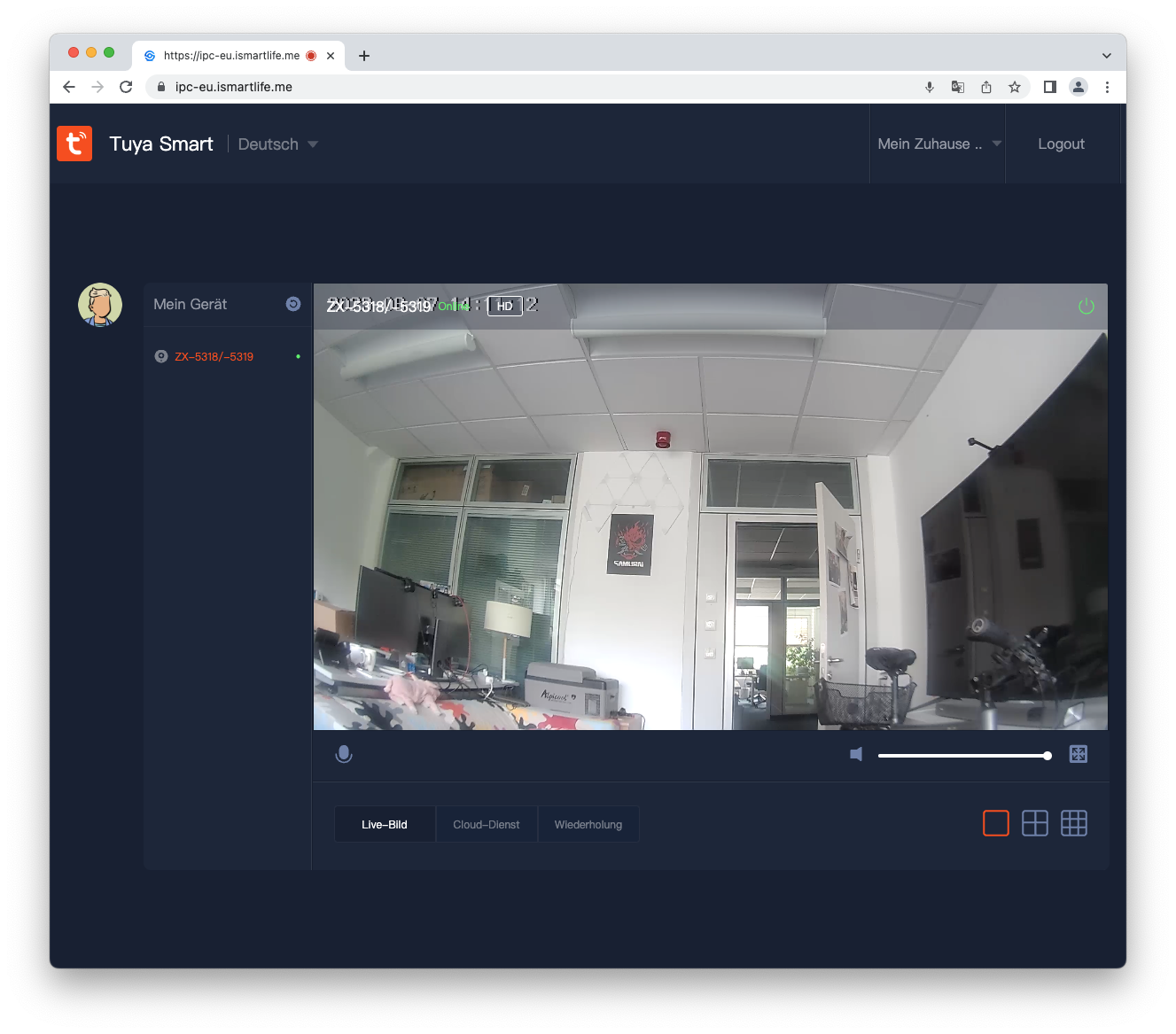 Die App bietet insgesamt eine intuitive Bedienung, auch wenn manche Übersetzung etwas schräg klingt, wie „zum Einschalten Berühren Automatik“. Darunter verbergen sich gerätespezifische Aktionen, die man unter Szene definieren kann. Im Fall der Visortech ZX-5319 stehen dafür als Optionen Lichtschalter, Warnlichtdauer und smarte Aktionen parat. Wenn solche Schnelleinstellungen, etwa Kamera-LED ein- und ausschalten, konfiguriert sind, stehen sie auch für andere Geräte und Automationen unter der Tuya-Plattform zur Verfügung. So kann man etwa bei Überschreiten eines bestimmten Feinstaub-Grenzwerts des Tuya-Raumluftsensors ZX-5160 (Ratgeber smarte Raumluft-Sensoren) die LED-Leuchte der Kamera einschalten lassen. Ferner können Anwender sie auch per Sprache über Google Assistant und Amazon Alexa steuern. Leider ist die Integration in andere Smart-Home-Zentralen (Top 5: Smart-Home-Zentralen) nicht ohne Weiteres möglich. Lediglich für Open-Source-Lösungen wie Home Assistant existieren einige Integrationen für Tuya-kompatible Überwachungskameras. Um eine solche Einbindung zu erleichtern, müsste die Visortech ZX-5319 wie die ebenfalls von Pearl vertrieben Kamera 7Links IPC-740 (Testbericht) den Onvif-Standard unterstützen.